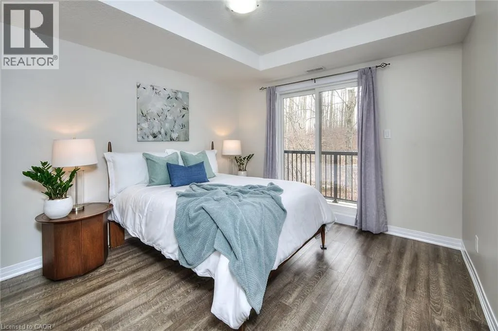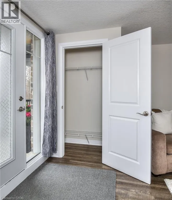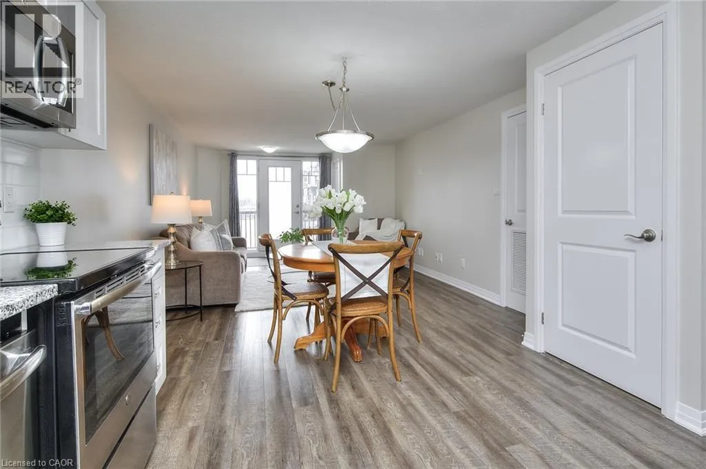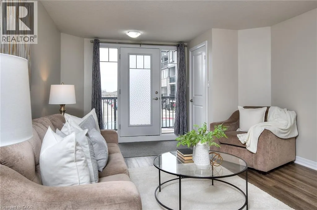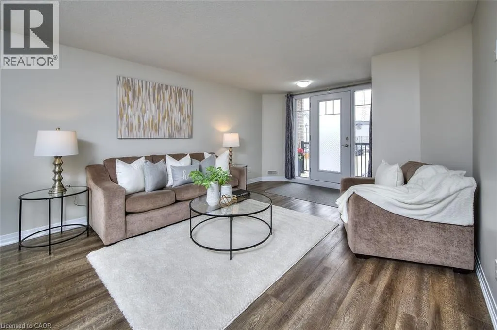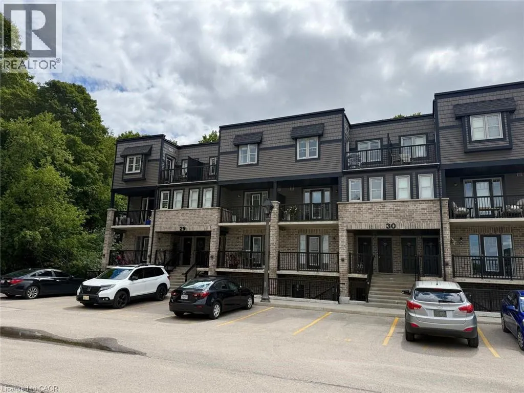Ottawa Street S & Trussler Road. This beautiful MAIN FLOOR stacked townhome shows like a model and features over 865 square feet of bright, open-concept living space â all on a single level! Two good sized bedrooms, ample closet space, one full bathroom and in-suite full sized laundry compliment the stylish principal living spaces on display here. Completely carpet-free with upgraded luxury vinyl plank flooring and freshly painted throughout. The upgraded kitchen features a large built-in pantry alongside the refrigerator, as well as stylish granite countertops. This unitâs premium location is settled at the edge of the development, and its spacious private patio overlooks absolutely beautiful mature woodland â all while being only five minutes from the many amenities of the Sunrise Shopping Centre, excellent schools and the expressway at Homer Watson Boulevard. One dedicated parking spot is included! Main floor units do not come for sale often and this one is move in ready! (id:27476)