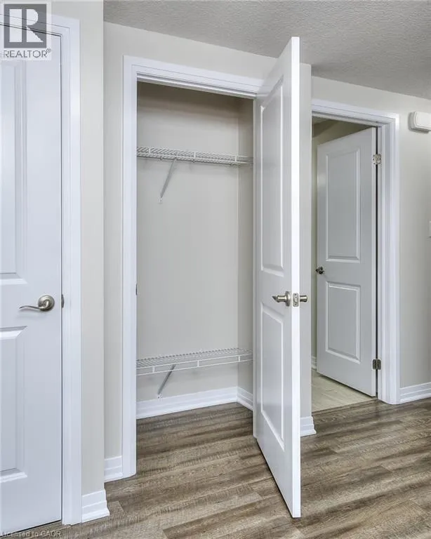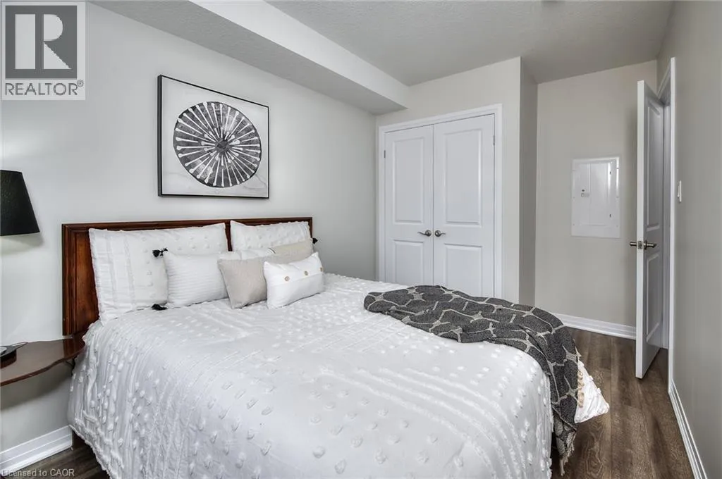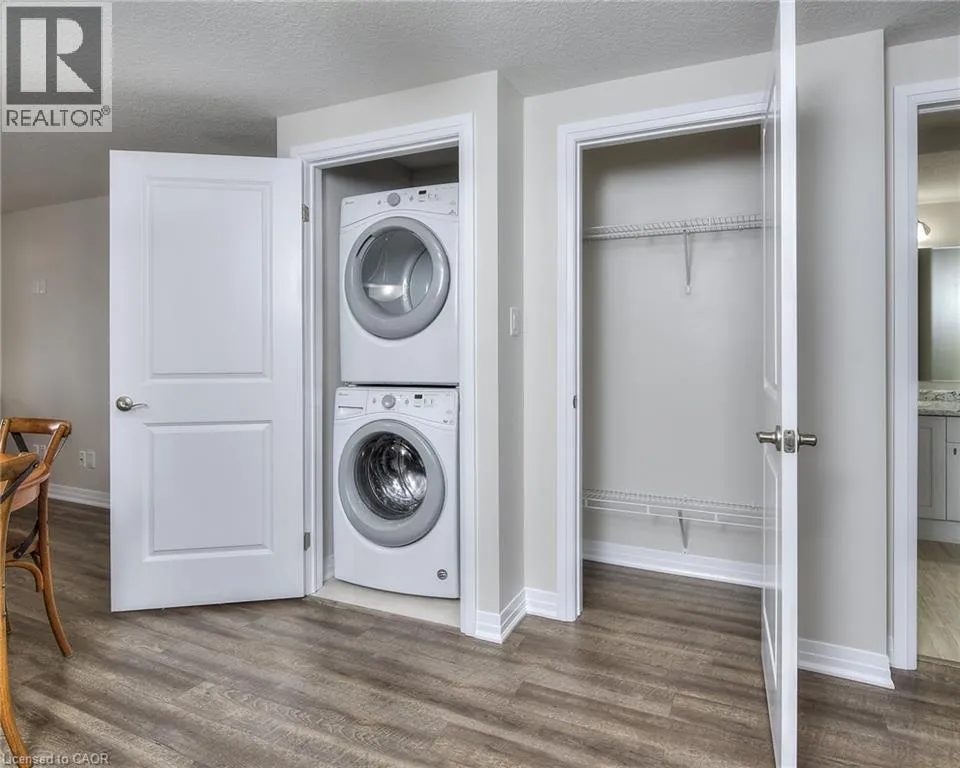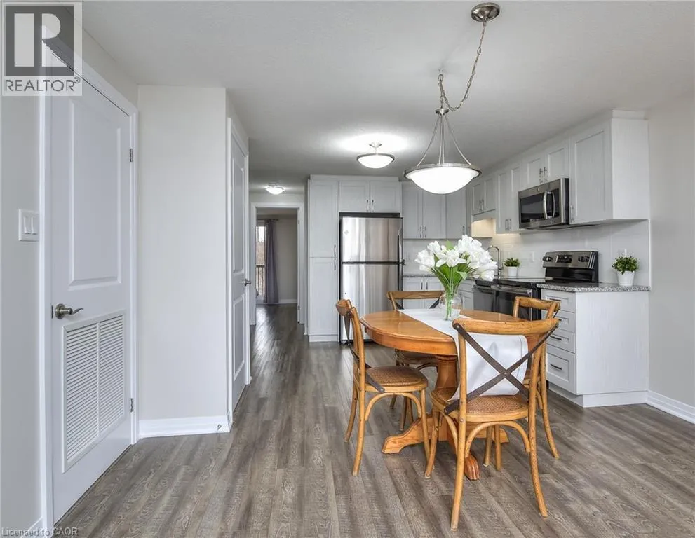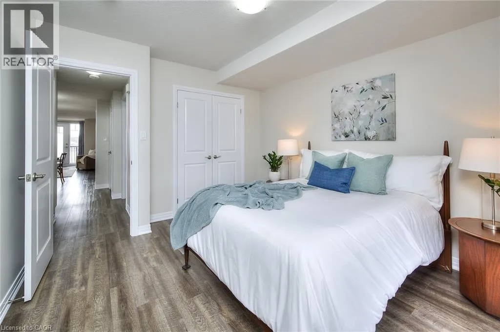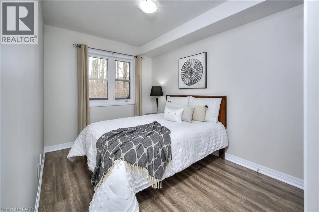 Ottawa Street S & Trussler Road. This beautiful MAIN FLOOR stacked townhome shows like a model and features over 865 square feet of bright, open-concept living space â all on a single level! Two good sized bedrooms, ample closet space, one full bathroom and in-suite full sized laundry compliment the stylish principal living spaces on display here. Completely carpet-free with upgraded luxury vinyl plank flooring and freshly painted throughout. The upgraded kitchen features a large built-in pantry alongside the refrigerator, as well as stylish granite countertops. This unitâs premium location is settled at the edge of the development, and its spacious private patio overlooks absolutely beautiful mature woodland â all while being only five minutes from the many amenities of the Sunrise Shopping Centre, excellent schools and the expressway at Homer Watson Boulevard. One dedicated parking spot is included! Main floor units do not come for sale often and this one is move in ready! (id:27476)