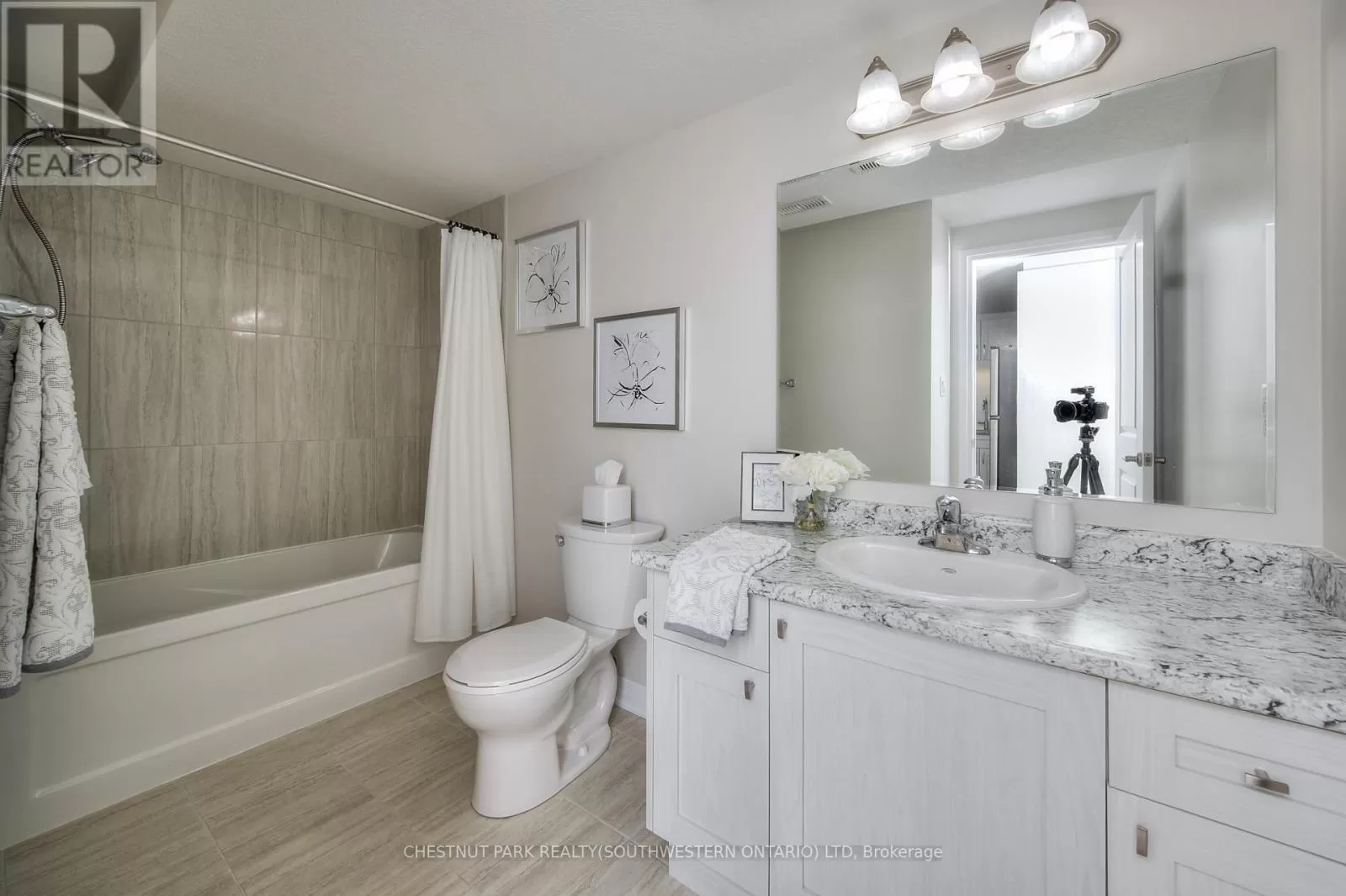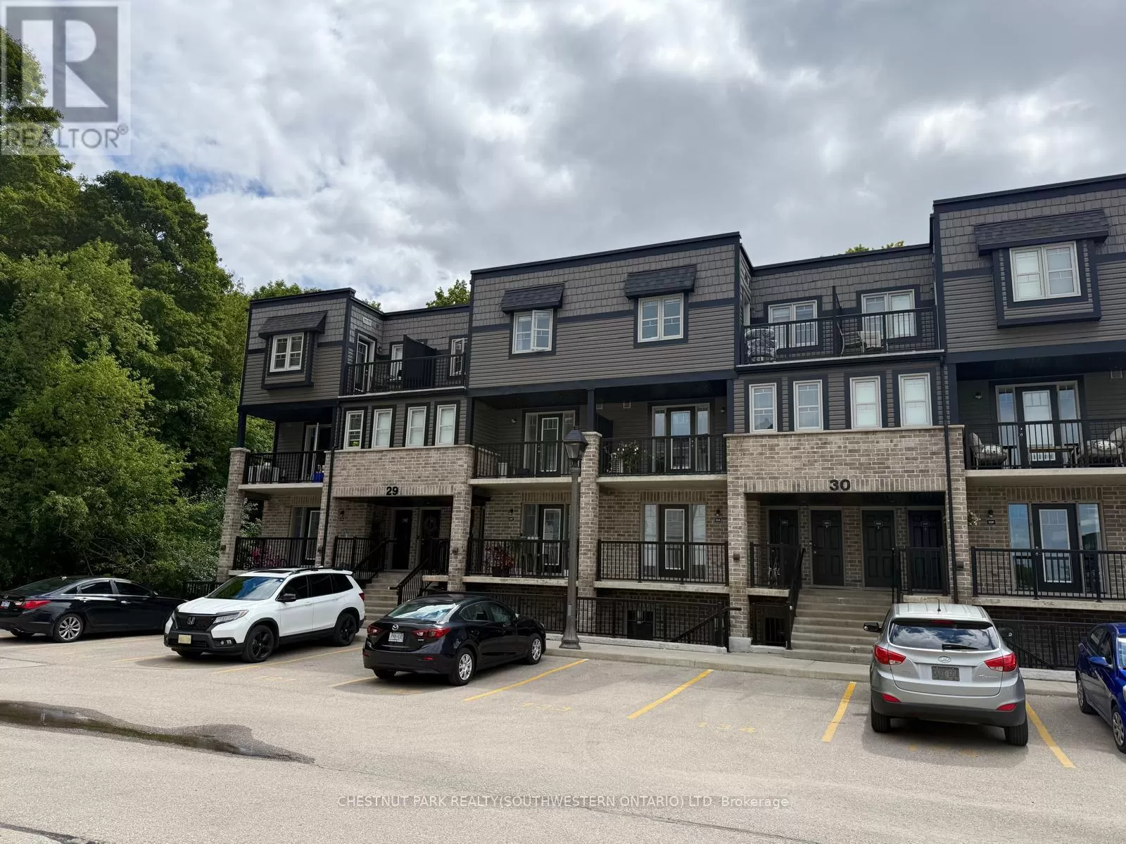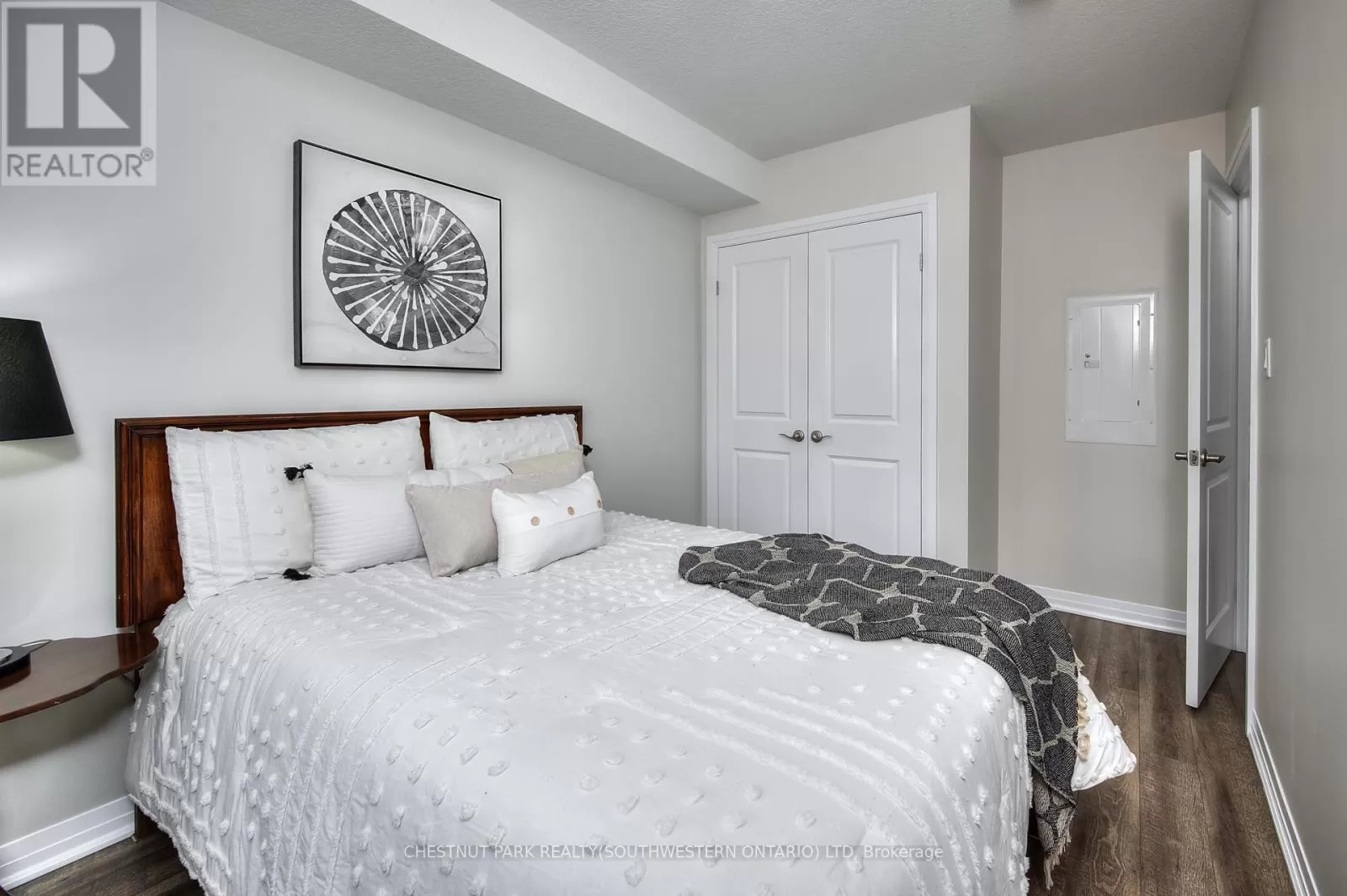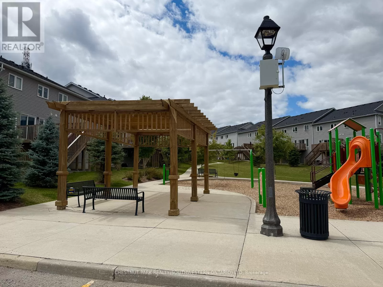 Cross Streets: Ottawa Street S & Trussler Road. ** Directions: Ottawa Street S & Trussler Road. This beautiful MAIN FLOOR stacked townhome shows like a model and features over 865 square feet of bright, open-concept living space all on a single level! Two good sized bedrooms, ample closet space, one full bathroom and in-suite full sized laundry compliment the stylish principal living spaces on display here. Completely carpet-free with upgraded luxury vinyl plank flooring and freshly painted throughout. The upgraded kitchen features a large built-in pantry alongside the refrigerator, as well as stylish granite countertops. This units premium location is settled at the edge of the development, and its spacious private patio overlooks absolutely beautiful mature woodland all while being only five minutes from the many amenities of the Sunrise Shopping Centre, excellent schools and the expressway at Homer Watson Boulevard. One dedicated parking spot is included! Main floor units do not come for sale often and this one is move in ready! (id:27476)