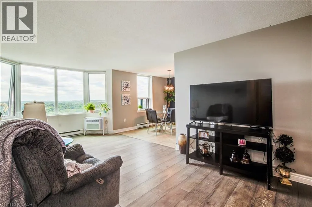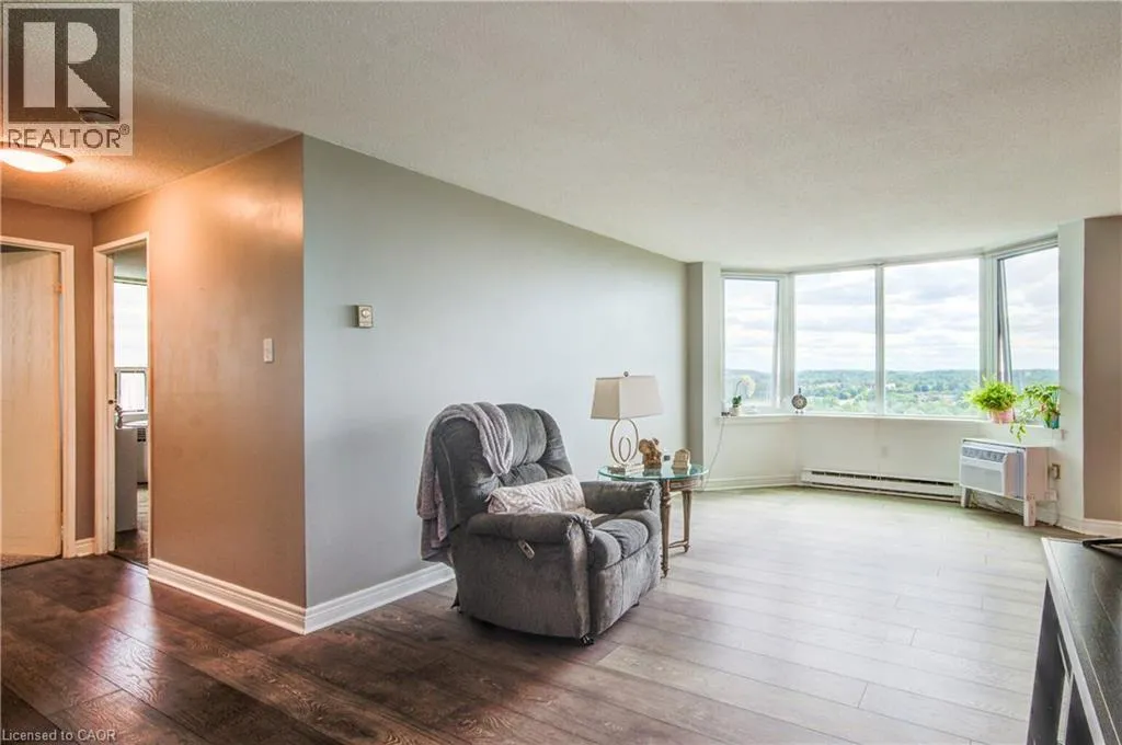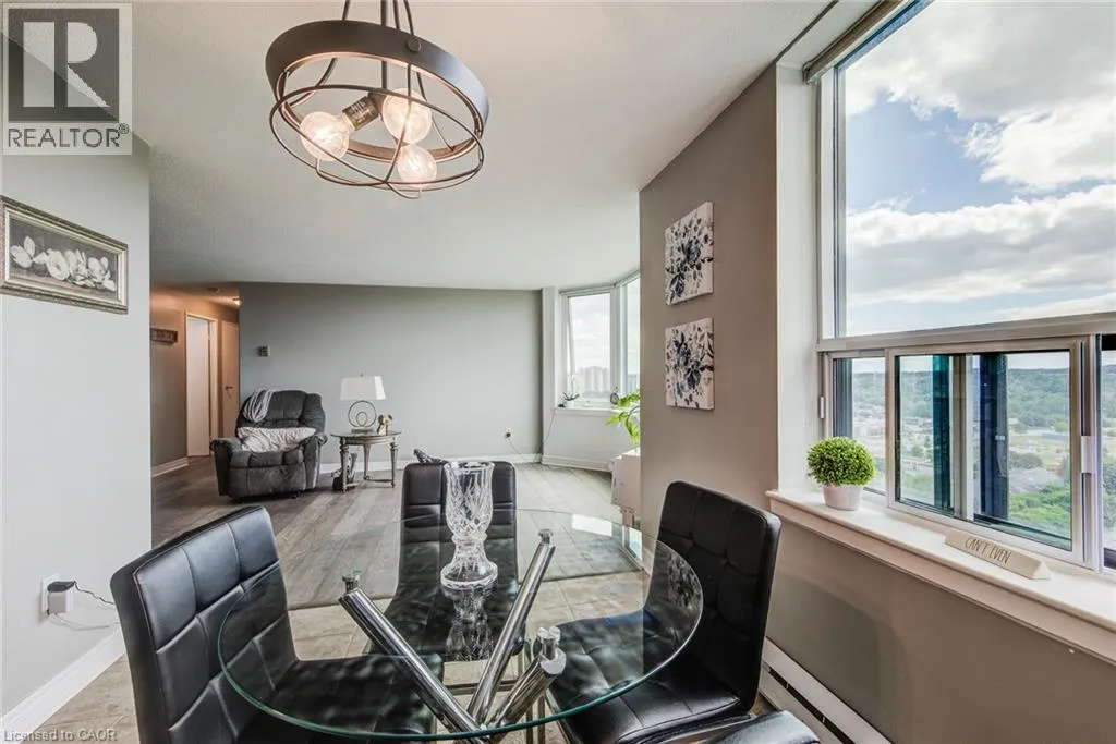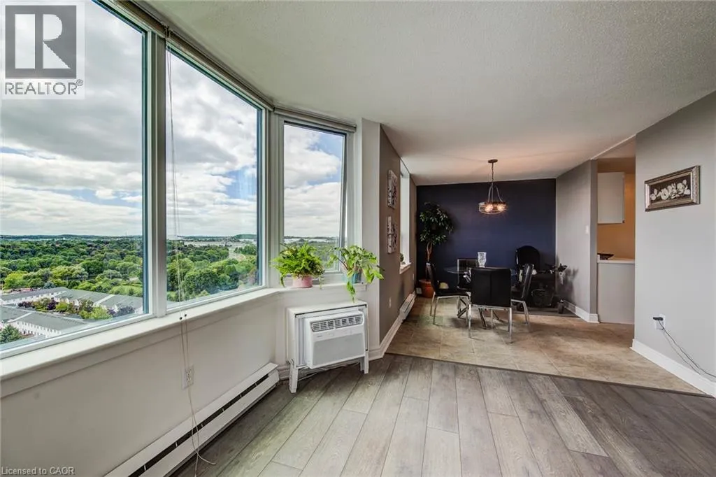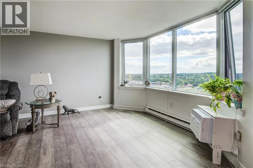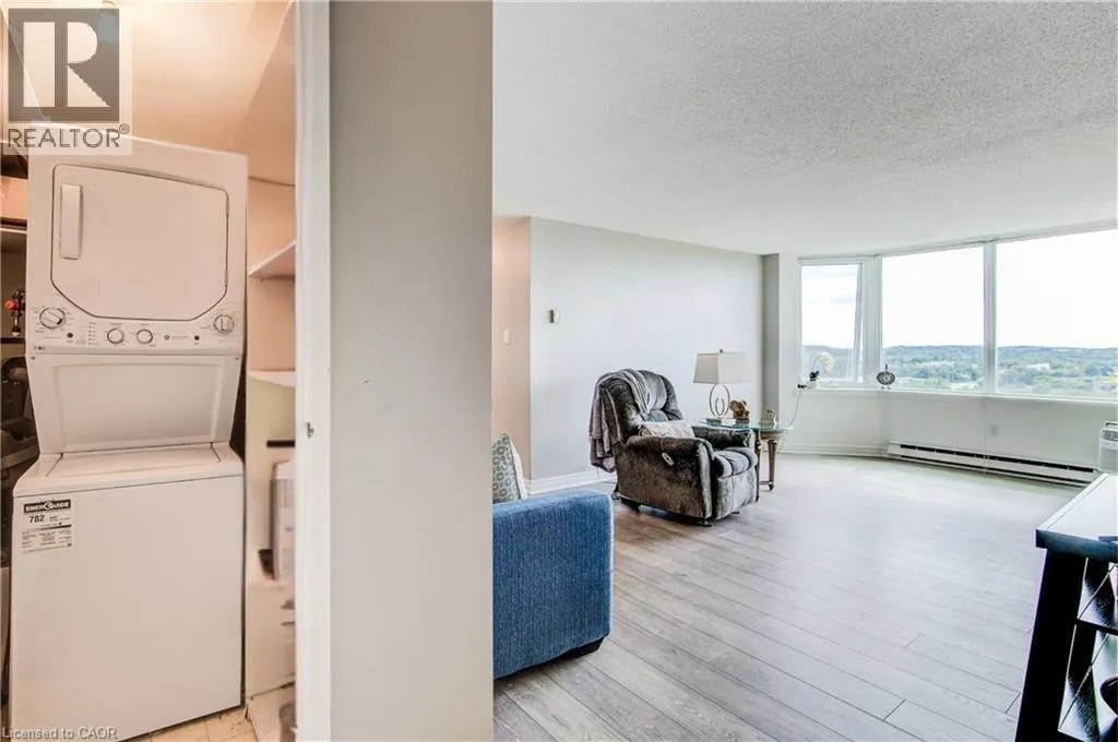 Homer Watson/Pioneer/Green Valley Welcome home to #1605-35 Green Valley Drive, a stylish 2 bed, 1.5 bath, condo in a convenient Kitchener neighbourhood. Offering 1045 sqft of updated living space with spectacular views, this corner-unit features a functional layout with a bright kitchen, a spacious living room, and a separate dining area. The primary bedroom includes a 2 piece updated ensuite, while the main 4 piece modern bath is just steps away from the second bedroom for added convenience. Highlights also include in-suite laundry (washer/dryer approx. 4 years old); neutral flooring, light fixtures and paint throughout; a single parking space included with plenty of visitor parking; and access to building amenities such as an elevator, exercise room, games room, and party room. Ideally located near shopping, restaurants, parks, trails, public transportation, schools, and with easy access to Hwy 401 and Conestoga College. This property is perfect for professionals, small families, investors, or as a smart and affordable option for parents looking to purchase a home for their child while they are attending college. (id:27476)