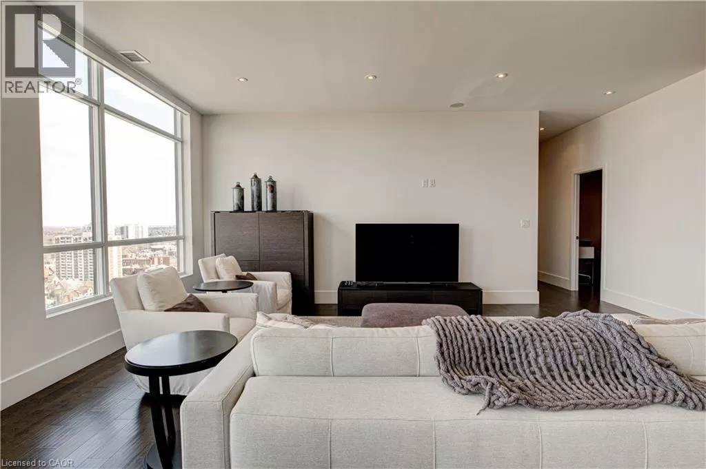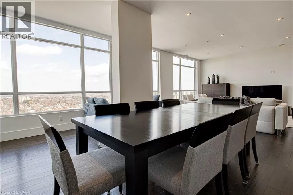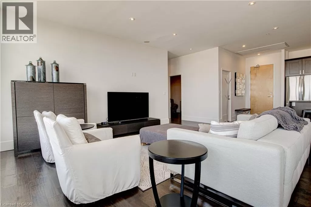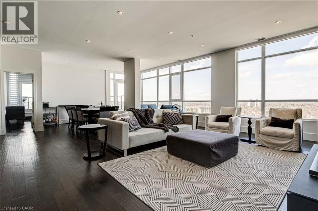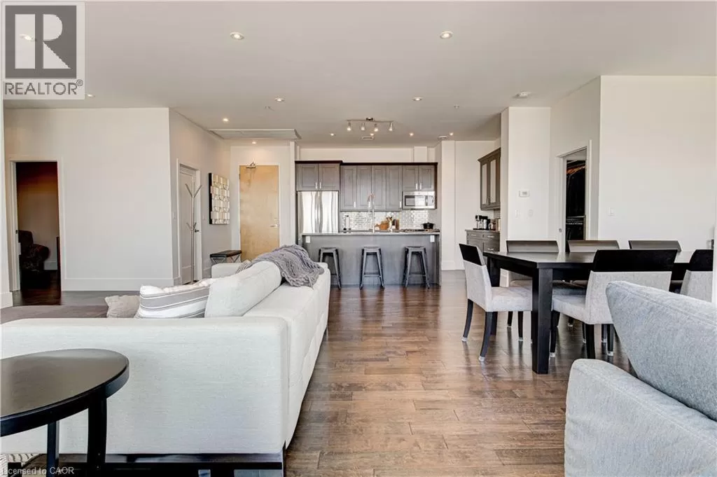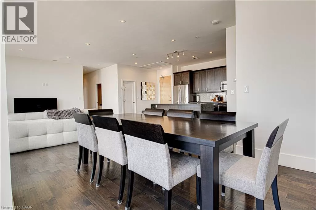 King St W to Victoria Ave S Welcome to the crown jewel of 1 Victoria â a rare, nearly 2,000 sq. ft. penthouse perched atop one of Kitchener's most coveted addresses. Situated in the heart of the Innovation District and steps from Google HQ, the future GO Train station, and the iON LRT, this exclusive residence delivers a vast living space, luxurious finishes and convenience in the centre Kitchenerâs fastest-growing neighborhood. One of only four suites on the top floor, this three-bedroom, two-bathroom home offers unmatched privacy and scale. The corner primary bedroom is flooded with natural light from expansive windows on two sides and features a substantial ensuite along with a walk-in closet outfitted with built-in organizers. The master suite leads directly onto the massive, private terrace from which you can enjoy all day sun, a natural gas BBQ and sweeping views of the city below. The open concept design will allow you to entertain in style in the formal dining room or relax in the massive open-concept living area. The chefâs kitchen is a standout â equipped with designer appliances, a gooseneck faucet, and more storage than most detached homes. The granite counters offer enough surface area to please those who enjoy having a different countertop appliance for different tasks. This residence features engineered hardwood flooring throughout, soaring 10-foot ceilings, and custom window treatments with light-filtering or full privacy options in the bedrooms. Two parking spots â one with EV charging â and two private lockers complete the package. Residents enjoy access to exceptional amenities including a rooftop terrace with community gardens, a professional-grade fitness centre, theatre room, and party spaces. Luxury. Location. Exclusivity. This is penthouse living redefined. (id:27476)