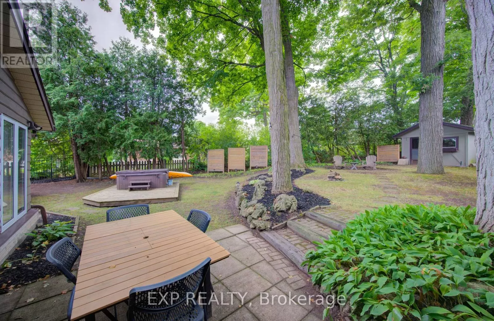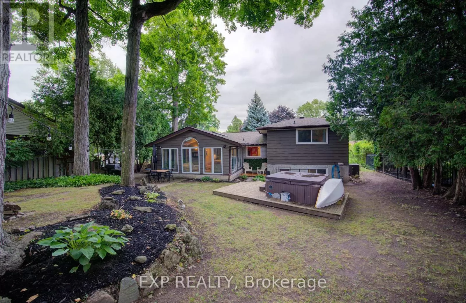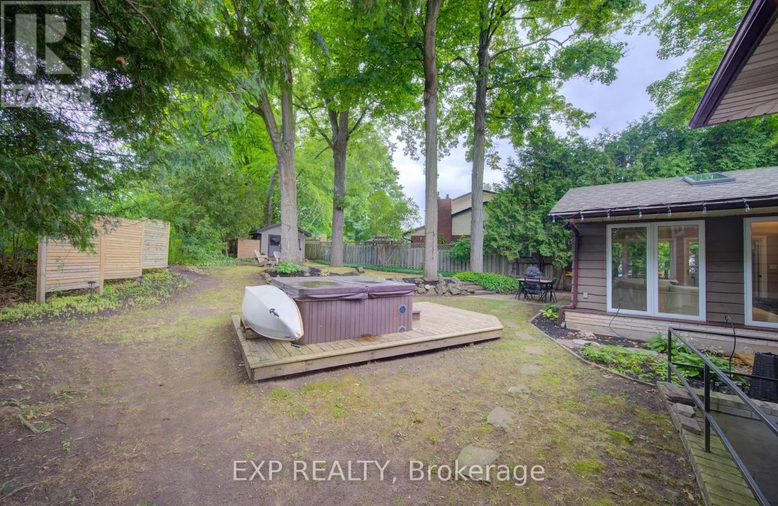 Woolwich Street Welcome to 47 Hillcrest Lane, Kitchener a spacious and beautifully maintained 3-bedroom, 2-bathroom side split offering 1,933 sq. ft. of total living space in one of Kitcheners most desirable neighbourhoods, just steps from the Grand River, walking trails, and lush green spaces. From the moment you arrive, youll appreciate the large, beautifully landscaped front yard, extra-long driveway, and charming front patio. Inside, the bright living room with an updated oversized window and engineered hardwood floors flows seamlessly into the dining area, creating an inviting space for family gatherings and entertaining. The spacious kitchen features stainless steel appliances, abundant cabinet storage, plenty of lighting, and a updated large window overlooking the backyard. A highlight of the home is the bonus family room on the main floor, with hardwood floors, skylights, and walls of newer windows offering backyard views and walkout access the perfect spot to relax and unwind. Upstairs, youll find three generously sized bedrooms, each with hardwood flooring, large windows, and ample closet space. A stylish 4-piece bathroom completes the upper level. The finished basement extends your living space with a large rec room featuring a cozy fireplace, a 3-piece bathroom, and a laundry area. Step outside to your private, tree-lined backyard oasis, complete with a patio, hot tub, shed, and plenty of green space ideal for relaxing or entertaining. Situated in a quiet, family-friendly neighbourhood, this home offers the perfect blend of comfort and convenience, with easy access to schools, parks, shopping, major highways, and the natural beauty of the Grand River.REALTOR: (id:27476)