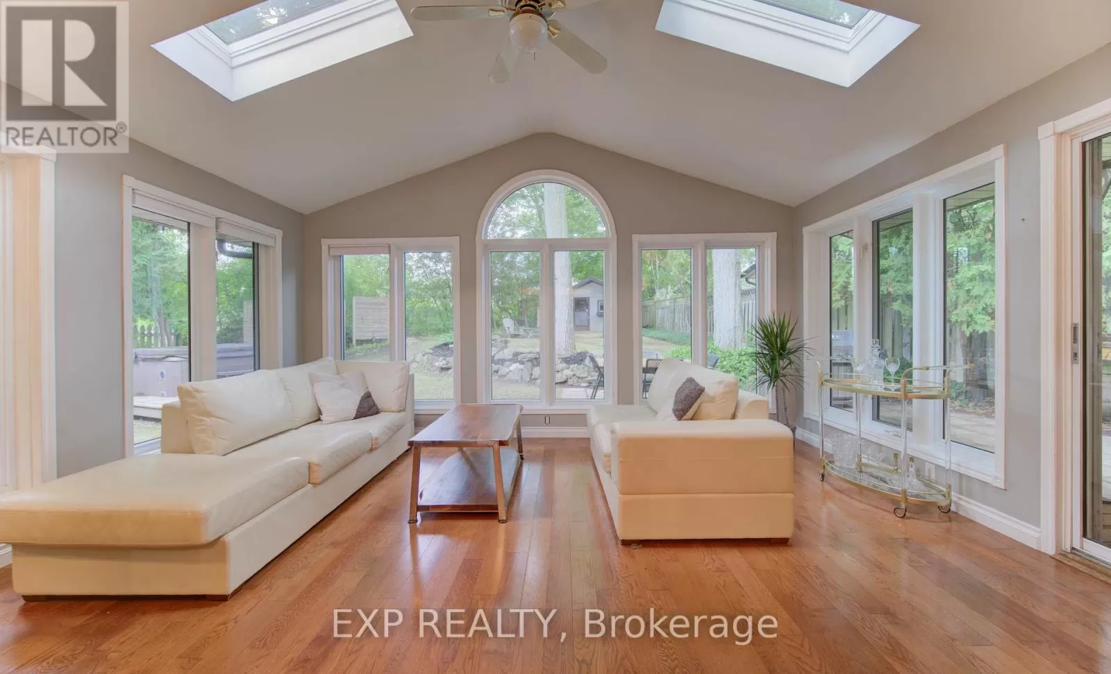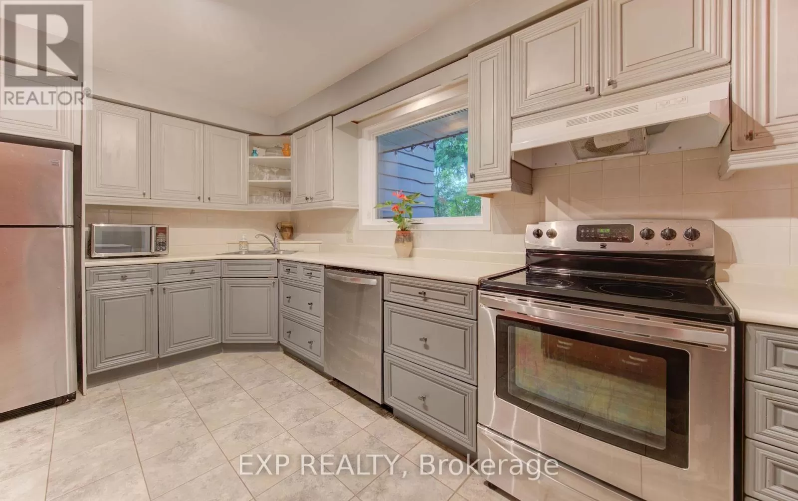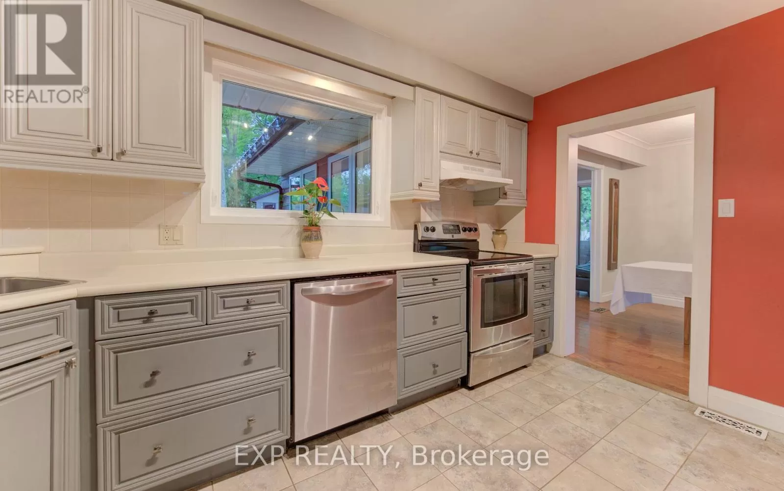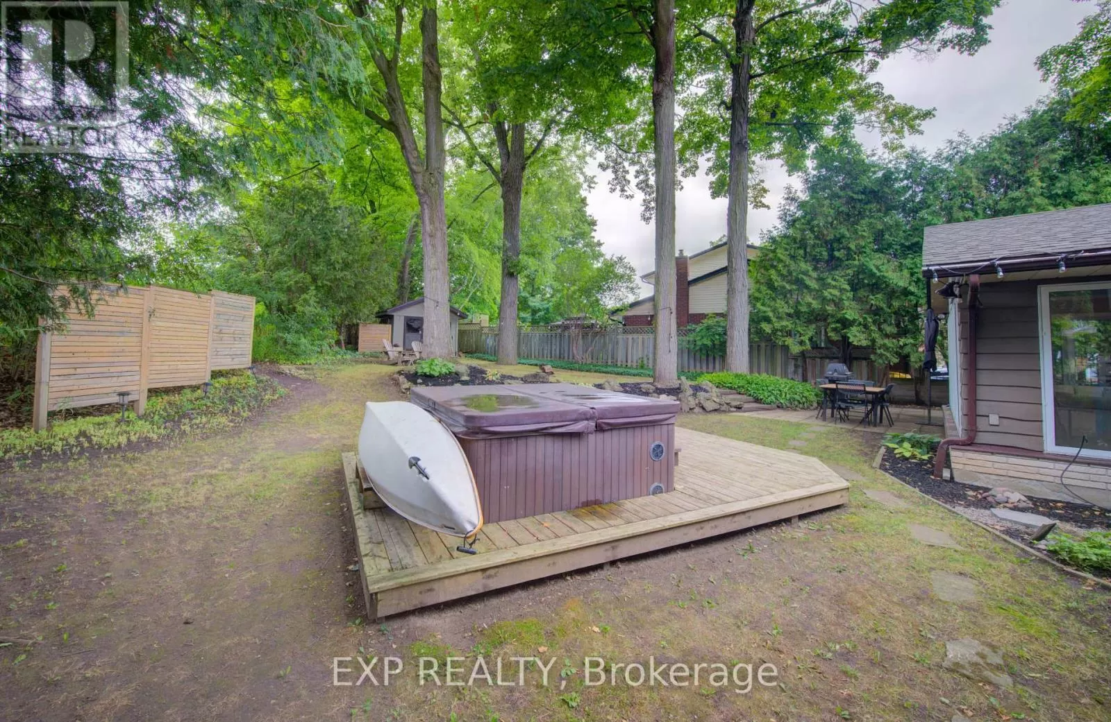 Woolwich Street Welcome to 47 Hillcrest Lane, Kitchener a spacious and beautifully maintained 3-bedroom, 2-bathroom side split offering 1,933 sq. ft. of total living space in one of Kitcheners most desirable neighbourhoods, just steps from the Grand River, walking trails, and lush green spaces. From the moment you arrive, youll appreciate the large, beautifully landscaped front yard, extra-long driveway, and charming front patio. Inside, the bright living room with an updated oversized window and engineered hardwood floors flows seamlessly into the dining area, creating an inviting space for family gatherings and entertaining. The spacious kitchen features stainless steel appliances, abundant cabinet storage, plenty of lighting, and a updated large window overlooking the backyard. A highlight of the home is the bonus family room on the main floor, with hardwood floors, skylights, and walls of newer windows offering backyard views and walkout access the perfect spot to relax and unwind. Upstairs, youll find three generously sized bedrooms, each with hardwood flooring, large windows, and ample closet space. A stylish 4-piece bathroom completes the upper level. The finished basement extends your living space with a large rec room featuring a cozy fireplace, a 3-piece bathroom, and a laundry area. Step outside to your private, tree-lined backyard oasis, complete with a patio, hot tub, shed, and plenty of green space ideal for relaxing or entertaining. Situated in a quiet, family-friendly neighbourhood, this home offers the perfect blend of comfort and convenience, with easy access to schools, parks, shopping, major highways, and the natural beauty of the Grand River.REALTOR: (id:27476)