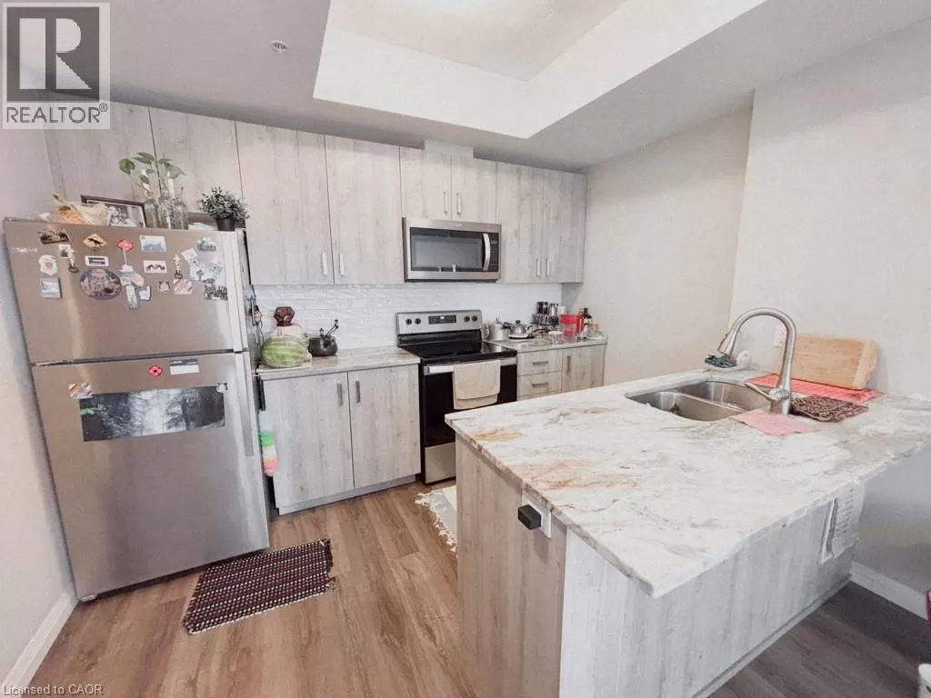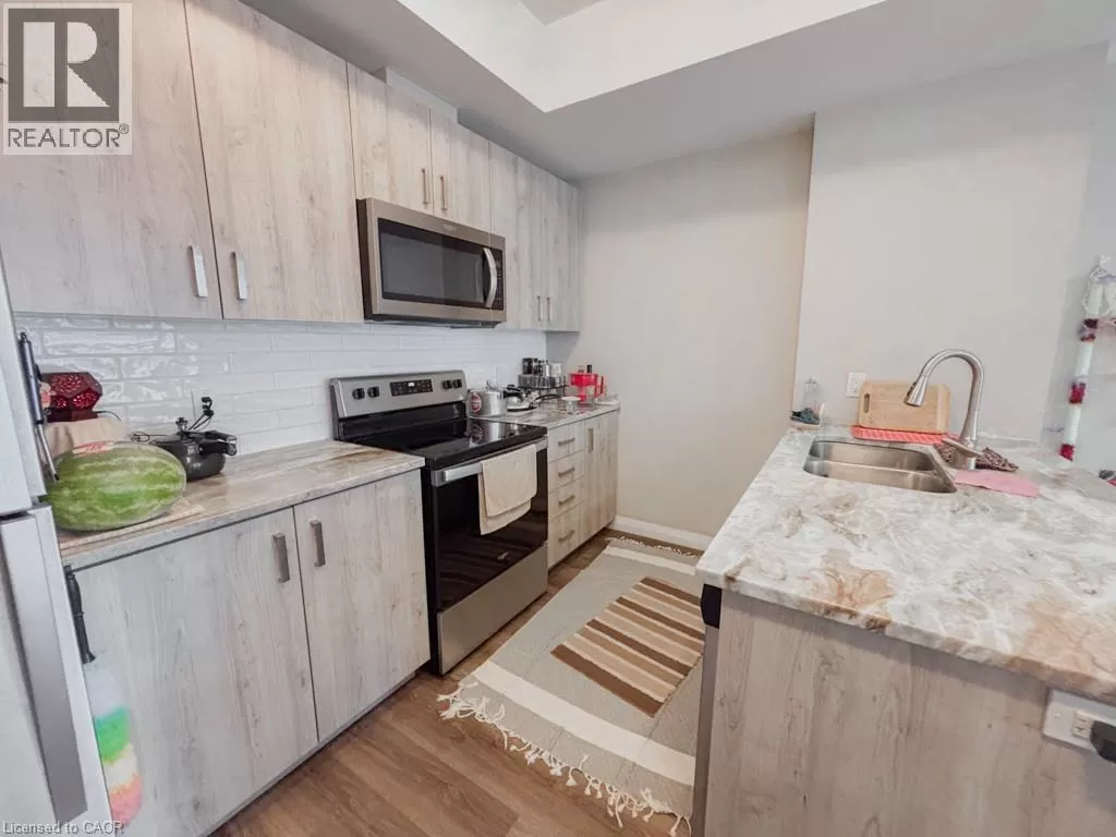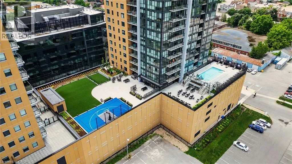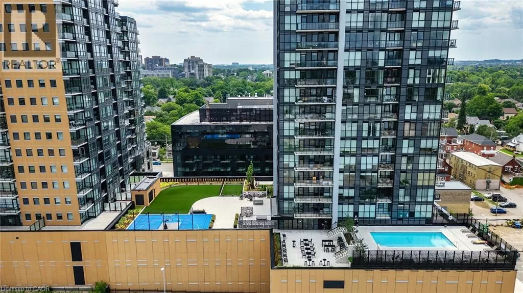 Victoria Street and Garment Street - Across from Oak Street Welcome to Garment Street Condos - where contemporary style meets downtown Kitchenerâs vibrant energy. Located in the sought-after third and newest Garment Condo Tower, this recently completed building redefines condo living with exclusive amenities: a private swimming pool, basketball court, fitness centre, yoga studio, party room, expansive lobby lounge, outdoor bbq's and patio and ground level retail. Work hard, play harder â itâs all here. Step inside Unit 1101, a beautifully upgraded one-bedroom suite with a sleek, open-concept design. Every detail has been carefully chosen, from the rich flooring to the crisp granite countertops and modern stainless steel appliances. The 50-square-foot balcony is the perfect perch for morning coffee or an evening glass of wine, complete with a city view. Even the lobby makes a statement with its stylish furnishings and welcoming spaces to relax or connect with neighbours. Perfectly situated within walking distance of transit, boutique shops, trendy restaurants, and the regionâs thriving tech hub, Garment Street offers an elevated urban lifestyle. Come see for yourself why this is downtown Kitchenerâs most talked-about address. Perfectly located steps from the ION Light Rail, Victoria Park, and Downtown Kitchenerâs shops, markets, and dining, with convenient access to tech offices and the University of Waterloo campus. A standout opportunity in one of the regionâs fastest-growing neighbourhoods! (id:27476)