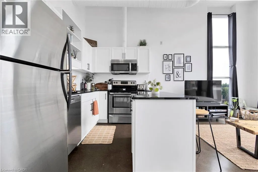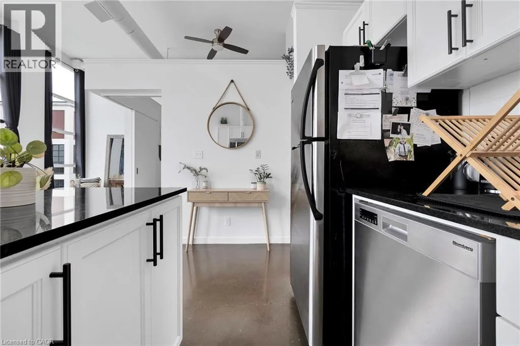 Kiddy Corner Across from School of Pharmaceutical Victoria King Enter through Rear Corner Unit South east view Kaufman 5th Floor, wide view of the cityscape and only one adjoining neighbor. Open concept design and high ceilings offer a great floor plan in an economical space. Bonus computer nook wired for internet. Six appliances incl., Access to party room & one of the best views of the city on the roof top terrace that allows BBQ. Parking & storage locker incl. 1 parking spaces and locker storage! Maintenance includes, water, water heating, unit heat-AC Natural light floor to ceiling windows, newer appliances & closet organizers, floor to ceiling black out curtains. Directly to the LRT & public transit from your door step. Go & Via. As would be expected in downtown living high walk score with eatery's, Victoria Park. Events Oktoberfest & Santa parade- Waterloo School Of Pharmacy, The Tannery, Google & myriad of different business hubs of employment steps from your door. (id:27476)