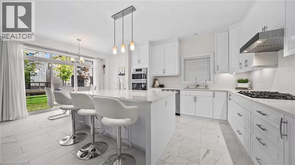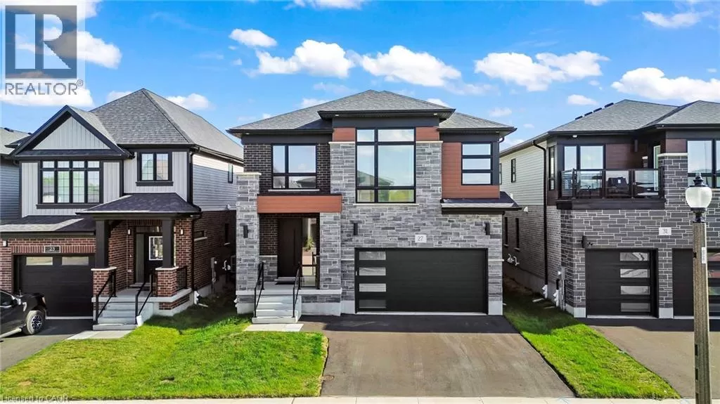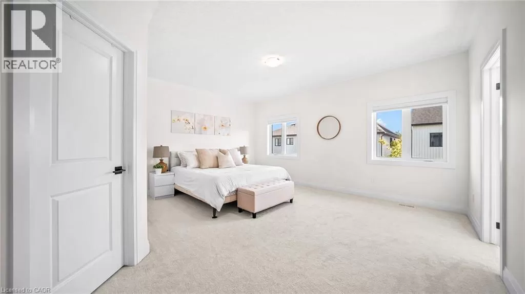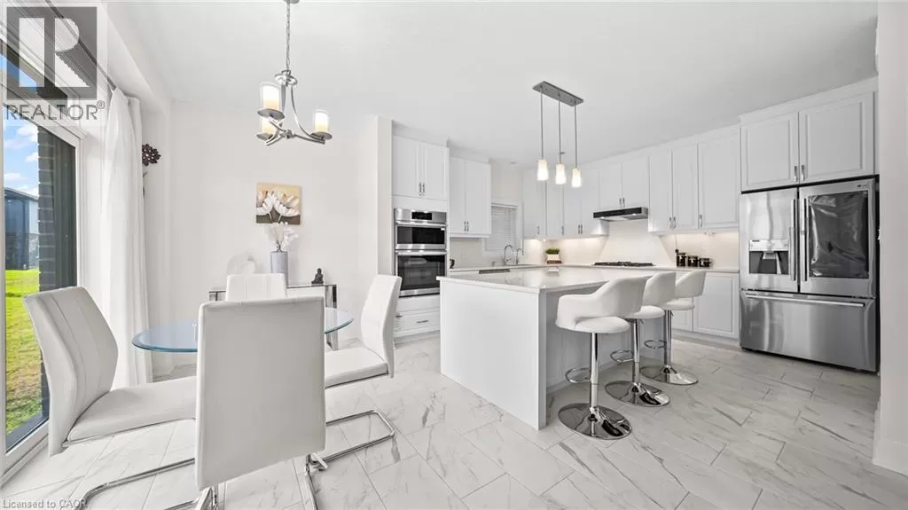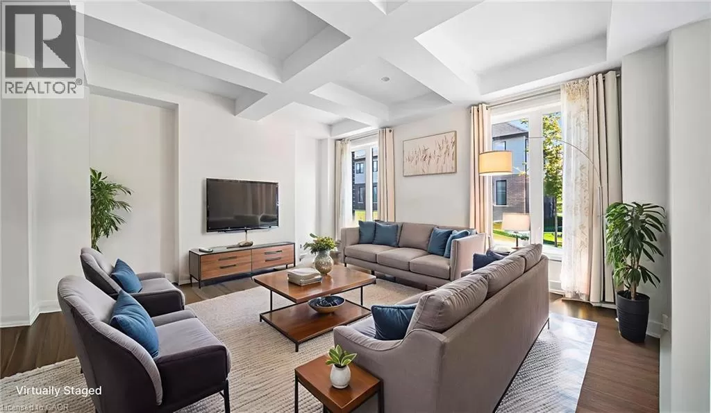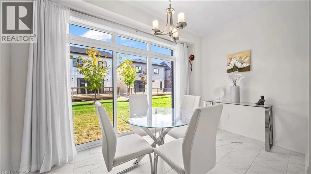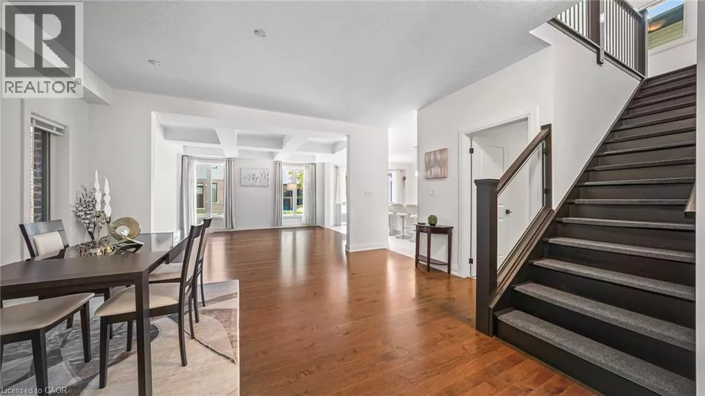 New Dundee and Dodge Experience modern living in this nearly new Net Zero Ready home in the coveted Harvest Park community. This amazing home features 4 bedrooms and 3.5 washrooms. With over $150,000 in upgrades, this custom-designed home combines style, comfort, and eco-conscious efficiency. The main floor boasts a bright open layout, highlighted by a chef-inspired kitchen with premium appliances, custom ceiling-height cabinetry, and seamless flow into the dining and great room perfect for entertaining. A striking waffle ceiling, powder room, and laundry complete the level. Soaring 9-foot ceilings continue throughout, including the professionally finished basement. Upstairs offers four spacious bedrooms plus a versatile family room that could serve as a fifth bedroom. The principal suite is a serene retreat with a walk-in closet and spa-like ensuite. The finished basement expands your living space with a large open area, full bath, and two storage rooms. With rough-ins for a kitchen, sink, and laundry, its ideal for a home theater, in-law suite, or secondary unit. Soundproofing throughout, including the garage ceiling, ensures quiet comfort. This Harvest Park gem offers the peaceful tranquility of green acres while being just minutes from Highway 401 and all the amenities of South Kitchener. **Some Photos are virtually staged** (id:27476)