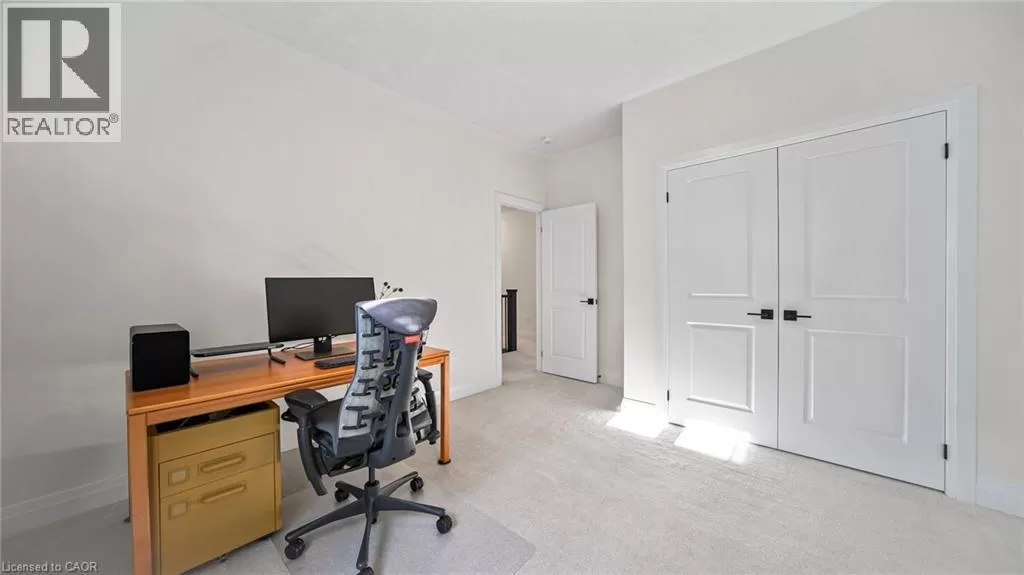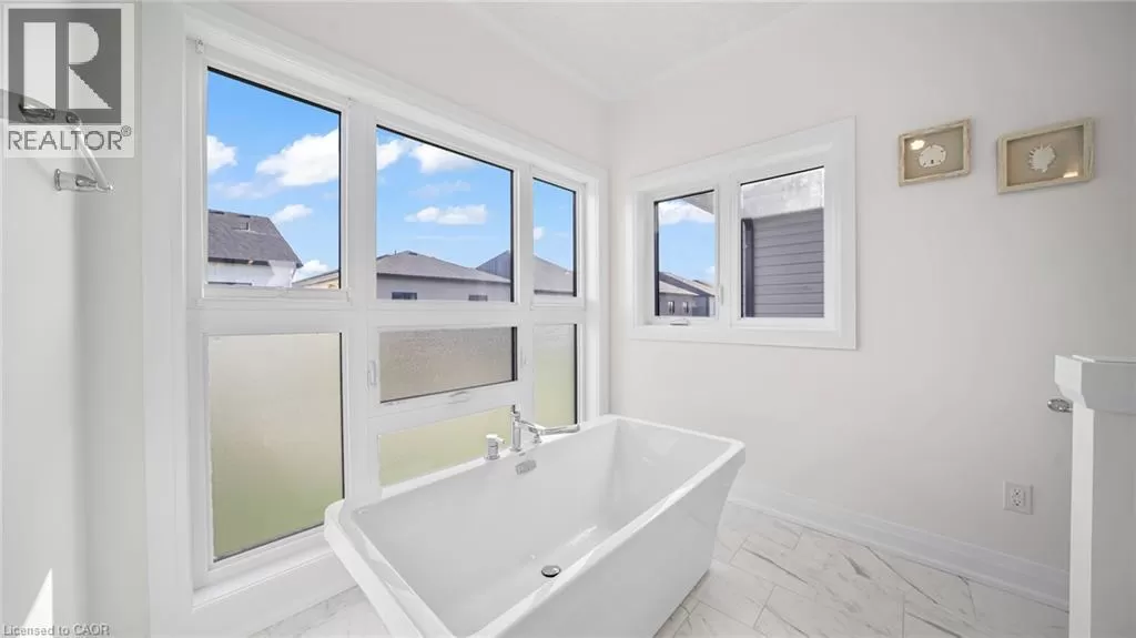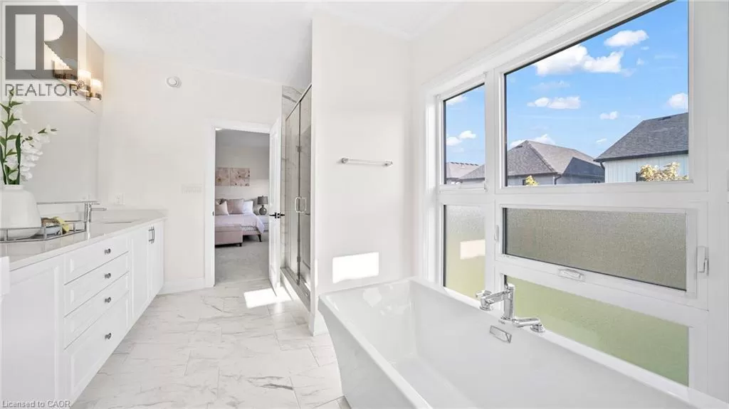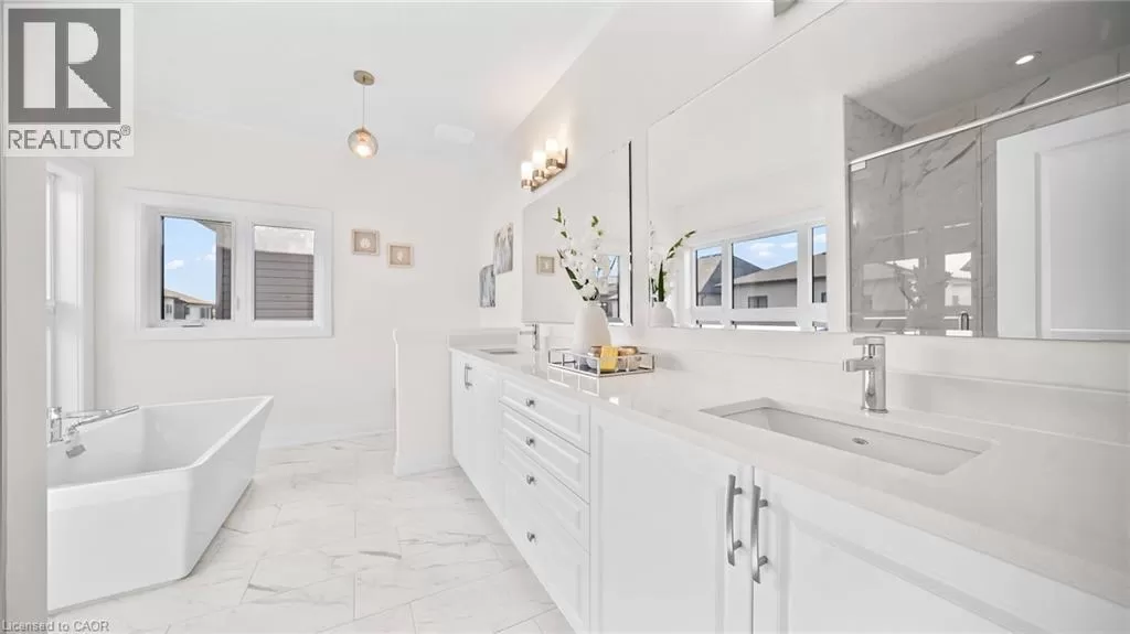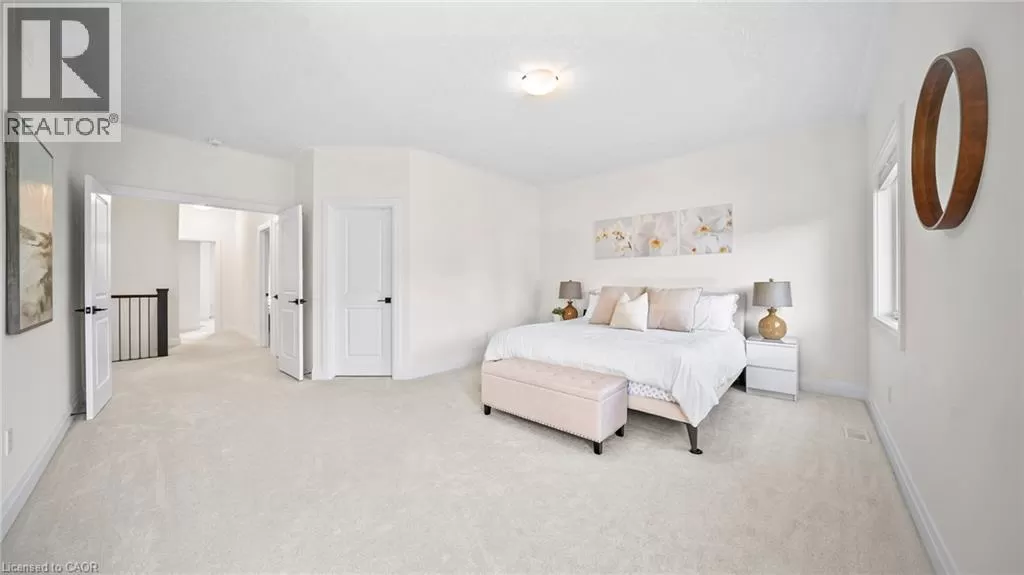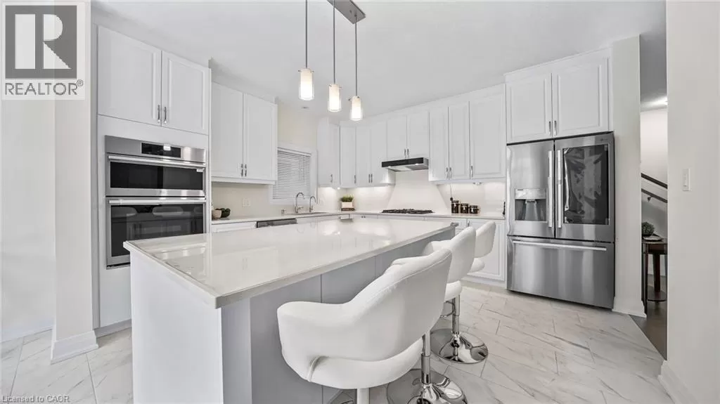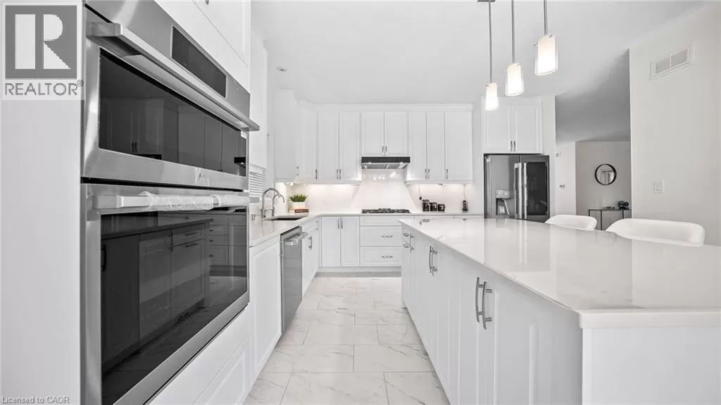 New Dundee and Dodge Experience modern living in this nearly new Net Zero Ready home in the coveted Harvest Park community. This amazing home features 4 bedrooms and 3.5 washrooms. With over $150,000 in upgrades, this custom-designed home combines style, comfort, and eco-conscious efficiency. The main floor boasts a bright open layout, highlighted by a chef-inspired kitchen with premium appliances, custom ceiling-height cabinetry, and seamless flow into the dining and great room perfect for entertaining. A striking waffle ceiling, powder room, and laundry complete the level. Soaring 9-foot ceilings continue throughout, including the professionally finished basement. Upstairs offers four spacious bedrooms plus a versatile family room that could serve as a fifth bedroom. The principal suite is a serene retreat with a walk-in closet and spa-like ensuite. The finished basement expands your living space with a large open area, full bath, and two storage rooms. With rough-ins for a kitchen, sink, and laundry, its ideal for a home theater, in-law suite, or secondary unit. Soundproofing throughout, including the garage ceiling, ensures quiet comfort. This Harvest Park gem offers the peaceful tranquility of green acres while being just minutes from Highway 401 and all the amenities of South Kitchener. **Some Photos are virtually staged** (id:27476)