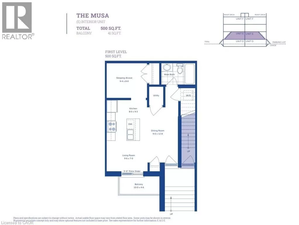 QUEEN STREET S VIVAâTHE BRIGHTEST ADDITION TO DOWNTOWN KITCHENER. In this exclusive community located on Mill Street near downtown Kitchener, life at Viva offers residents the perfect blend of nature, neighbourhood & nightlife. Step outside your doors at Viva and hit the Iron Horse Trail. Walk, run, bike, and stroll through connections to parks and open spaces, on and off-road cycling routes, the iON LRT systems, downtown Kitchener and several neighbourhoods. Victoria Park is also just steps away, with scenic surroundings, play and exercise equipment, a splash pad, and winter skating. Nestled in a professionally landscaped exterior, these modern stacked townhomes are finely crafted with unique layouts. The Musa interior studio model boasts an open concept layout â a kitchen with a breakfast bar, quartz countertops, ceramic and luxury vinyl plank flooring throughout, stainless steel appliances, and more. Offering 500 sqft of open living space including a sleeping alcove, 1 full bathroom and a balcony. Parking not available for this unit. Thrive in the heart of Kitchener where you can easily grab your favourite latte Uptown, catch up on errands, or head to your yoga class in the park. Relish in the best of both worlds with a bright and vibrant lifestyle in downtown Kitchener, while enjoying the quiet and calm of a mature neighbourhood. (id:27476)