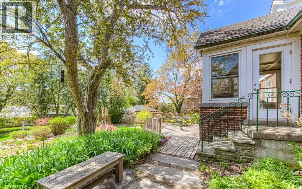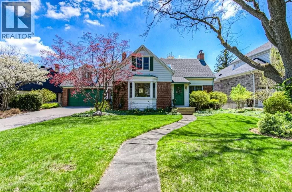 Westmount to Rusholme Welcome to a one-of-a-kind residence in one of KWs most sought-after residential areas, featuring an expansive 82â X 175â lot. This beautifully maintained home was built in 1950 by local community leader Ira Needles and now combines classic craftsmanship with contemporary convenience. Step into the elegant front entryway featuring a tiled floor, cedar-lined closet, and skylight over the main staircase that floods the space with natural light. Inside, you'll find a harmonious blend of hardwood flooring, plaster ceilings with crown moulding, and timeless architectural details. The spacious living room boasts oak hardwood, a wood-burning fireplace, and custom built-in bookshelves. Entertain in the formal dining room complete with a bay window bench seat and built-in sideboard. The eat-in kitchen offers granite counters, a central island, tile backsplash, and pot lightsâand a classic tiled floor. Bring the outdoors in and unwind in your incredible sunroom overlooking the beautifully landscaped backyard. Don't forget the versatile study that could be a beautiful office space or main floor family room. Upstairs, are three generously sized bedrooms. Two are finished w/ warm walnut hardwood. The primary suite offers built-in cabinetry acting as dressers, two deceptively spacious closets, and a luxurious 4-piece ensuite with a tiled, heated floor. A unique bonus bedroom sits above the garage! The walk-out basement is finished with ¾-inch oak wall paneling, a second wood-burning fireplace, and stylish mini bar w/ slate floor, tin ceiling, wine fridge, and second fridge. Outside, enjoy the serenity of a stunning backyard landscaped entirely with perennials, a multi-tiered deck, gas BBQ line, and a hot tubâperfect for entertaining or relaxing in your private oasis. Additional highlights include: copper eavestroughs, new boiler (2022) and shingles (2021). This unique home is filled with character, quality, and comfortâa rare opportunity to own a true piece of local history. (id:27476)