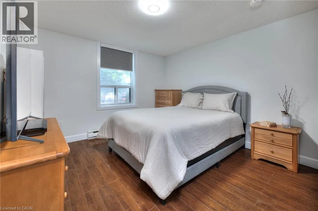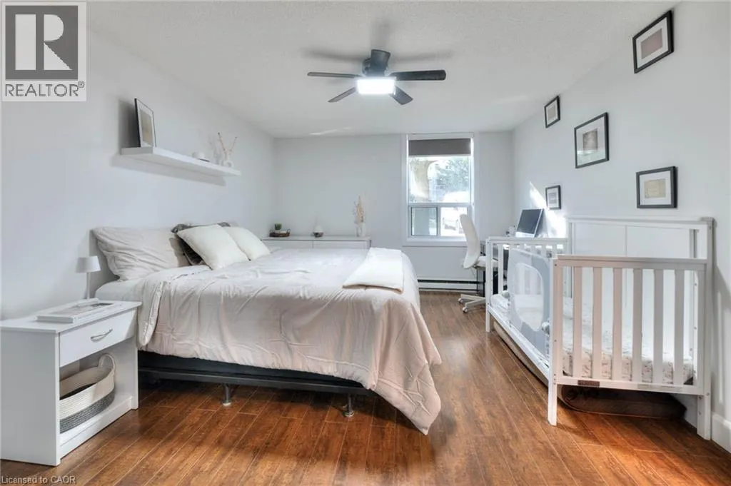Homer Watson on to Pioneer Drive and turn left on Green Valley Drive - guest parking above ground in view of front entrance Welcome to luxury living at 103 - 35 Green Valley Drive, Kitchener. This splendid 2 bed, 2 bath residence combines modern sophistication with timeless comfort, offering a home youâll be proud to call your own. Every detail has been thoughtfully curated, from the sleek renovations to the tranquil natural setting. Step inside and youâll be greeted by bright, freshly painted interiors (2025) accented with upgraded baseboards, window frames, and door casings (2025), giving the unit a refined elegance. Lovely flooring pairs beautifully with newly added pot lights (2022) and updated light fixtures, creating a warm and inviting ambiance throughout. The spacious kitchen has been upgraded with a new countertop (2020), along with a newer stove and fridge (2023), complemented by a washer and dryer (2025). An elegant electric fireplace (2023) adds both comfort and style. The thoughtful renovations continue with renovated closets, a new electrical panel (2022), and upgraded outside windows (2024), ensuring both functionality and peace of mind. Beyond the unit itself, serenity abounds. The calming flow of the Grand River and the surrounding walking trails offer a daily retreat into nature. Conveniently situated near Highway 401 and Conestoga College, this residence provides easy access to major routes, while a nearby plaza offers groceries, dining, and retail options just steps away. Families will also appreciate its close proximity to schools, parks, and public transit. The building welcomes you with a secure entrance and inviting lobby, including variety of amenities, a gym with sauna, a quiet room, a party room, and a bike room. Surrounding parks provide safe and enjoyable outdoor spaces for both adults and children alike. This home offers more than just a place to liveâit delivers a lifestyle of convenience, and elegance. We invite you to experience the allure of this remarkable residence and make it your own. (id:27476)
