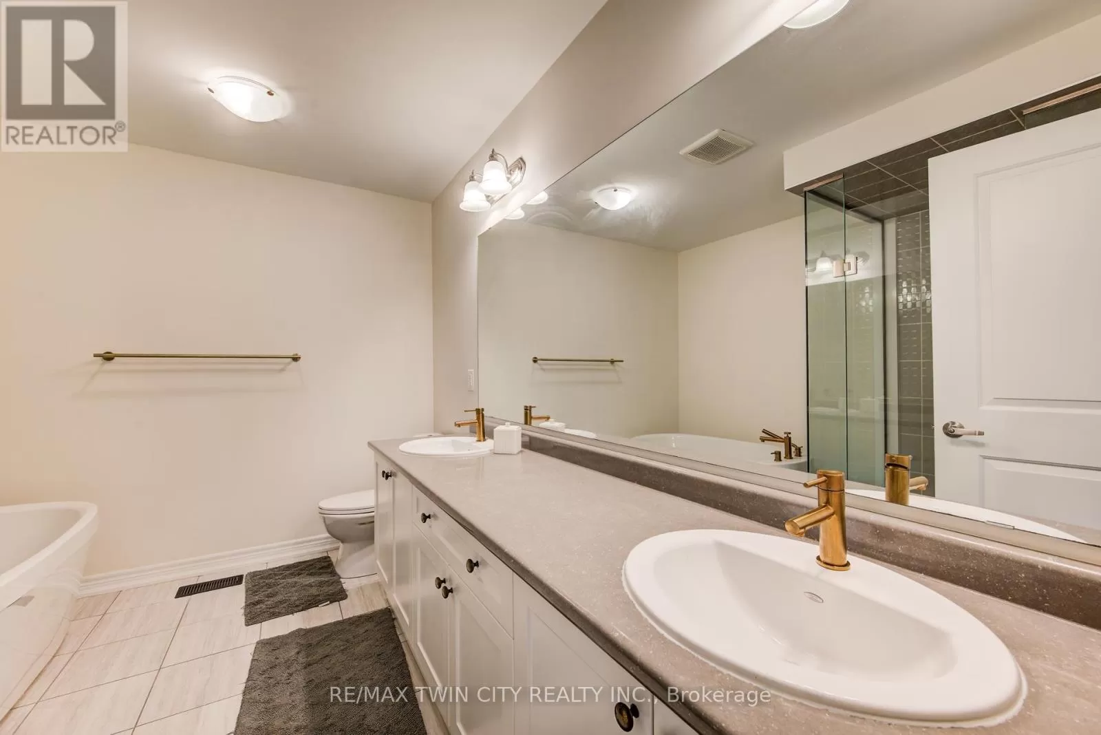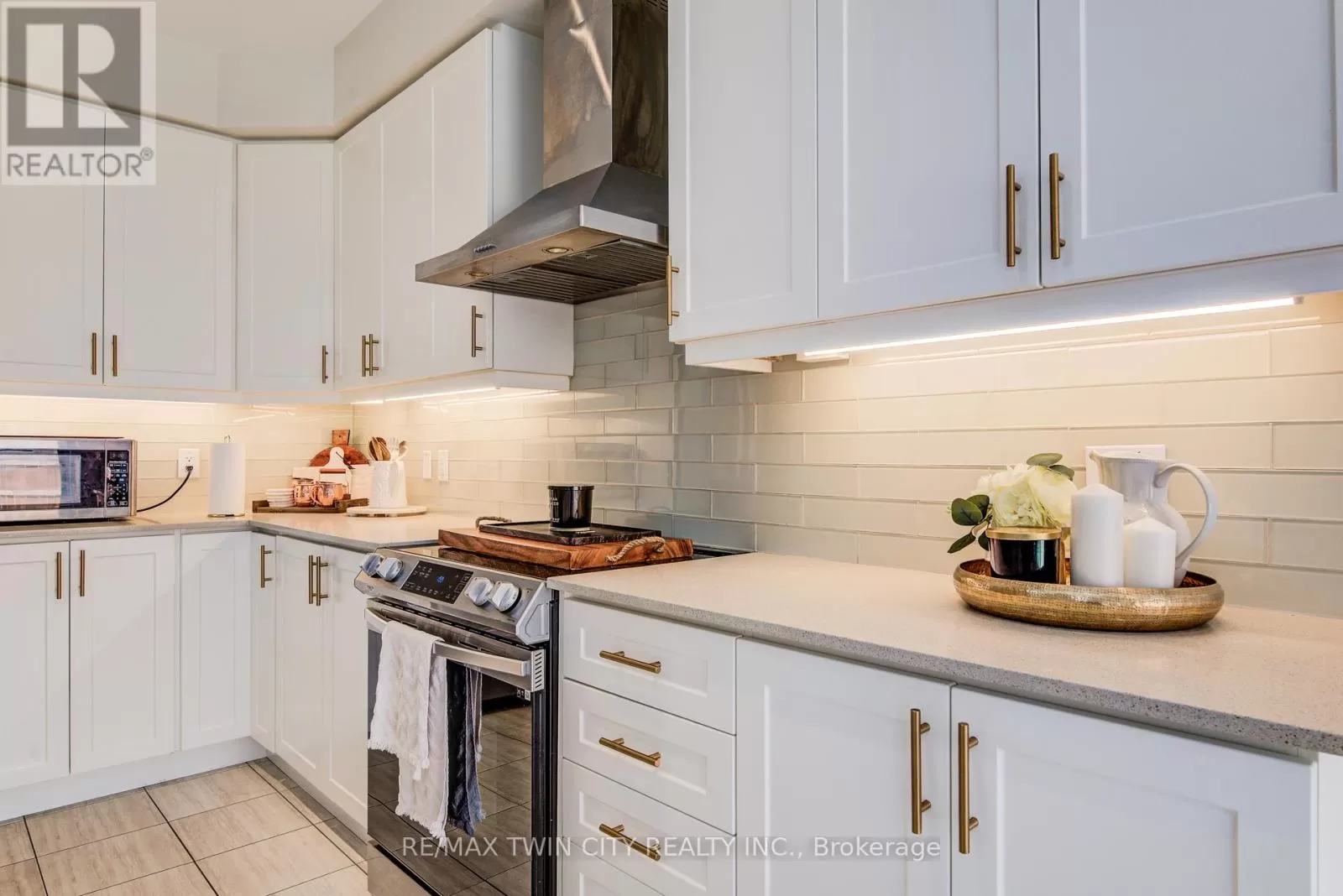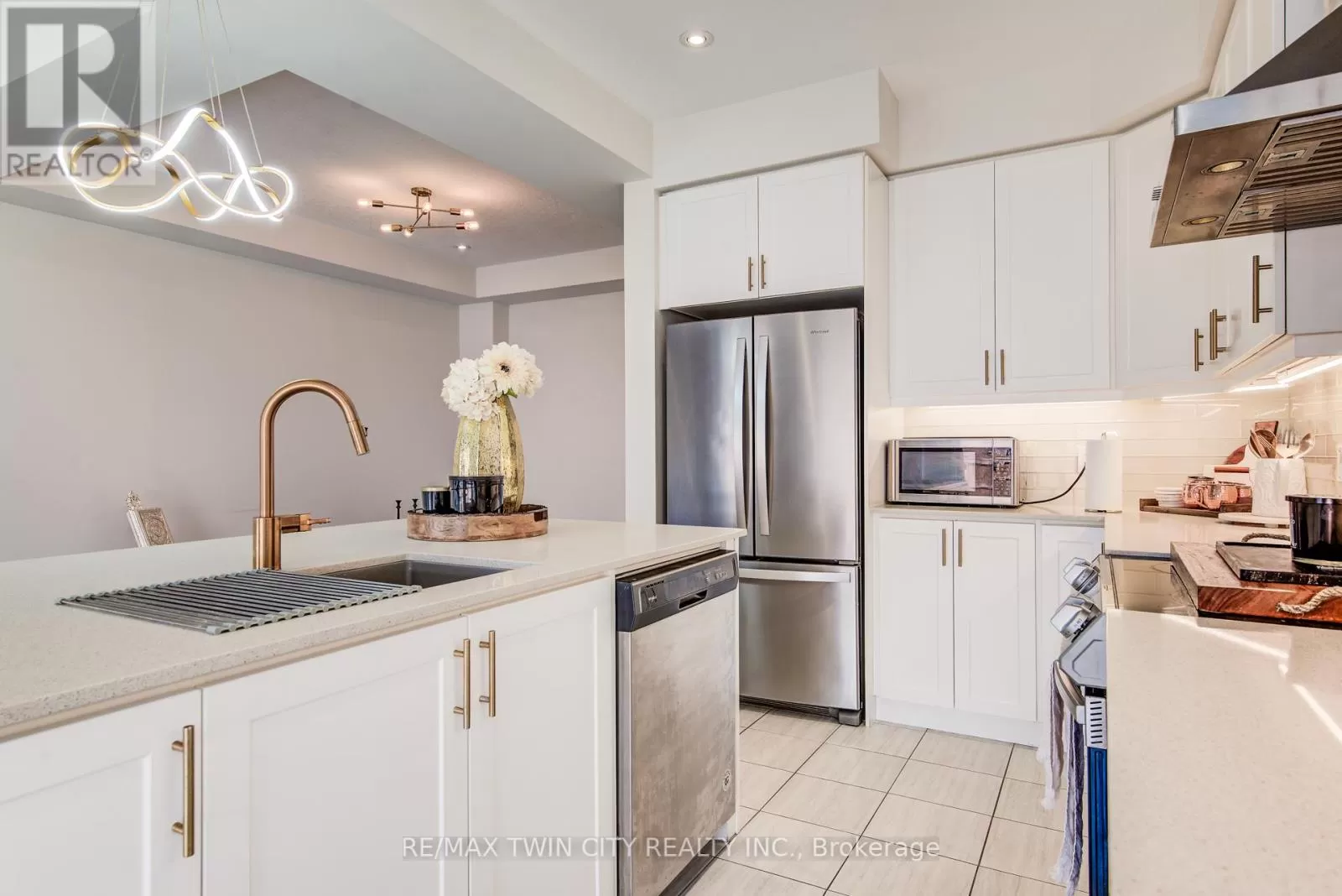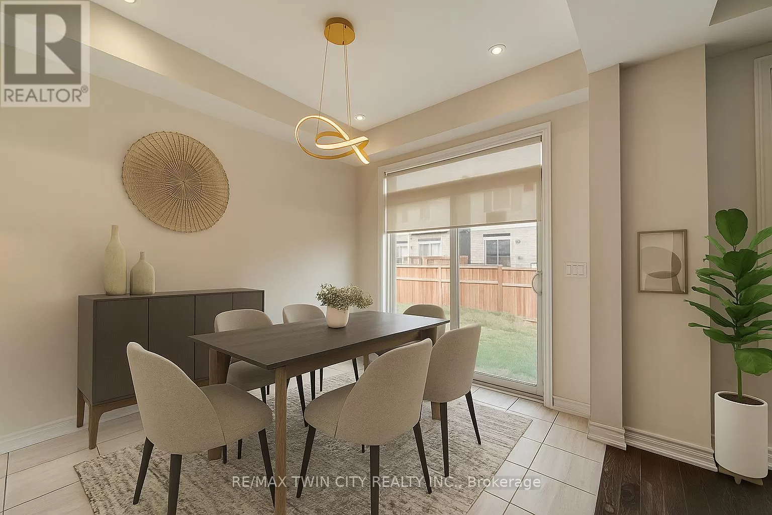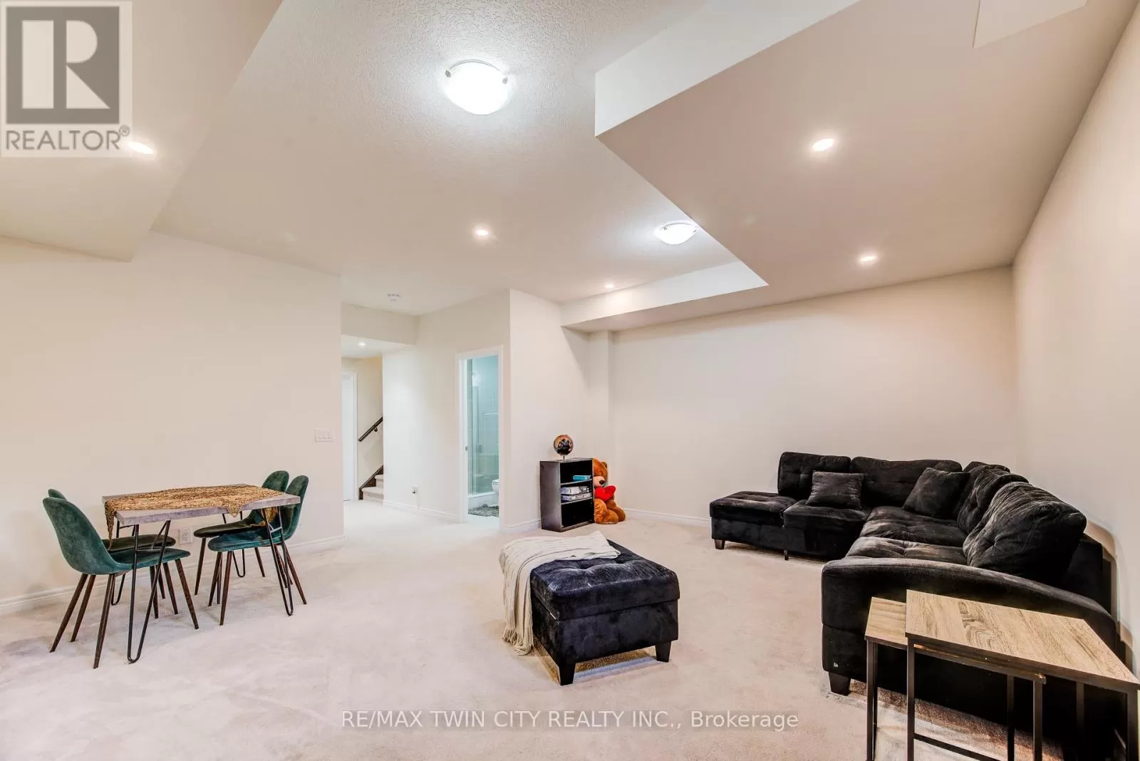 Fischer Hallman Rd - Huron Rd - Beckview Dr - Stonehill Ave OVER 2700 SQ FT OF FINISHED SPACE INCLUDING THE FINISHED BASEMENT. BEAUTIFUL TOWNHOME IN A DESIRABLE NEW COMMUNITY. Welcome to this beautiful 3-bedroom, 4-bathroom home in the highly sought-after Wallaceton community of Kitchener. Perfectly located close to schools, parks, and shopping, this property offers both convenience and comfort. The open-concept carpet-free, modern main level features a cozy living room with a fireplace and large windows, seamlessly connected to the stunning kitchen with a spacious eat-in island, quartz countertops, subway tile backsplash, stainless steel appliances, and elegant gold hardware. The dining area includes a sliding door walkout to the backyard, making it ideal for entertaining. Upstairs, youll find 3 generous bedrooms along with a convenient laundry room. The primary suite is a dream, complete with a walk-in closet and a spa-like 5-piece ensuite. The finished basement adds even more living space with a large rec room, full 4-piece bathroom, and plenty of storage. This home combines modern finishes, thoughtful design, and a prime locationtruly a must-see! (id:27476)