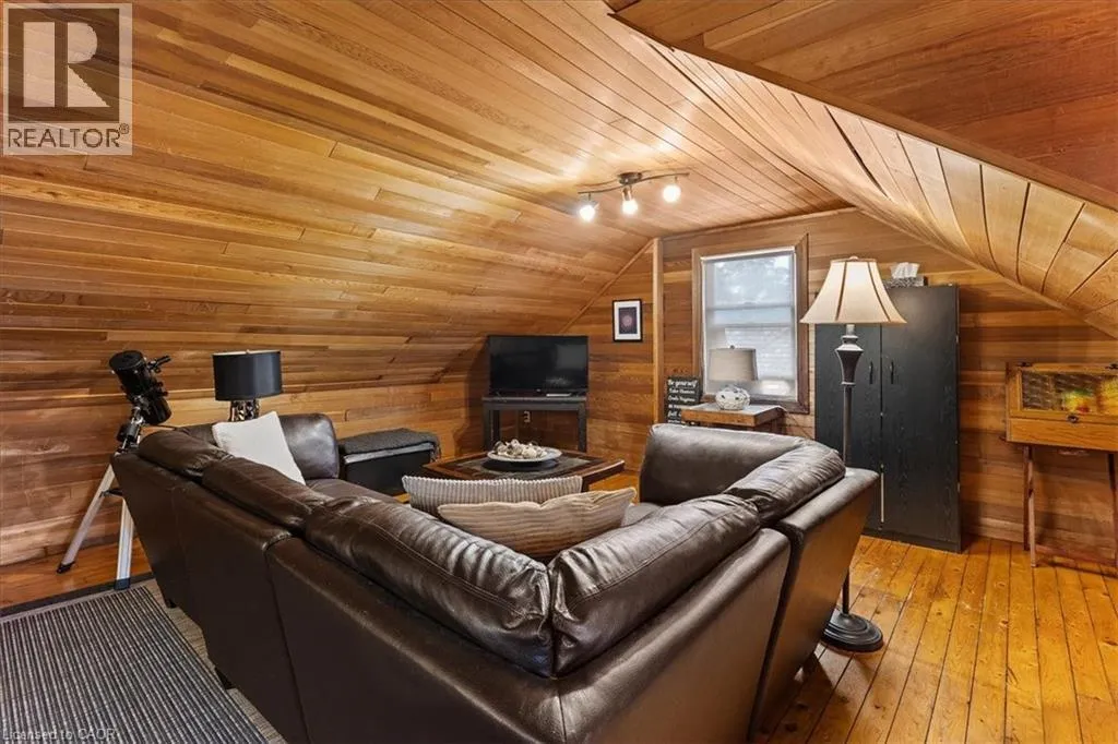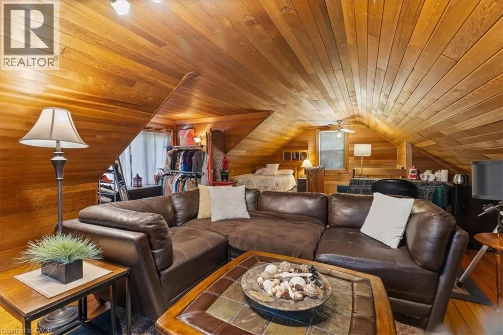 East Avenue to Cameron St North (between Lydia and Merner) When the quality of yesteryear craftsmen mix with modern day convenience, you get...240 Cameron St. North in Kitchener. A classic Schnarr built home that has been skillfully enhanced over time. This is your chance to own an East Ward home that sits among mature, tree lined streets and is moments away from...everything! Walking distance to The Aud, schools, churches, a leash free dog park, and a thriving Downtown giving you arts, libraries and fine dining! This home truly has something for everyone, from the HUGE finished attic retreat to the lower-level theatre room, complete with projector, screen and cozy fireplace! The main floor has a formal dining & living room with crown moulding, a gorgeous fireplace with original mantel PLUS an updated kitchen, den/office, main floor washroom and a custom-built bar/coffee station with walk-out to the deck, perfect for entertaining. The chef's delight kitchen shines with a centre island, custom cabinetry, a double door pantry, Tuscan style backsplash & a new gas oven/stove. Walkout to your upgraded pressure treated deck with sunken hot tub, perfect for those long, cold winter nights! The second floor offers 3 bedrooms, including a master bedroom with a huge walk-in closet & 3-piece ensuite, a 2nd large bedroom, 4 piece bath and a 3rd bedroom with a walkout to an upper deck overlooking your large private fenced yard. The attic can be a 4th bedroom, studio, family room or nanny/guest suite, and is finished with tongue & groove cedar sloped ceiling and original pine flooring. The finished lower level gives you an amazing amount of storage, a 4th bathroom, laundry room and theatre room. You will love the charm of the original gumwood trim, French doors with etched glass panels & the beautiful original oak hardwood floors! Other extras include a laundry chute, a built-in spice cabinet, new broadloom on the stairwell/landing, Coleman furnace in 2019, new roof in 2018 & A/C in 2010. Book your appointment today! Don't miss out! (id:27476)