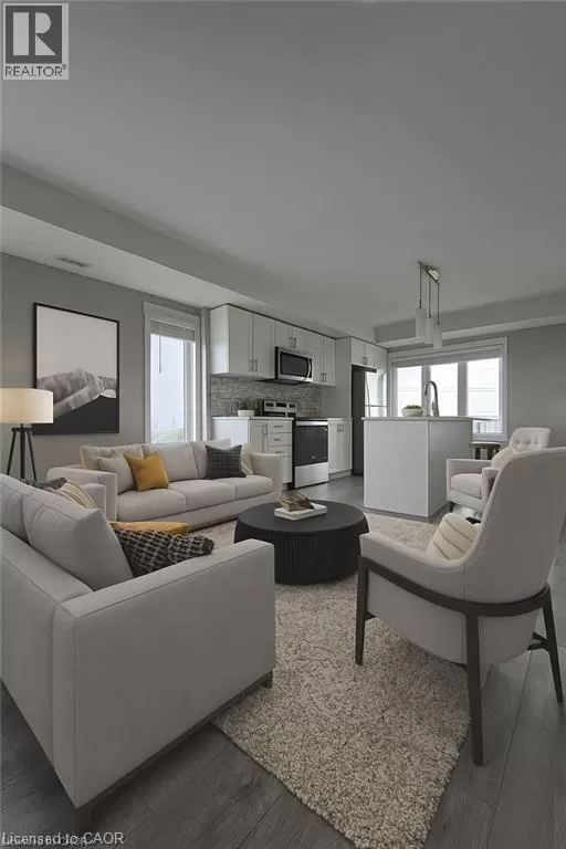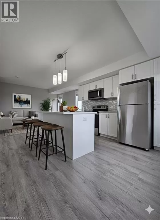 Fischerhallman/ Huron road AVAILABILITY DECEMBER 1ST this modern 3-bedroom, 1.5-bath stacked townhouse located in Kitchenerâs desirable Huron Park community. This bright, carpet-free (except stairs) home offers 1220 sq. ft. of open-concept living space, featuring a spacious living area and a stylish kitchen with quartz countertops, contemporary backsplash, plenty of cabinets, stainless steel appliances, and a quartz island with seating. Step outside to your large private balcony, perfect for relaxing or entertaining. Additional features include main floor laundry, one parking space (#57), and visitor parking. Conveniently located near the Huron Natural Area, RBJ Schlegel Park, schools, shopping, Conestoga College, the 401, and more. Photos have been virtually staged and taken prior to tenant moving in. (id:27476)