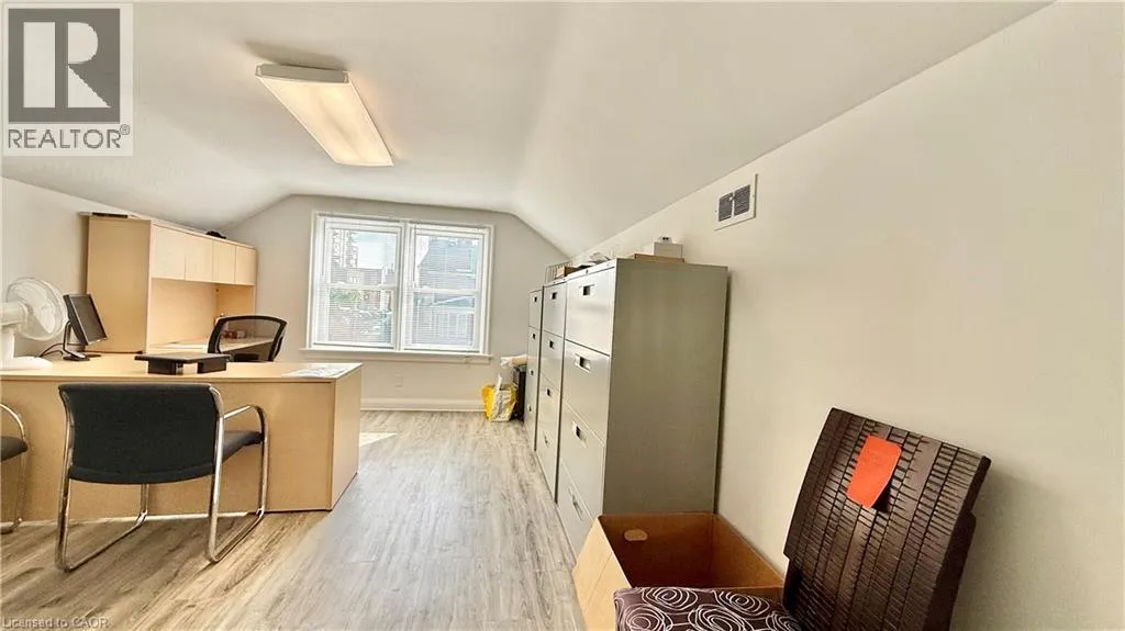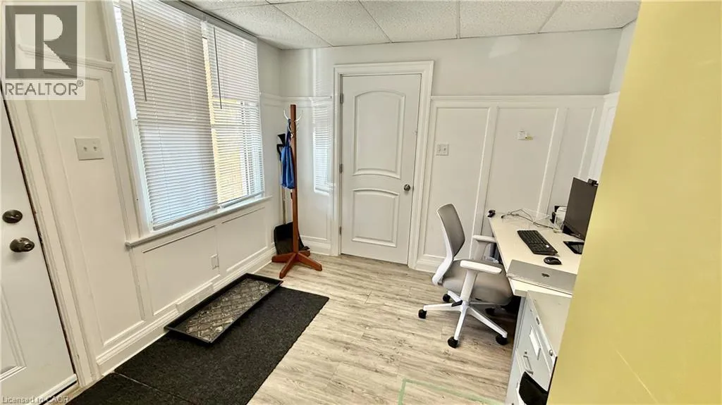 Corner of Roy St near Weber St Discover 1,500 sq. ft. of versatile office space for lease, ideally located just steps from the Kitchener Regional Courthouse and downtown core. The main level offers a welcoming reception area and open office space, while the upper level features two private offices, a boardroom, and a washroom. Four on-site parking spaces included. A perfect opportunity for professional services, legal, financial, or educational uses. (id:27476)