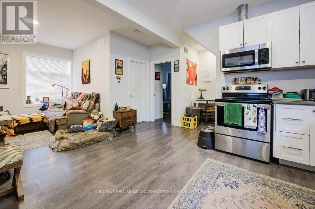 Cross Streets: Between Margaret Ave and Lancaster ST W. ** Directions: St Leger to Louisa. Dont miss this charming and fully renovated duplex, nestled on a generous lot in a convenient and well-connected location. Renovated from top to bottom in 2021, this turnkey property showcases modern updates throughout, including luxury vinyl flooring on both levels, contemporary cabinetry, and fresh, neutral paint tones that create a bright and welcoming atmosphere. The first unit, accessible directly from the driveway, features a well-appointed one-bedroom layout with a stylish 4-piece bathroom, full kitchen, and in-suite laundryideal for a single occupant or couple. The second unit offers even more space, with two bedrooms, a full 4-piece bathroom, its own laundry, a well-equipped kitchen, and the bonus of a spacious second-story loft, perfect for added living space or a home office. Ideally located with easy access to public transit, major highways, and local amenities, this property is a smart choice whether you're looking to offset your mortgage or expand your investment portfolio. A fantastic opportunity to own a beautifully updated duplex in a high-demand area! (id:27476)