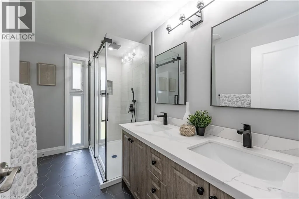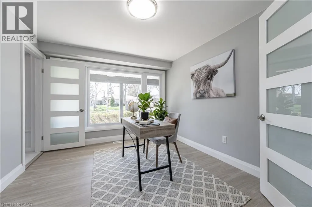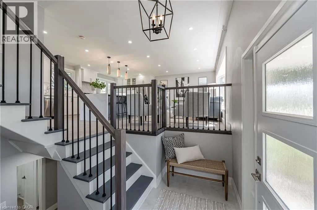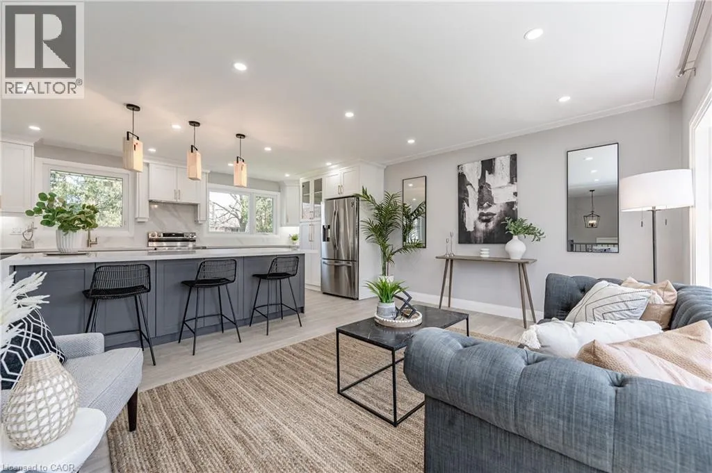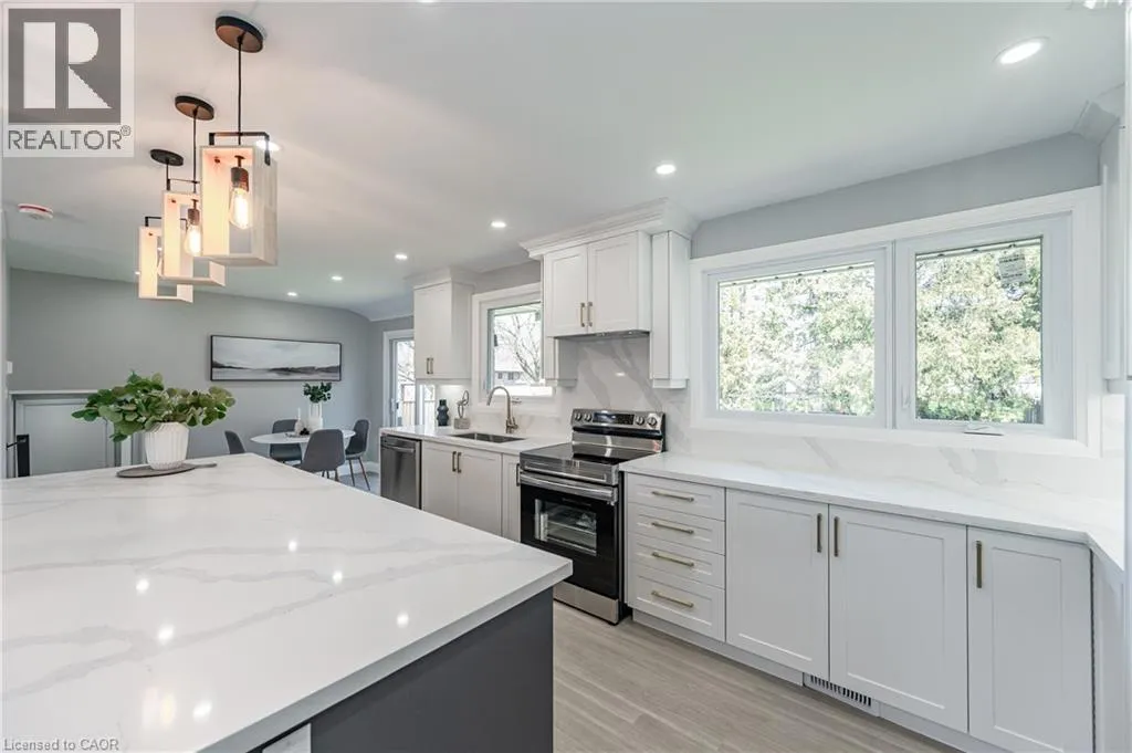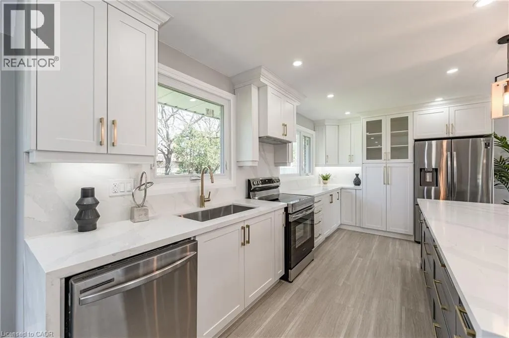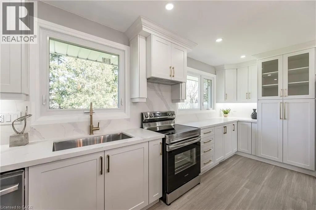 Bradley Drive located between River Road and Franklin St. WELCOME TO 34 BRADLEY! This beautifully renovated side split has been re-imagined and is ready for you to be its next owner. The open concept main floor is an entertainers dreams featuring a huge kitchen with new cabinets, stainless steel appliances, quartz counter tops, and a massive waterfall island. There's also new vinyl flooring throughout and brand new sliding doors leading to your oversized back yard. The bedrooms are all generous in size, and you'll love the new cheater ensuite with glass shower. The lower level has been redesigned to provide a new den/home office, a mud room and full 3pc bathroom with glass shower. As you walk into the basement you'll be greeted with another full bathroom, a large bedroom and a walk-up to the backyard. All windows and doors have been updated, along with new pot lights inside and out, new vinyl sliding, new gutters and a new electrical panel (ALL RENO's and UPDATES COMPLETED In 2022). The home is also located in beautiful Stanley Park, on a mature tree-lined street and close to schools, shopping, HWY 401, HWY 7/8, walking trails, Chicopee Ski Hill, and many other amenities. Call your favourite realtor and book your private showing today. (id:27476)