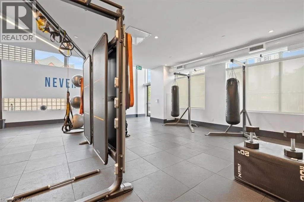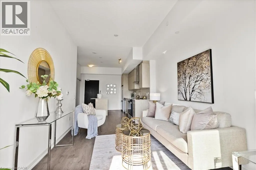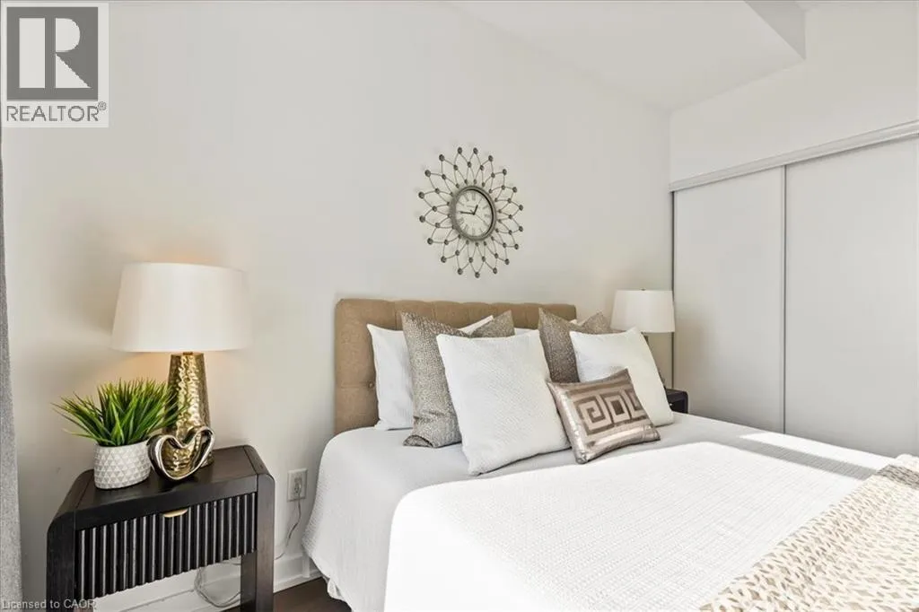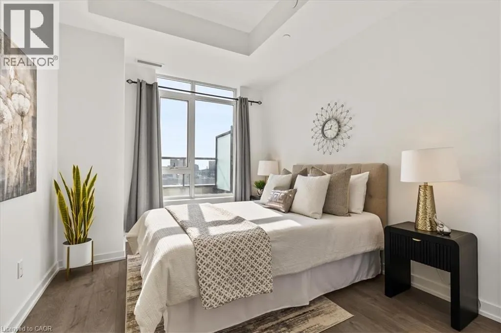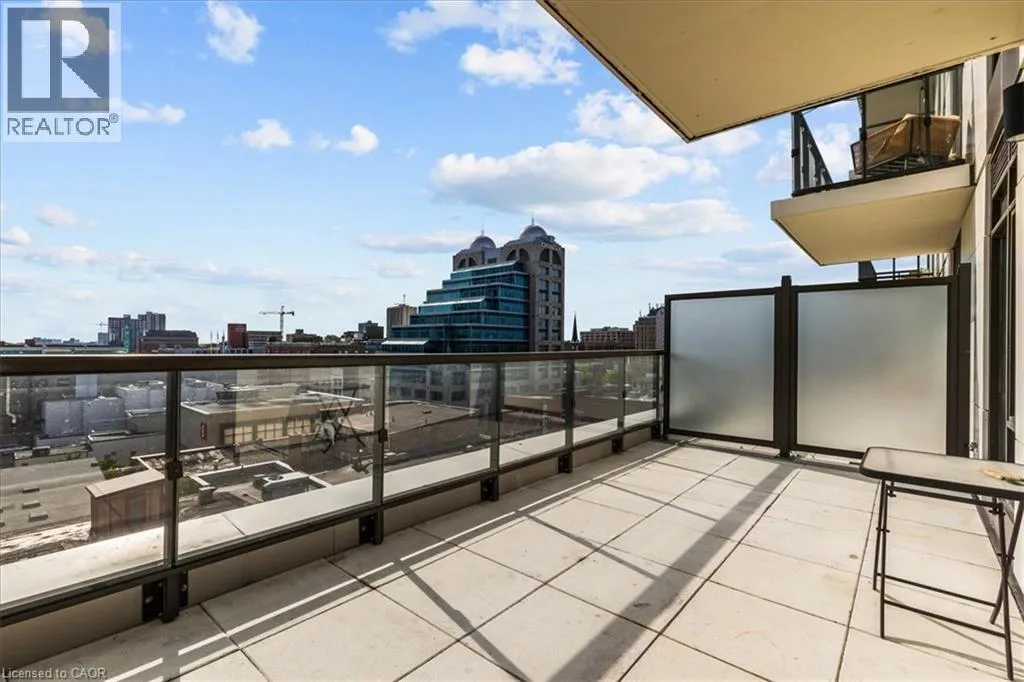 King St to Victoria to Duke Elite DTK condo! 505 maximizes utility of the space and achieves a grand feel with the tall ceilings, open concept layout, and unobstructed easterly Kitchener skyline views. This unit sits at the same level as the roof top patio with BBQ access just down the hall. The eat in kitchen with center island, contemporary cabinetry, stainless steel appliances, and quartz countertops is open to the versatile living room space, which sits parallel to the bedroom and both overlook the 204 sq ft private terrace, bringing the total indoor/outdoor size of the unit to 675 sq ft. Click flooring flows throughout the unit. One of the most successfully integrated condo buildings in the downtown core, reconstructing the John Forsyth Shirt Company, Duke Street level façade & capturing the historic landmark while moving the city forward with urban renewal. The building amenities are impressive; a clean and modern lobby with a full-time concierge service, comfortable sitting spaces and open to the ground level state of the art fitness center, complete with heavy bags and exercise bikes surrounded by windows connecting you to the outdoors. Truly unique is your ability to take your fitness journey outside to the 25th floor, roof top running track while you enjoy the stunning 360-degree views. When its time to relax or entertain larger groups, take advantage of the 5th floor, furnished patio and party room, overlooking the Duke Street forecourt. The building also includes car wash station, dog wash station, and artificial turf dog walk. Short walking distance to Victoria park, charming cafés, popular restaurants, boutique shops, and LRT. Downtown Kitchener is changing to become a popular urban center and now is the time to take advantage. Donât miss out (id:27476)