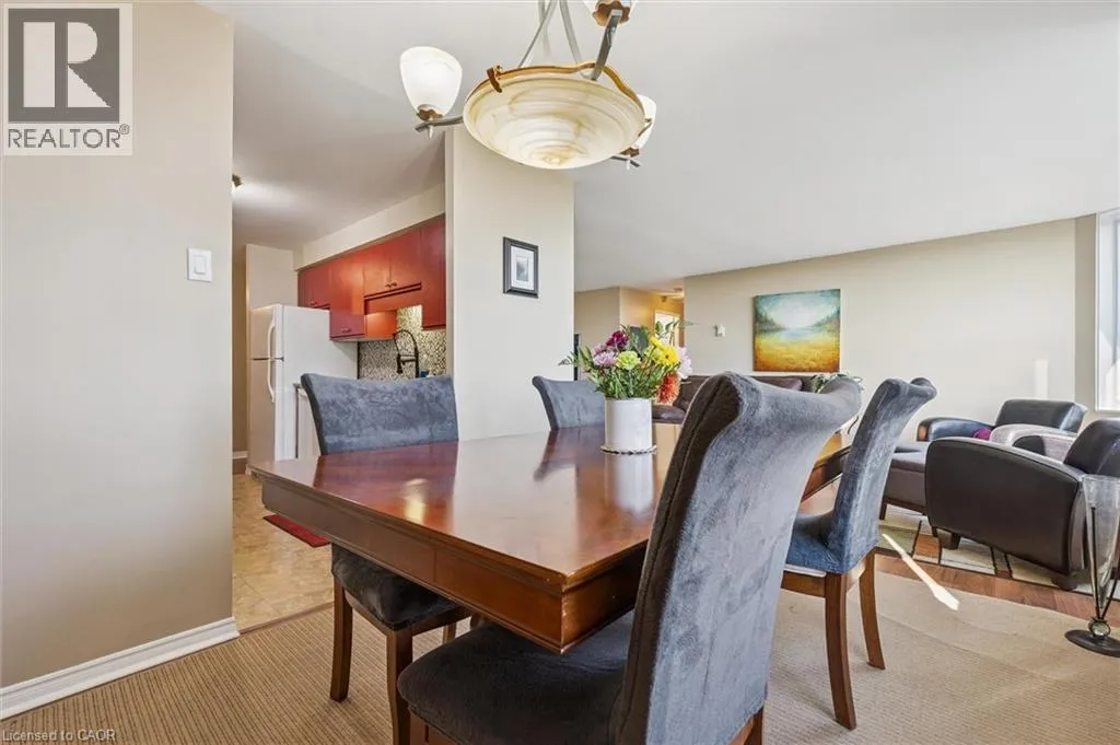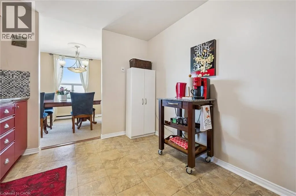 Homer Watson to Pioneer Drive to Green Valley Dr. Ideal 2 bedroom, 2 bath condo with such an incredible view! Over 1100 sq ft of beautifully decorated and lovingly maintained space. Enter this condo with it's huge entry foyer with a large closet which leads to your sunlit kitchen. Kitchen has lots of cabinet space plus room for a table or more storage. Stone counters and tasteful backsplash make this a room you'll love to be in. Next to the kitchen is a good sized dining area which is open to the very spacious living room, making this a great place to entertain. Watch the seasons roll by out the big bay window. The bedroom wing is separate from the living spaces so the bedrooms stay quiet even if someone stays up late to watch TV. The primary bedroom features a walk in closet and private 2 piece bath, while the 2nd large bedroom is just steps from the main 4 piece bathroom and has it's own wall to wall closet. Super convenient in suite laundry room is also home to the on demand water heater (installed Sept 2022) and electronic water softener. Updated easy-care vinyl flooring throughout the living spaces. This suite comes with a covered parking space away from the elements and close to the parking garage entry. The building is well located near a nearer shopping plaza with grocery, pharmacy, lots of restaurant choices and much more. Gorgeous trails by the Grand River right behind the building and lots of parks and play spaces nearby. Only minutes to either the 401 or Expressway and close to transit stop. Book your private viewing today! (id:27476)