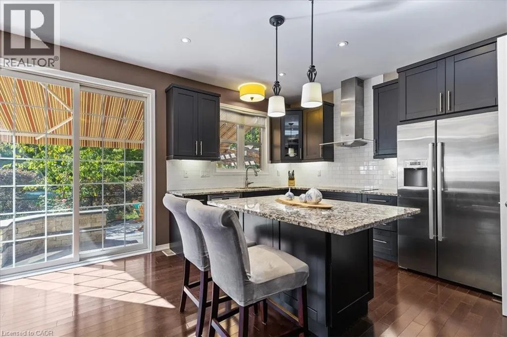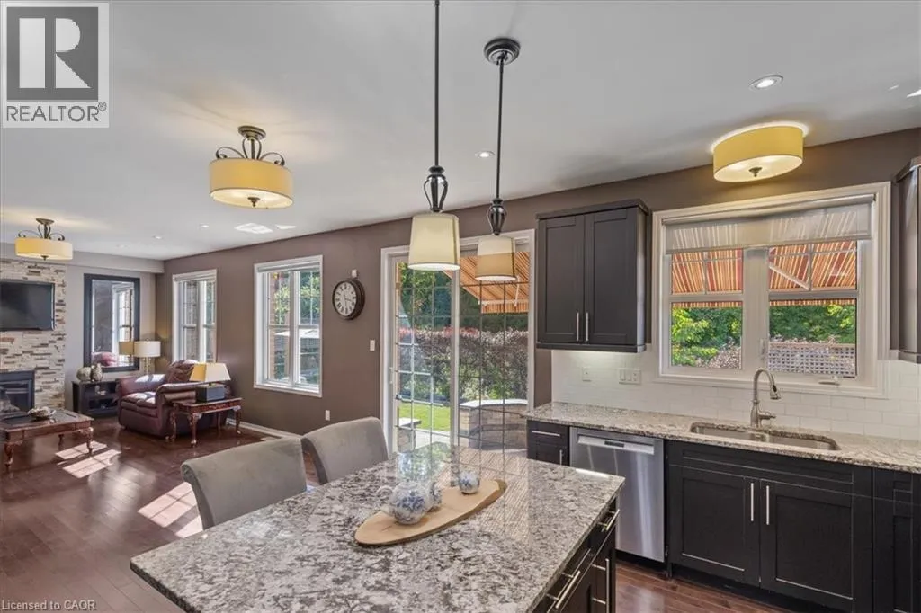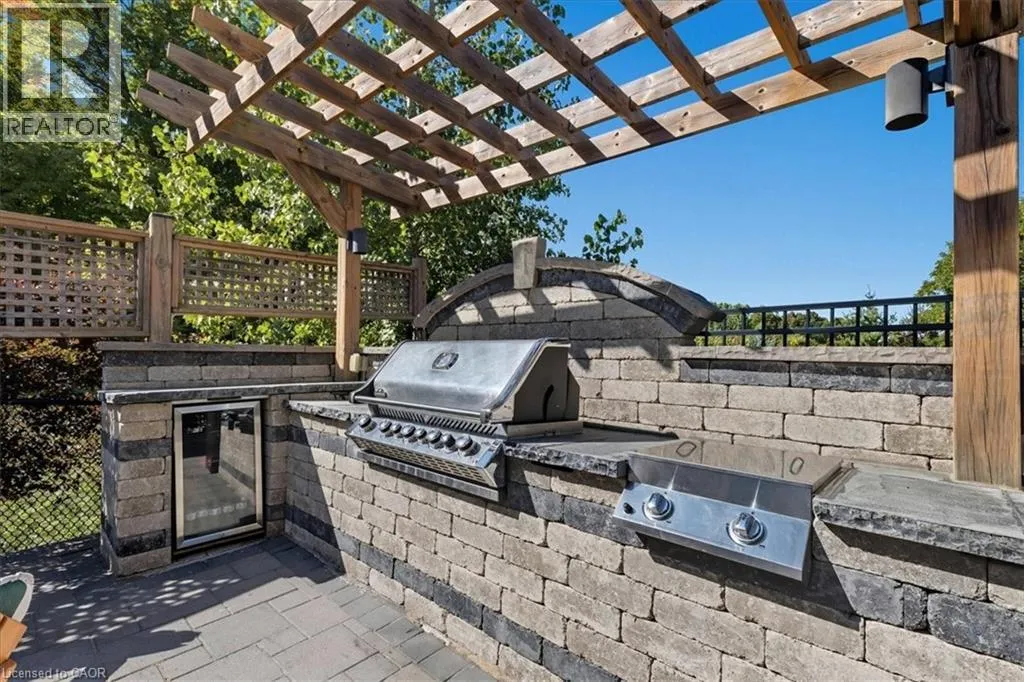 Fischer Hallman to Seabrook LEAGAL DUPLEX! BACKING ONTO GREENSPACE SEPERATE ENTERANCE, EGRESS WINDOWS â LEGAL DUPLEX â MORTGAGE HELPER! UPPER LEVEL 4 BEDROOMS, 4 BATHROOMS, LOWER LEVEL, 3 BEDROOMS, 1 FULL BATHROOM. This exceptional residence offers income potential and multi-generational living, all set on a premium lot backing onto stunning protected greenspace with mature trees. With walking trails at your doorstep and Schlegel Park just steps away, this home blends practicality, lifestyle, and luxury. Inside, 9-foot ceilings and gleaming hardwood floors set the stage for elegance. A dedicated main floor office makes working from home effortless, while the expansive open-concept family room, anchored by a gas fireplace with a striking stone accent wall, invites gatherings that turn into lasting memories. The chef-inspired kitchen, finished with granite countertops throughout, flows seamlessly to the heart of the home and beyondâinto a picturesque backyard with a stone patio and retractable awning. Here, an entertainerâs paradise awaits: a fully equipped outdoor kitchen with fridge, built-in BBQ, outdoor stove, and custom stoneworkâperfect for unforgettable evenings overlooking the treetops. Upstairs, four generously sized bedrooms, each with its own ensuite, provide comfort and privacy for the entire family. The finished lower level expands the homeâs versatility as a LEGAL DUPLEX with a SEPERTANCE ENTRANCE TO THE IN-LAW SUITE WITH EGRESS WINDOWS. This self-contained suite features three bedrooms, a modern open-concept kitchen with granite countertops, luxury flooring, and bright, spacious designâideal as a mortgage helper, rental income, or a private retreat for extended family. Every corner of this home speaks to quality and care, from the granite finishes carried throughout to the thoughtful double landscaping. More than a house, itâs a place where family traditions are built, laughter fills the rooms, and every day feels like home. Some photos virtually staged (id:27476)