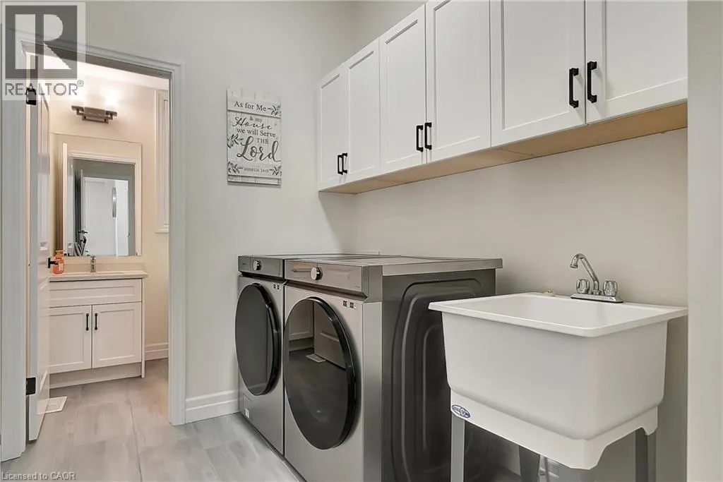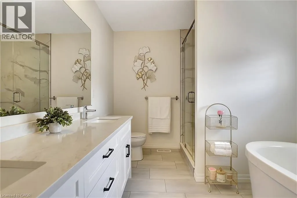 Lackner to Otterbein to Dunnigan Court Welcome to this stunning 5+1bedroom, 4+1bathroom legal duplex in the Kitchener's newest family subdivision. Nestled on a quiet court, this like-new home has been beautifully upgraded by the current owners to offer incredible value and versatility. Featuring over 3800 sqft of finished space including the fully finished legal basement, with private side entrance-perfect for rental income or multigenerational living. The main floor offers a bright, open-concept layout with tall 9' ceilings, formal dining room and a convenient laundry/mudroom finished with cabinetry to maximize the usable storage space, providing access to the garage and powder room. The home features large windows fitted with California shutters, giving you maximum brightness control. The spacious living room and the beautifully upgraded kitchen are the heart of the home, featuring top-of-the-line Bosch SS appliances (with extended warranty),quartz countertops, walk-in pantry and another closet for your convenience, offering abundant space. The oversized master bedroom has a walk-in closet, an additional closet and a luxury ensuite boasting a freestanding tub and a walk-in glass shower. Four additional spacious bedrooms and two bathrooms complete the second floor. The basement unit was completed with permits and features a stylish open-concept design, a generously sized bedroom, in-floor heated 4-piece bathroom, second laundry hook up, and private side entrance. More space awaits outdoors in the fully fenced backyard, complete with an exposed aggregate concrete patio, ideal for relaxing or entertaining. The oversized concrete triple driveway and exposed aggregate walkway add to the homeâs curb appeal, leading to both the front entrance and all the way to the side of the home and backyard. Located in a growing, family-friendly neighborhood close to parks, trails, schools, shopping, skiing & major amenities, this is a rare opportunity to own a move-in-ready home that truly has it all. Don't miss out! (id:27476)