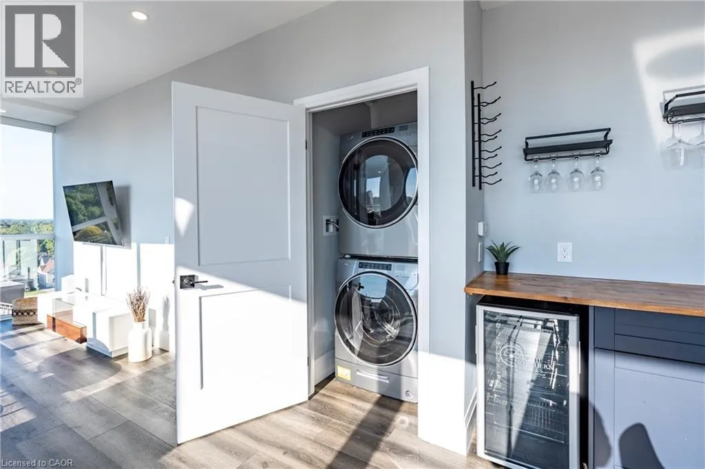 Charles to Gaukel This 797 total square foot one-bedroom, one-bathroom corner unit offers modern design, high-end finishes, and an open-concept layout filled with natural light. Featuring 9-foot ceilings, floor-to-ceiling windows, custom closets, upgraded appliances, in-suite laundry, and a private balcony with stunning views of Victoria Park, this home has been elevated with over $42,000 in upgrades. One underground parking space and a storage locker are included. The building provides exceptional amenities including a concierge, a social lounge with catering kitchen, a landscaped seventh-floor terrace, a fully equipped fitness centre, yoga and wellness rooms, and secure vehicle and bicycle parking. Located in the heart of downtown, this condo is just steps to Victoria Park, community festivals, restaurants, cafés, shopping, Google, top universities and colleges, and the LRT. Perfect for young professionals, first-time homebuyers, or investors, this property combines convenience, style, and unmatched urban living. (id:27476)
