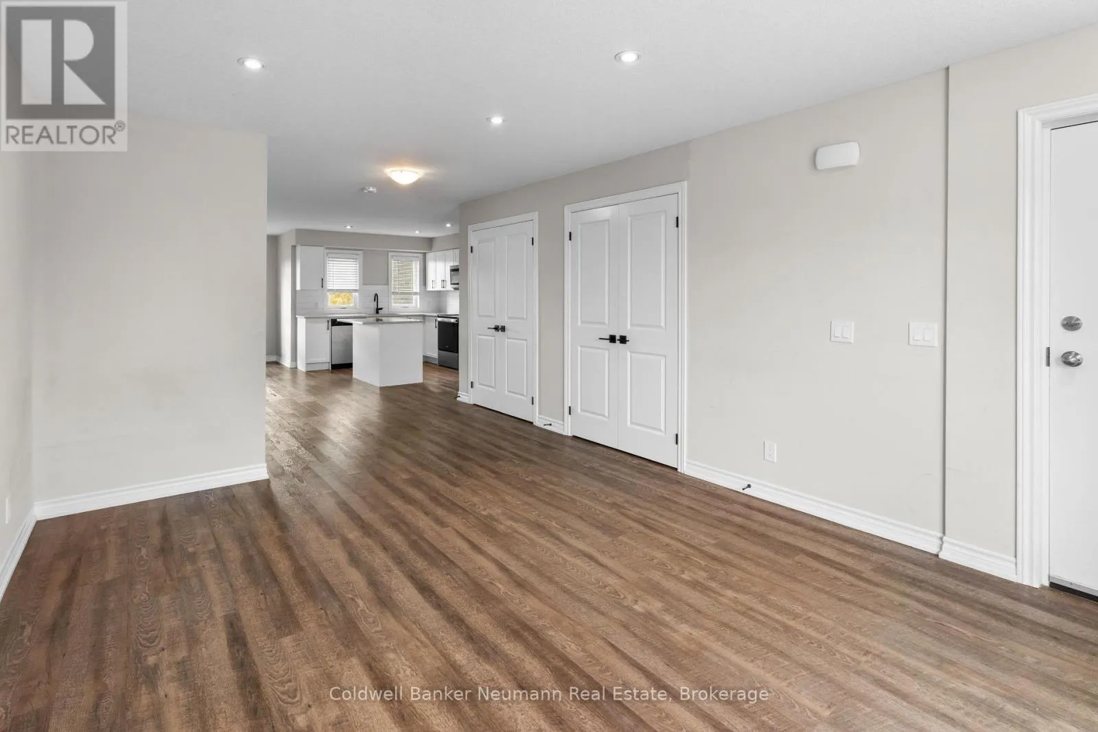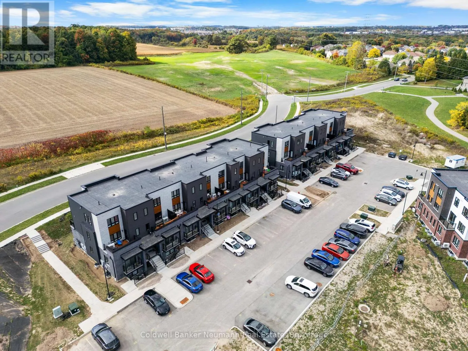 OFF OF ROBERT FERRIE DRIVE ON TO CHAPEL HILL DRIVE Welcome to 235 Chapel Hill Drive #23, a modern stacked townhome in the sought-after Doon South community. Built just 3 years ago, this stylish home features 3 spacious bedrooms, 2.5 upgraded bathrooms, and a thoughtfully designed open-concept layout.Enjoy a completely carpet-free interior across both levels, with sleek vinyl flooring throughout. The bright living room is enhanced with pot lights, while the chef-inspired kitchen offers quartz countertops, a large island, upgraded soft-close cabinetry, subway tile backsplash, and stainless steel appliances.Perfectly located just minutes from Highway 401, Conestoga College, schools, parks, scenic trails, shopping, transit, and everyday amenities with city bus service nearby for added convenience.Complete with one parking space, this home blends modern finishes with practical comfort ideal for todays lifestyle. **Has Been Freshly Painted** (id:27476)