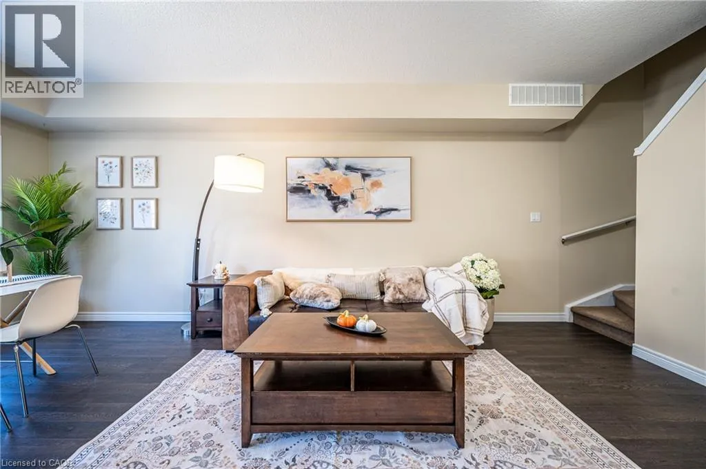 Off Fairway Rd North, off Eden Oak Trail Ideal Back-to-Back Townhouse in a Prime Location â Perfect for Living or Investment!?This modern home offers 2 bedrooms, 1.5 bathrooms, and a spacious, open-concept living room that extends to a private balconyâideal for gatherings, BBQs, or simply relaxing. Conveniently located just minutes from Highway 8 and Highway 401, with easy access to Fairview Mall, Costco, the Grand River, and Chicopee Ski Hill. Surrounded by amenities and new developments, this area offers strong growth and rental potential. The stylish kitchen features quartz countertops, a designer backsplash, and stainless steel appliances, seamlessly paired with modern flooring and cabinetry. Upstairs, youâll find 2 well-sized bedrooms, a full bathroom, and in-unit laundry. The primary bedroom includes a walk-in closet for extra comfort. A single-car garage adds convenience with both parking and storage space. Whether youâre a first-time buyer, a young family, or an investor seeking a property with great rental demand, this home is an excellent choice! (id:27476)