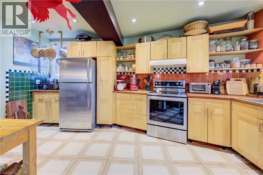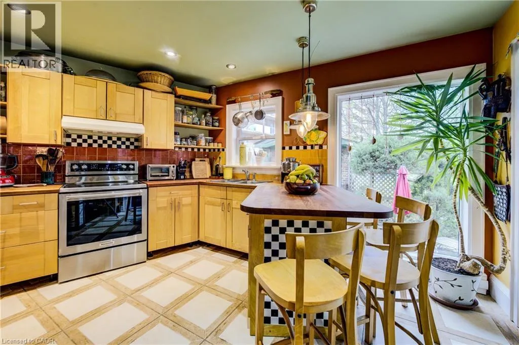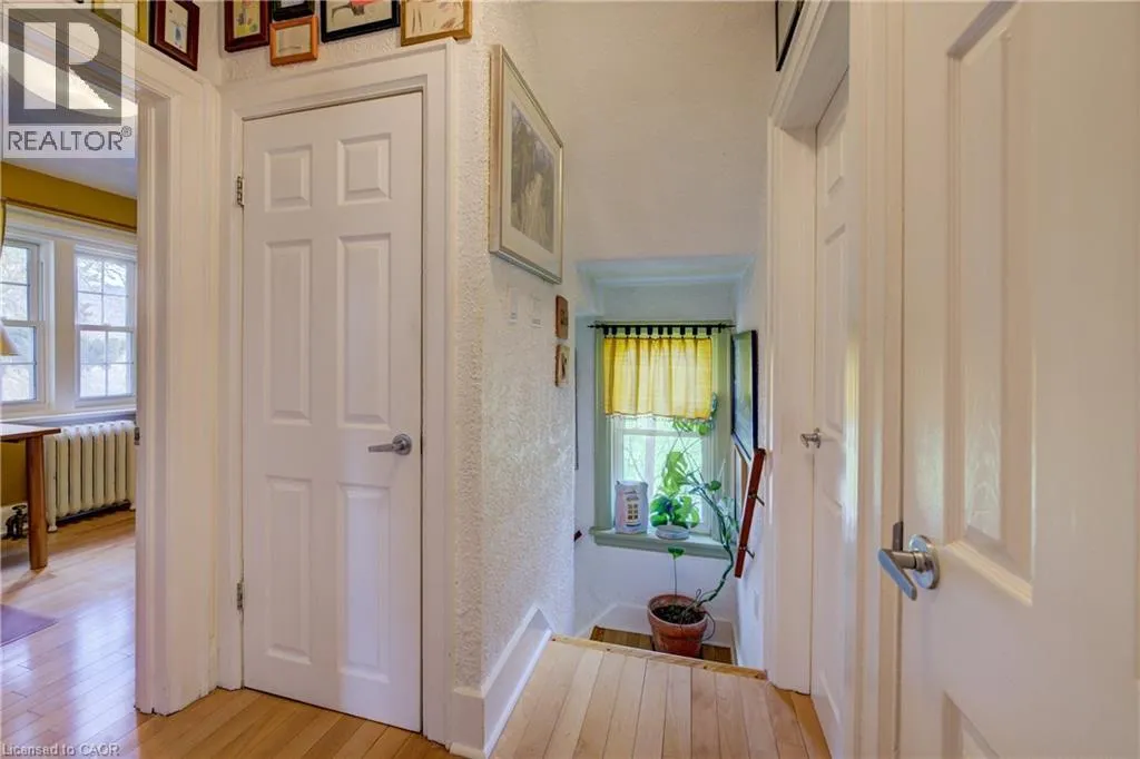 South on Union off of Park St Welcome to Old Westmount and Belmont Village â a beautifully updated home that blends timeless charm with modern upgrades. This spacious residence offers plenty of room for family living and entertaining. Step into a warm and inviting main floor featuring elegant flooring, a cozy wood-burning fireplace, and a stunning kitchen addition with direct walkout to a covered porch â perfect for enjoying the fully treed backyard of your dreams. The beautifully landscaped front and back gardens are equipped with a timed irrigation system. The second floor boasts a well-appointed primary bedroom, a family bath, two additional bedrooms, and hallway access to a fully finished loft â ideal as a recreation space or an extra bedroom. The basement offers excellent potential for a small business, with a private side entrance, a recreation area, and a flexible office or additional bedroom. Also featured are a cedar sauna, a cold room, and ample storage. Additional updates include a new wall mount furnace for the radiant heat, fully updated wiring and electrical systems, and improved insulation for energy efficiency. Enjoy timeless features such as a covered front entrance and original character details â all nestled in Old Westmount, just a short stroll to Belmont Village, Vincenzoâs and uptown Waterloo. This one-of-a-kind home offers comfort, space, and style â inside and out. (id:27476)