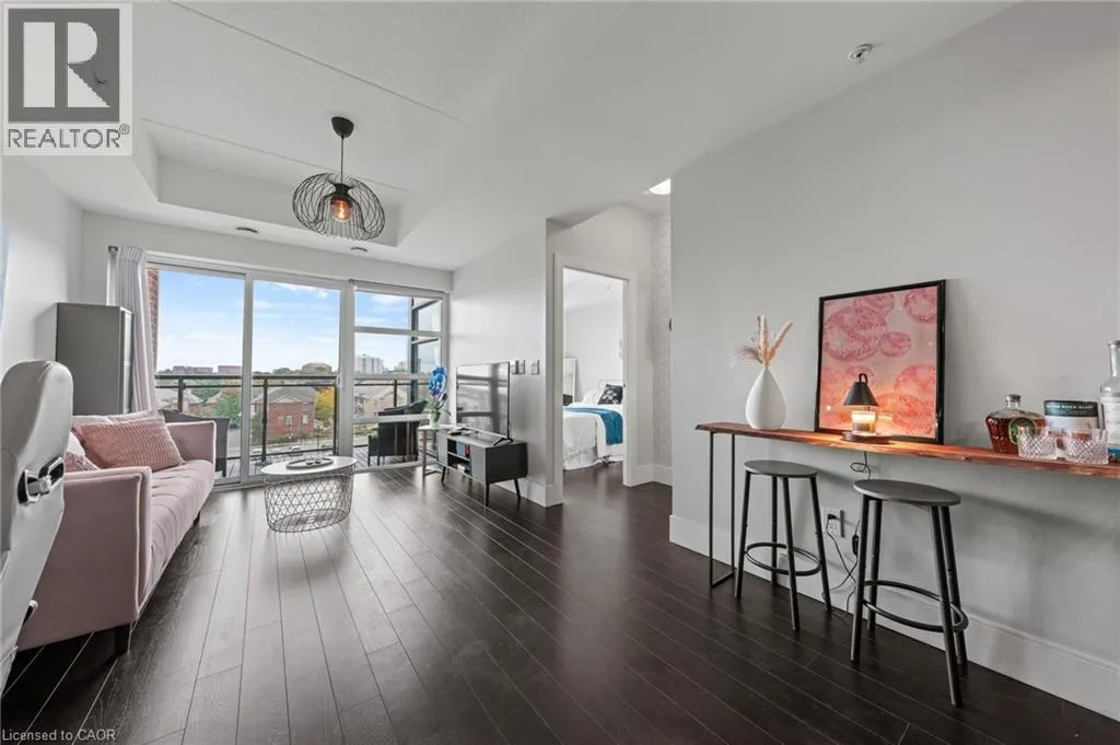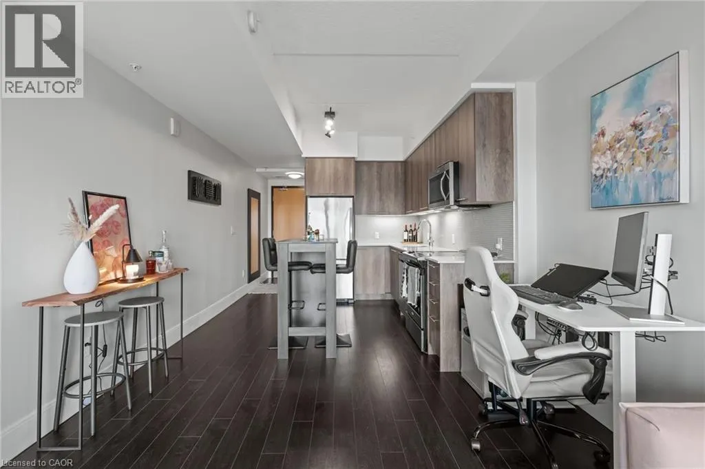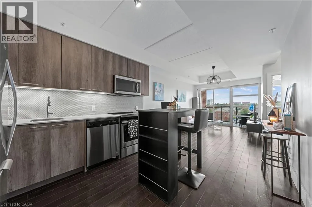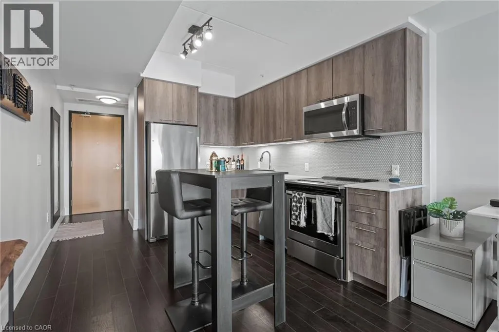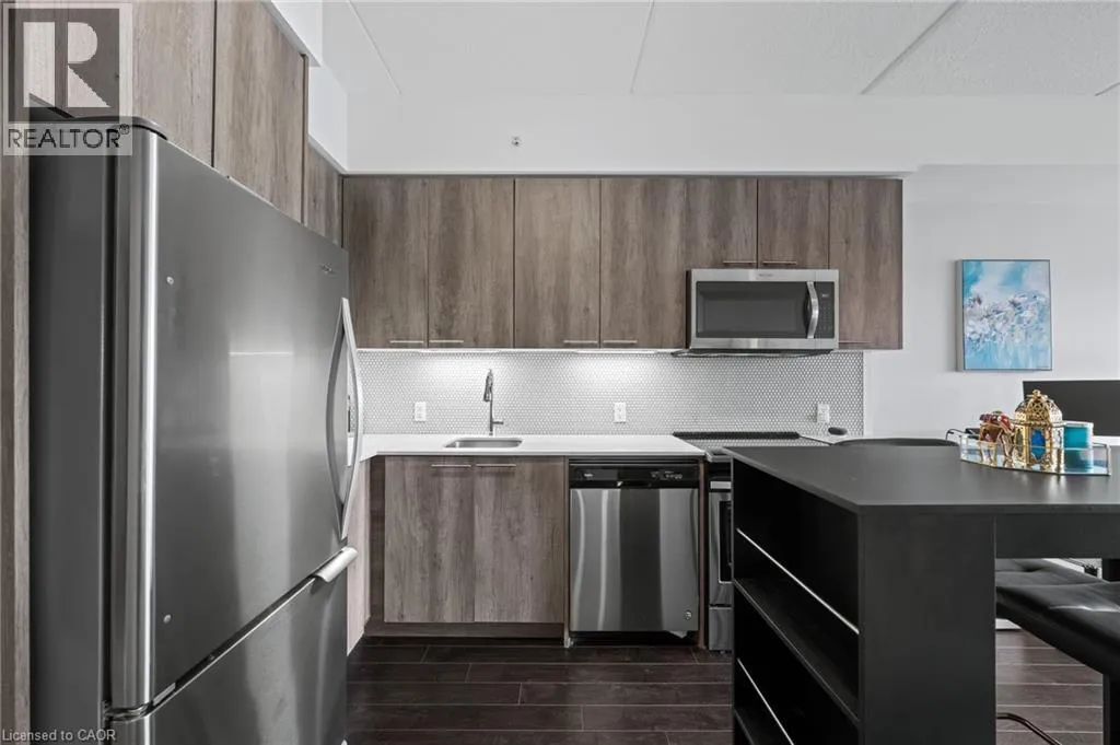 St Leger St & Wellington St N Fabulous 1 bedroom 1 bathroom condo with floor to ceiling windows giving you tons of natural light all day. This very popular and well maintained building is in a fabulous and convenient location between downtown Kitchener and uptown Waterloo, in the Mount Hope neighbourhood and close to the Google office. This nice clean, move in ready, carpet free condo really is a must see, nice open concept bright living area, well equipped kitchen with stainless appliances included, a spacious balcony with amazing views, a nice bright bedroom, a 4 piece bathroom, in suite laundry with washer and dryer included. This condo also benefits from having private underground secure parking and a storage locker, and the condo is very efficient with its geothermal heating and cooling system. A great condo for the first time buyer looking to get into the market or a very low maintenance unit for the savvy real estate investor. (id:27476)