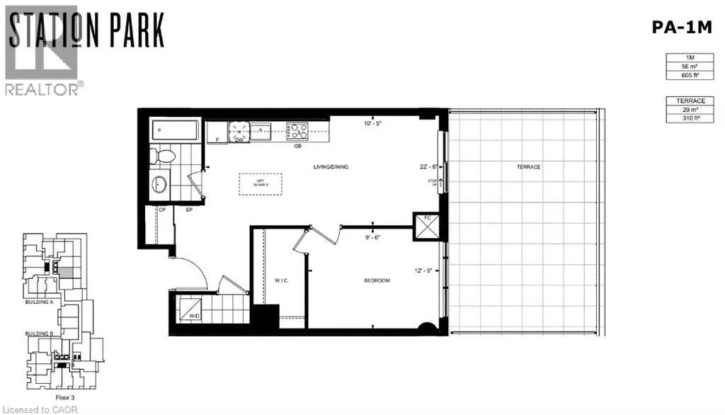 King & Wellington Sts - Across from Google Centrally located in the Innovation District, this One bedroom, One bath Podium suite features 10 ft ceilings, over 600 square feet interior living space and a large private terrace. Enjoy entertaining your guests or lounging in this spacious outdoor living space. Unit comes with one parking spot, locker & upgraded finishes including SS appliances. Station Park is home to some of the most unique amenities known to a local development, variety of luxury amenity spaces for all to enjoy. Amenities include: Two-lane Bowling Alley with lounge, Premier Lounge Area with Bar, Pool Table and Foosball, Private Hydro-pool Swim Spa & Hot Tub, GYM, Yoga/Pilates Studio & Peloton Studio , Dog Washing Station / Pet Spa, Landscaped Outdoor Terrace with Cabana Seating and BBQâs, Concierge Desk for Resident Support, Private bookable Dining Room with Kitchen Appliances, Dining Table and Lounge Chairs, Snaile Mail: A Smart Parcel Locker System for secure parcel and food delivery service. Many other indoor/outdoor amenities planned for the future such as an outdoor skating rink and ground floor restaurants!!!! (id:27476)