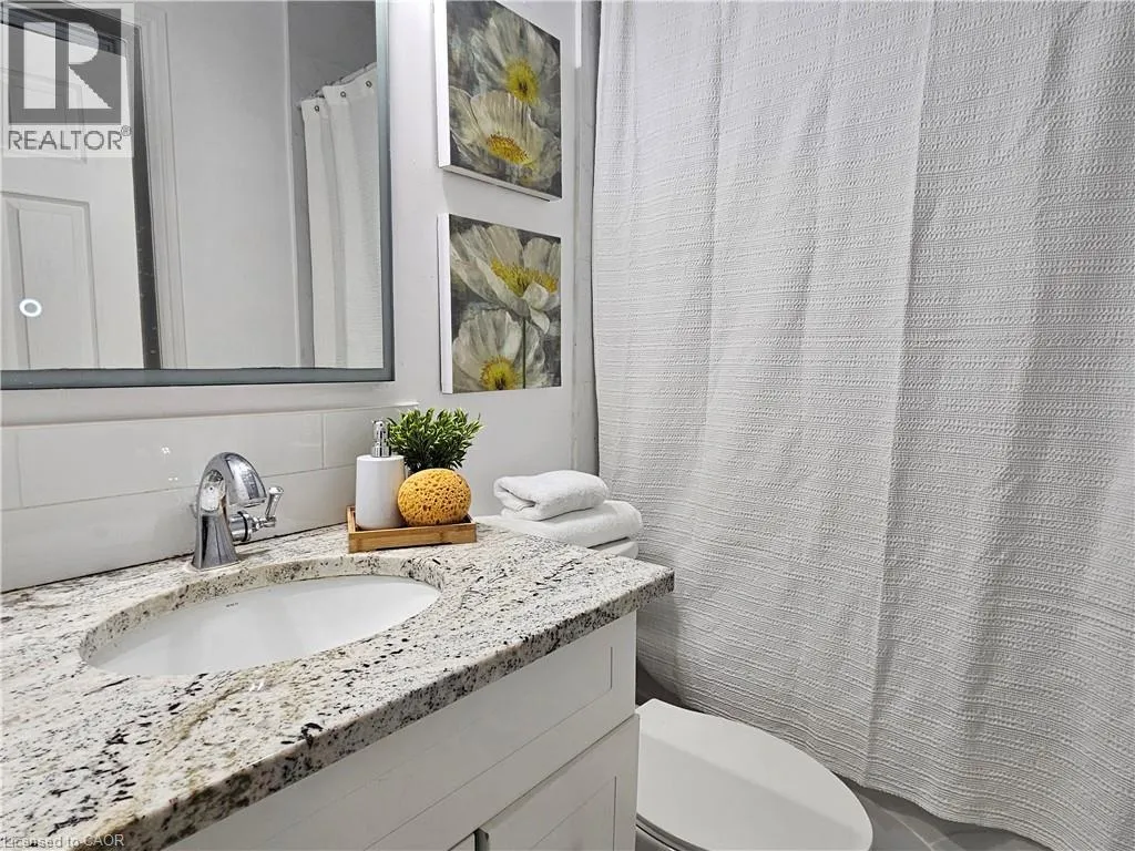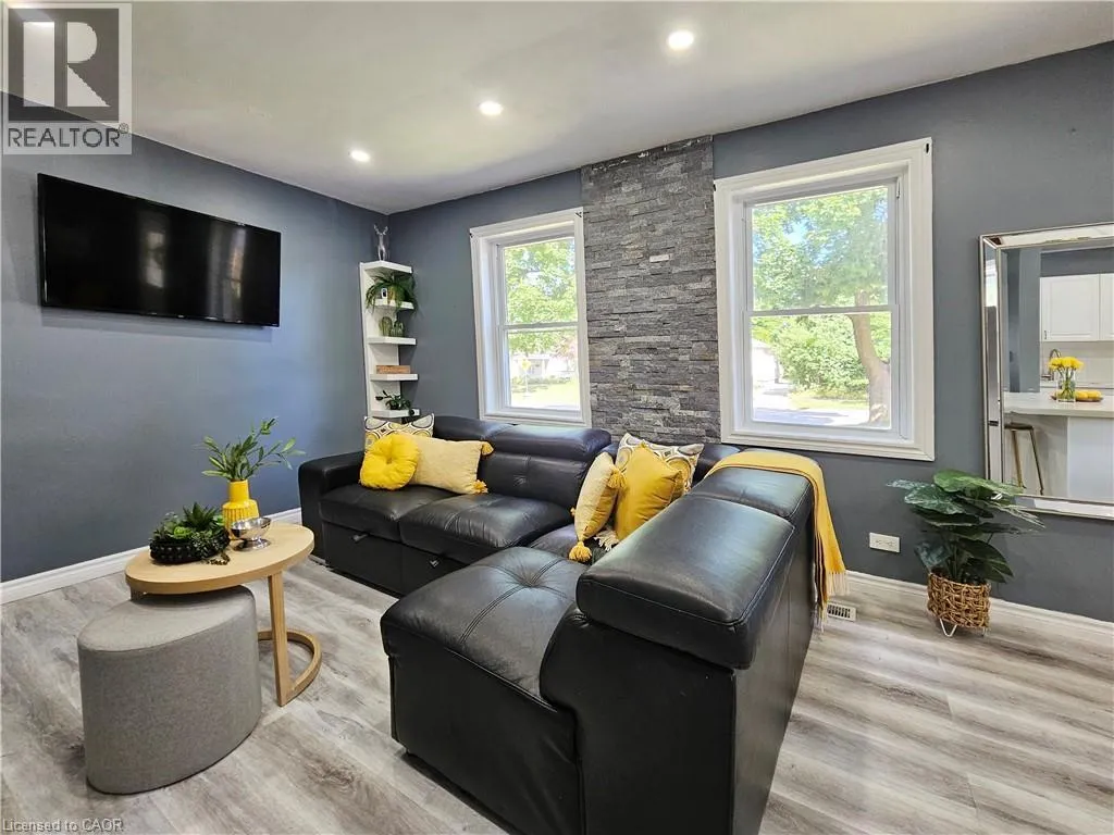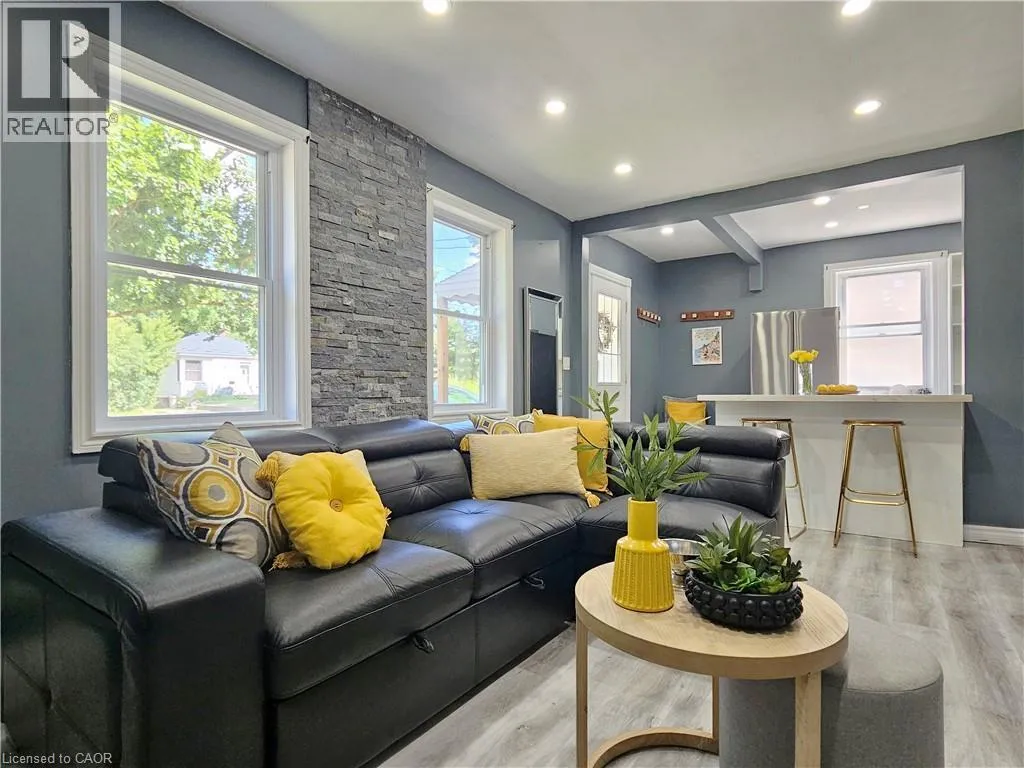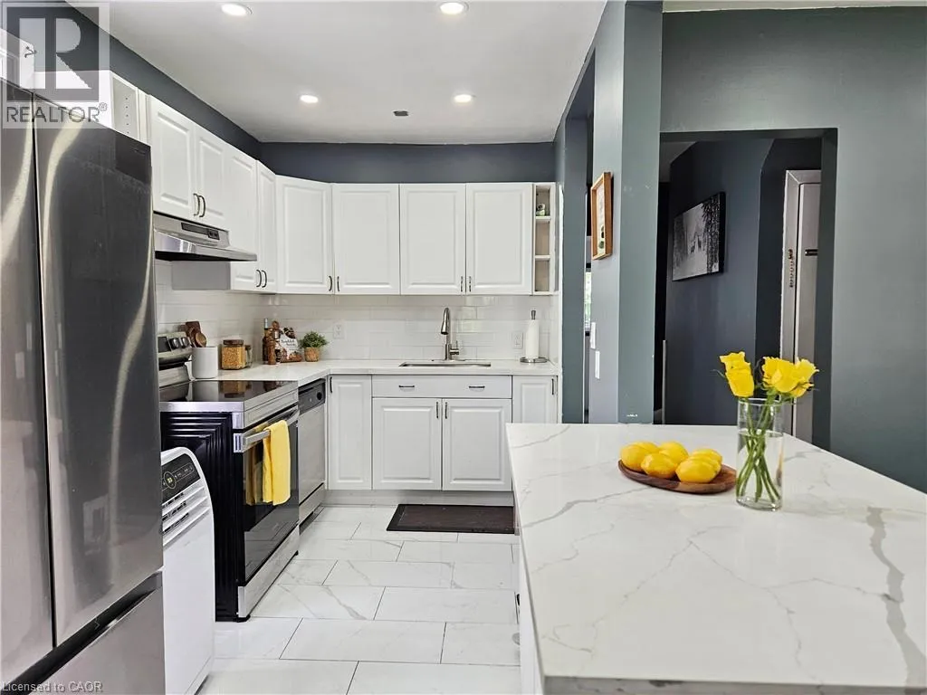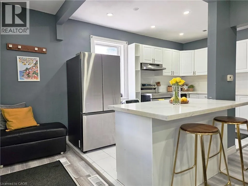 STIRLING AVE S TO ST CLAIR Semi detached home with a main floor primary bedroom in Kitchenerâs Forest Hill neighbourhood.. The open concept main level offers an updated kitchen with stainless steel appliances, quartz countertops, quartz island and modern potlights. The kitchen seamlessly connects to the bright living room where youâll enjoy entertaining and relaxing. A rare main floor primary bedroom expands the appeal, and this level also offers a 4-piece bathroom and handy mudroom at the rear of the home. Upstairs youâll find two additional bedrooms, the larger of which overlooks the quiet street below. The finished basement adds more living space courtesy of a large rec-room with a stylish feature wall. Thereâs also a 2-piece bathroom/laundry room down here as well for added convenience. The private and fully fenced backyard offers a gazebo, seating area and greenspace. With a versatile location close to all amenities and including bonuses like close proximity to St. Maryâs hospital and to the highway, the benefits speak for themselves. Donât sleep on this great opportunity! (id:27476)