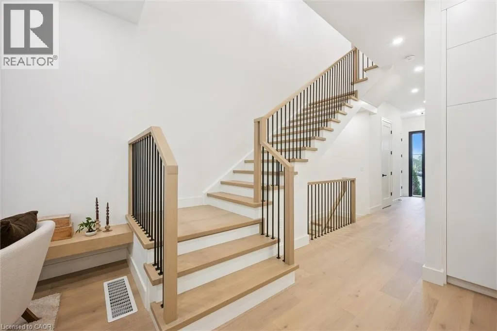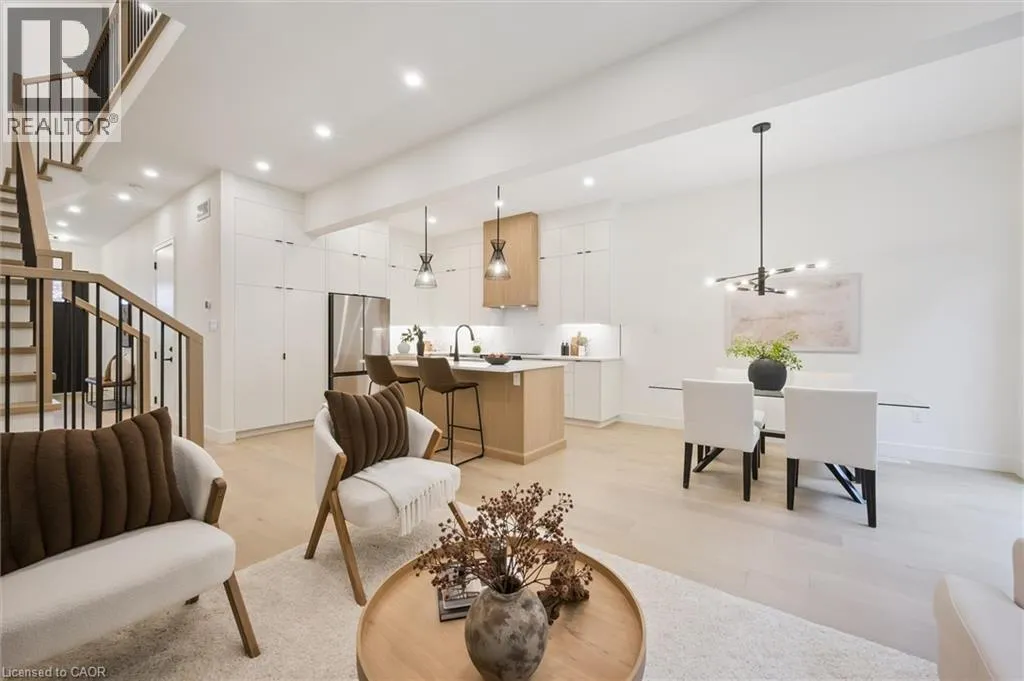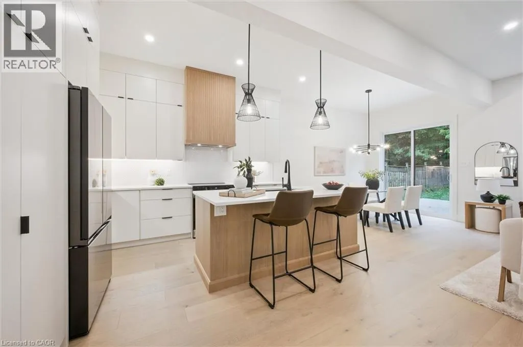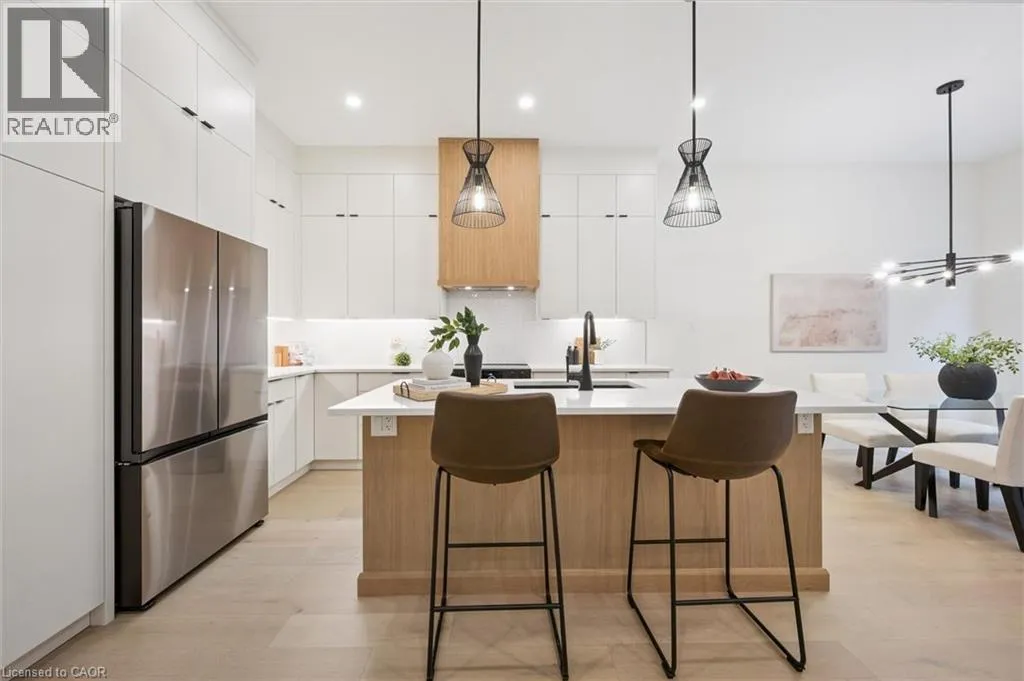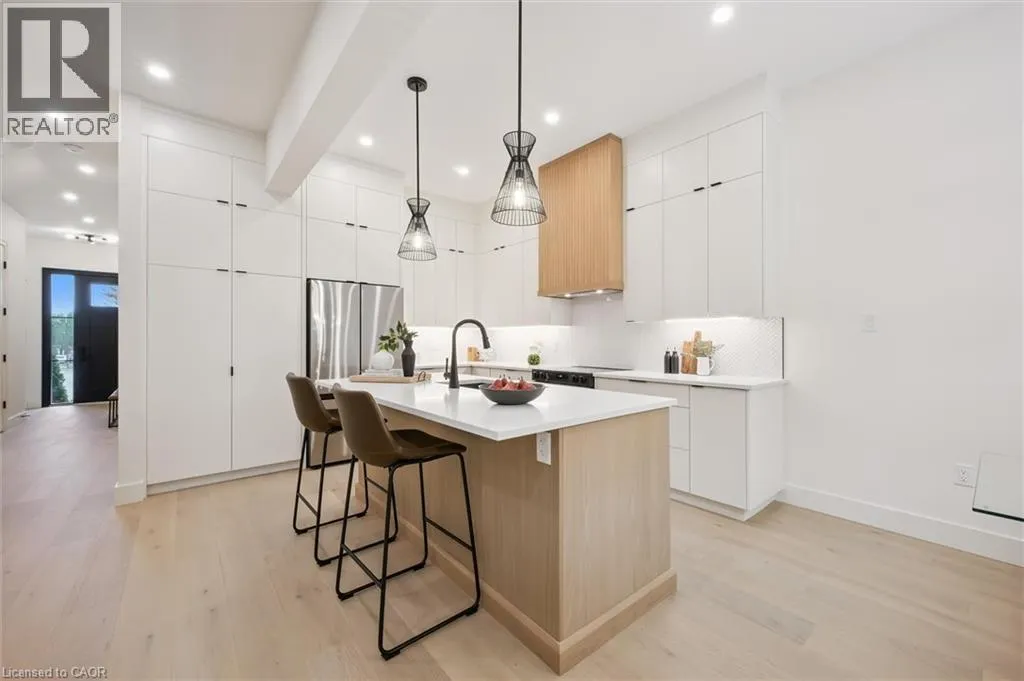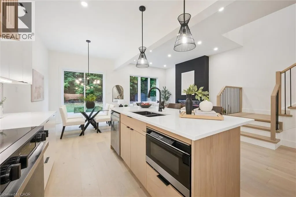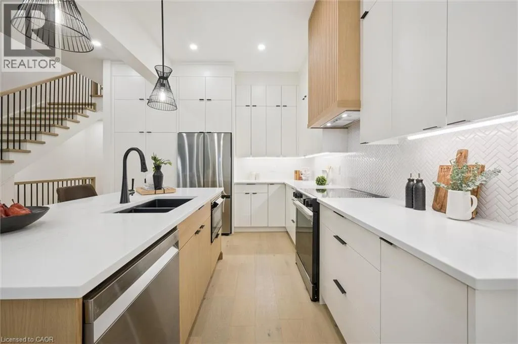 Ottawa St S to David Bergey Drive to Peach Blossom Court THE ONE that will take you by surprise - discover refined living in this beautifully appointed semi-detached home in Kitchener, showcasing over 2300 sf of elegantly designed living space. With 4 bedrooms and 4 bathrooms, this home blends modern sophistication with comfort, offering a lifestyle of both luxury and ease. The heart of this home is the gourmet kitchen, featuring custom Chervin-built cabinetry, premium fixtures, and a seamless flow into the dining and living areasâperfect for both everyday living and entertaining. Oversized windows frame serene views of private green space, bringing natural light and tranquility indoors. Upstairs, discover a spacious primary retreat with a spa-inspired ensuite featuring a double-vanity & walk-in closet Additional spacious bedrooms provide flexibility for family, guests, or a private home office, while the finished lower level offers even more living space. Step outside to your own sanctuaryâan expansive deep lot backing onto lush green space adorned with majestic maple trees. Whether enjoying morning coffee or evening gatherings, this tranquil backdrop provides year-round beauty and privacy. Ideally located near prestigious schools, vibrant shopping including the Sunrise Centre, dining, and recreation, this home seamlessly combines convenience, elegance, and natural charmâa rare offering in one of Kitchenerâs most desirable settings. Donât miss the opportunity to own this one-of-a-kind home â schedule your showing today! (id:27476)