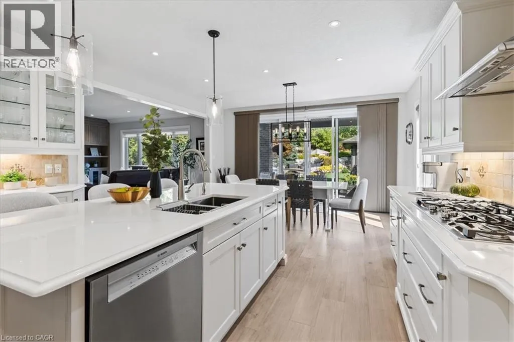 Wabanaki Dr to Hidden Valley Rd Welcome to 237 River Birchâ in prestigious Hidden Valley. This custom home combines luxury finishings with warm, inviting spaces set off by a stunning landscape that surrounds the home. Inside this gorgeous estate home, find newly installed white maple engineered hardwood flowing seamlessly throughout the main and second floors, setting a bright but elegant tone.The chefâs kitchen showcases fresh and elegant quartz countertops, high-end appliances, and a custom quartz dining table in the eat-in area. The adjacent living room features a new stone wrapped fireplace with custom built-ins and panoramic views of the breathtaking backyard. Upstairs, the primary suite offers a spacious custom walk-in closet and a newly updated spa-style en-suite. Two additional bedrooms each enjoy their own walk-in closets and private ensuites. The lower level, warmed by in-floor heating, provides a versatile space: an ample rec room with a fireplace, a craft or game area, a gym with direct garage access, and a fourth bedroom. The extra-wide, high-ceiling double garage easily accommodates three vehicles in tandem with generous ceiling height-ideal for a car lift and ample built in storage. Step outside to your covered deck to view the private gardens which cascade down Hidden Valleyâs glacial esker. The meticulously landscaped grounds include a tranquil brook, pristine saltwater pool, covered deck, pavilion, and a built-in gas BBQ with a large outdoor firepitâperfect for entertaining or quiet evenings. Modern sophistication meets everyday comfortâwelcome home to 237 River Birch (id:27476)