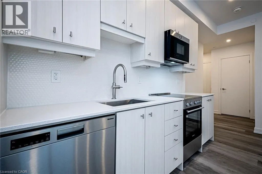 King and Wellington Sts - Across from Google Welcome to Station Park in Kitchener, where modern comfort meets urban convenience. Nestled within this vibrant community, we present a remarkable 2-bedroom unit with 2 PARKING SPACES INCLUDED that redefines contemporary living. This spacious and thoughtfully designed residence offers two well appointed bedrooms Upon entering, you'll be greeted by an open-concept layout that seamlessly integrates the living, dining, and kitchen areas. Natural light streams in through large windows, illuminating the interior and highlighting the elegant finishes that adorn the space. The kitchen boasts sleek countertops, stainless steel appliances, and ample cabinetry, creating an inviting environment for culinary adventures. The corner Primary bedroom provides a tranquil retreat, complete with an en-suite bathroom for added privacy. A second bedroom offers versatility â perfect for guests, a home office, or even a cozy reading nook. Forget the stress of searching for parking â you'll have 2 secure spots waiting for you whenever you return home. Outside your unit, Station Park offers an array of amenities to enrich your lifestyle. Whether you're enjoying the rooftop terrace, taking a refreshing dip in the hydro swim pools, or working out in the fitness centre, you'll find plenty of ways to unwind and connect with your neighbours. The building's prime location ensures easy access to public transportation, local shops, dining establishments, and entertainment options, making every day an opportunity to explore and enjoy the best of Kitchener. (id:27476)