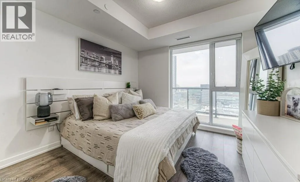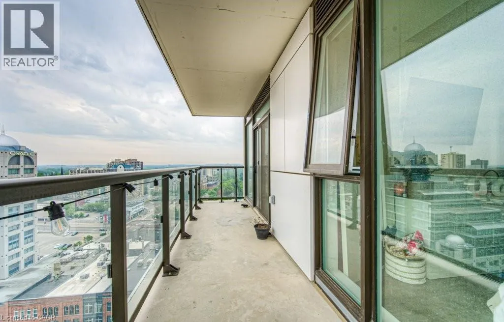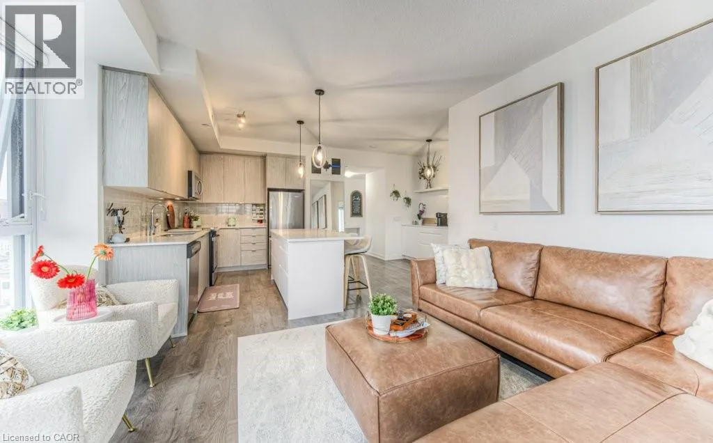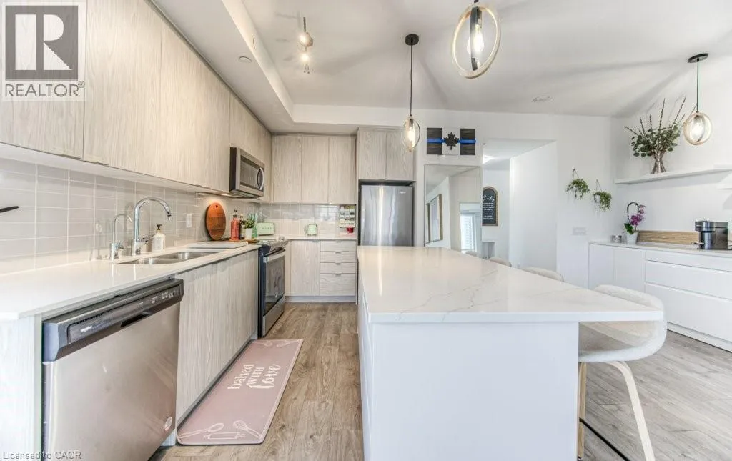 Duke/Young Street Just nominated for City of Kitchener 's Great Places and People's Choice Award!Welcome to upscale urban living at its finest in this stunning 2-bedroom, 2-bathroom corner unit on the 13th floor of the sought-after Young Condos in downtown Kitchener. MANY UPGRADES/ great VALUE!! Flooded with natural light and showcasing breathtaking panoramic views, this meticulously upgraded suite offers a unique blend of elegance, comfort, and functionality. Step inside to discover a thoughtfully designed open-concept layout featuring high-end finishes throughout. The heart of the home is a custom OVERSIZED kitchen island with gleaming quartz countertops, perfect for entertaining .The kitchen is equipped with premium stainless steel appliances, a Culligan water filtration system, and built-in furniture that enhances both style and storage. Both bedrooms are generously sized, with the primary bedroom featuring a private ensuite. An in-suite washer and dryer add everyday convenience. Additional highlights include:one underground parking spot, private storage locker and bike rack access. Young Condos offers an array of modern amenities, including a fitness center, separate yoga room, rooftop terrace with BBQ, resident lounge, car and pet wash and more â all in a vibrant, walkable location near shopping, restaurants, the LRT, Google and Victoria Park. This is not just a condo â itâs a lifestyle. (id:27476)