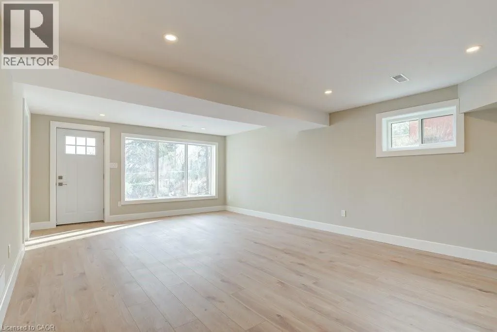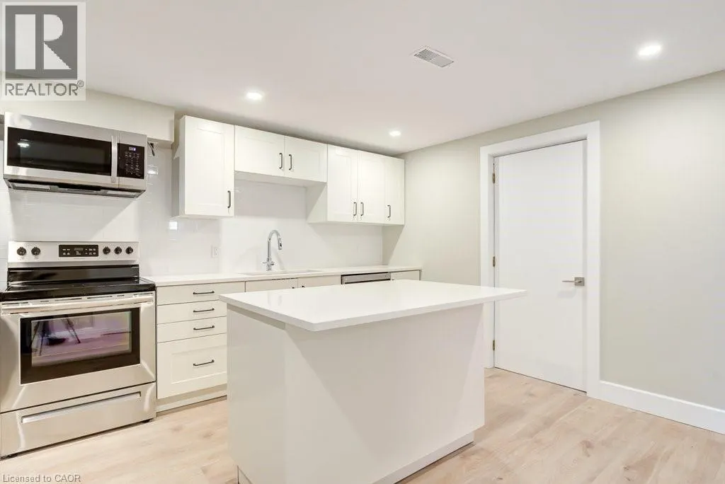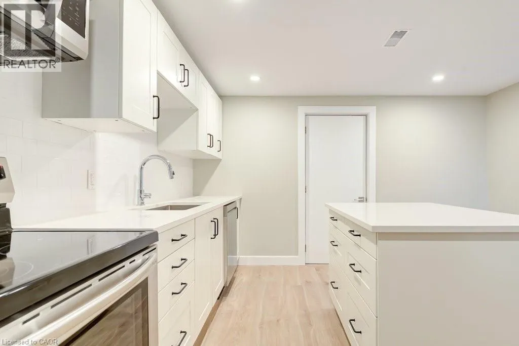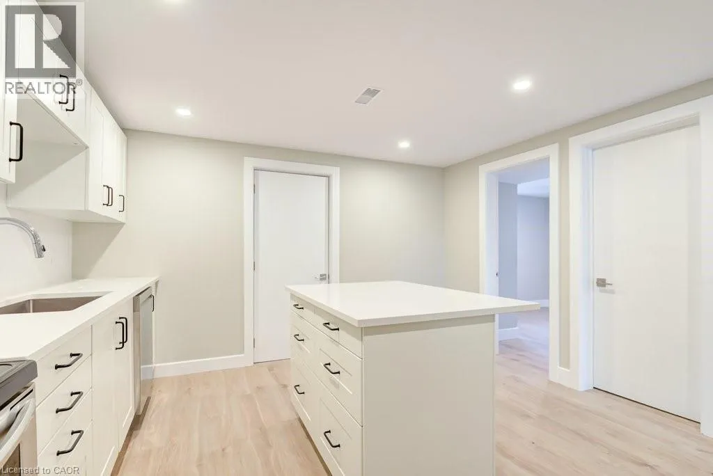 Courtland Ave E to Carwood Ave to Doon Rd This beautifully renovated bright basement unit (2021) offers Modern living in a prime location. Featuring three spacious bedrooms, this homeboasts sleek modern finishes throughout. The stunning open-concept kitchen is equipped with stainless steel appliances, a large island withseating, and ample cupboard space, seamlessly flowing into the bright living and dining areasâperfect for entertaining. Enjoy the convenience ofin-suite laundry and a luxurious bathroom with double sinks and a tiled shower/tub combo. Nestled on a quiet street, this home provides easyaccess to parks, a golf course, shopping, schools, public transit, and major highways for effortless commuting. Donât miss this fantastic leasingopportunity! (id:27476)