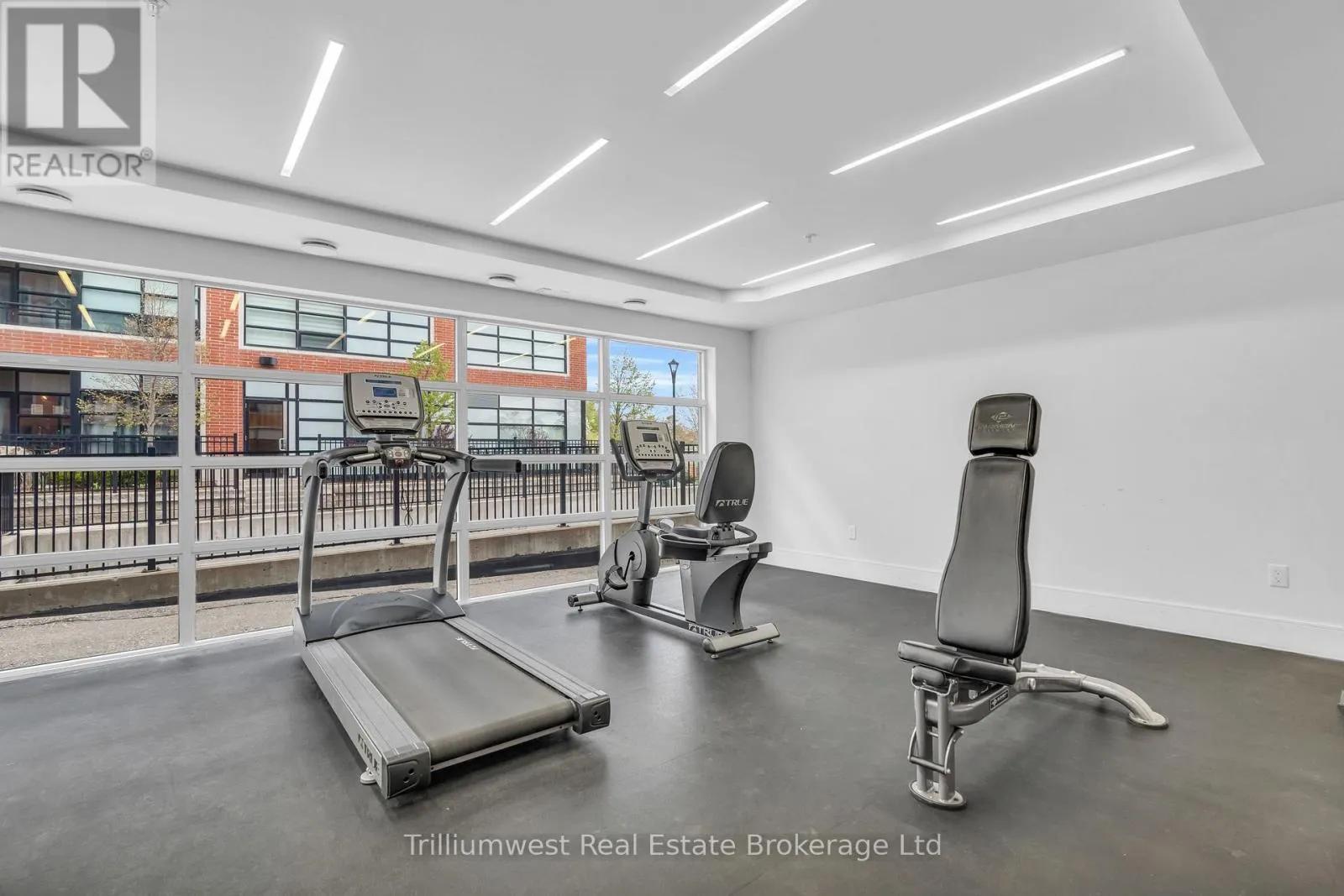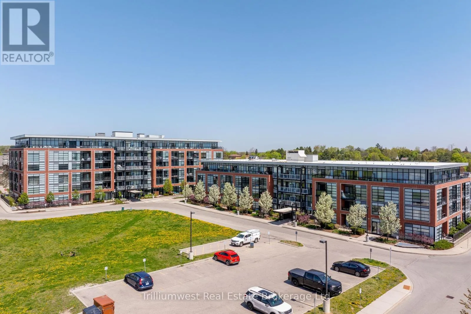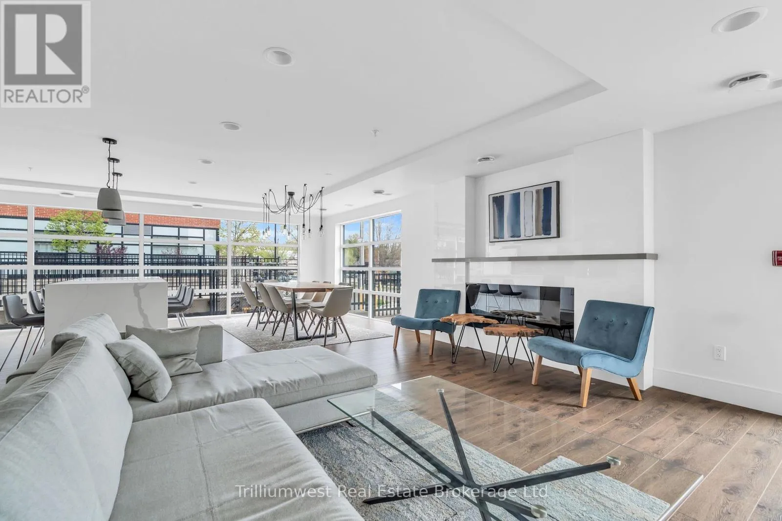 Cross Streets: Louisa St. ** Directions: South on Lancaster Street, turn right onto Louisa Street, Right onto St. Leger. Building is on the left. Welcome to Victoria Common, a unique and luxurious midrise development just minutes from downtown! This bright and cheerful 1 bedroom plus den condo is the perfect blend of modern style, comfort, and convenience. Embrace the the bright and inviting atmosphere of this freshly painted unit, featuring vinyl floors, granite countertops, modern wood design cabinetry, and sleek glass backsplash creating a sophisticated and contemporary feel. The expansive 4th-floor balcony offers breathtaking southwesterly views of Kitchener's downtown skyline and spectacular sunsets. Imagine sipping your morning coffee or enjoying a glass of wine in the evening, surrounded by the energy of the city. Building features include: - State-of-the-art geothermal forced air heating and cooling system - Well equipped main floor gym/exercise room with floor-to-ceiling windows. - Large and luxurious party room perfect for special occasions or community hangouts. - 1 Underground parking space and ample visitor parking for guests. -1 Storage locker included and secure bike storage in the parking garage. The best of downtown Kitchener's amenities and natural beauty, just steps away: - Short walk to parks and trails. - Just a stone's throw to downtown restaurants, shops and cafe's. - Easy access to public transportation and bike trails. And, as a pet-friendly building, you can bring your furry friends along! (id:27476)