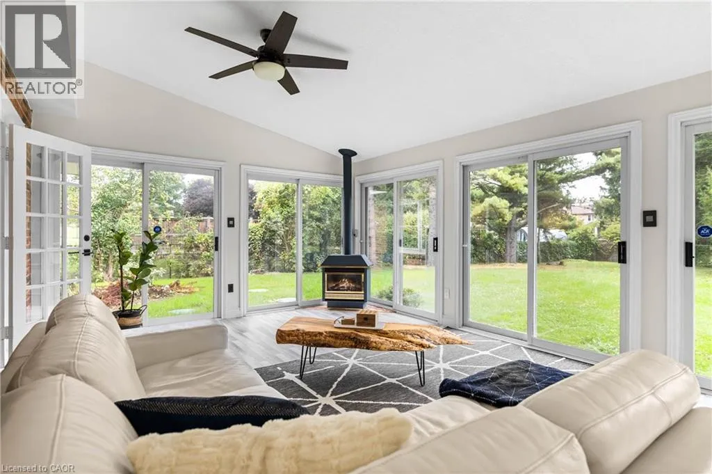 Pioneer Tower Road to Marquette Drive to Edgehill Drive Welcome to 296 Edgehill Drive! A beautifully updated family home on a rare, expansive .67-acre lot in desirable Pioneer Tower. Offering 3,100 sq. ft. above grade plus a finished basement, this property pairs a prime location â steps from RiverEdge Golf Course and minutes to Highway 401 â with extensive upgrades throughout - including a brand new septic system (August 2025). Check out our Top 6 Reasons this home could be the one for you:#6: PRESTIGIOUS PIONEER TOWER: Set across from RiverEdge Golf Course, the quiet, established neighbourhood is one of Kitchenerâs most sought after. Youâre minutes to the 401, Costco, nature trails, and Chicopee Ski Hill. #5: CURB APPEAL & LOT: An extended driveway sets the home back from the road, creating privacy right from the approach. With a double car garage with epoxy flooring, and a charming covered front porch, the curb appeal is undeniable. Out back, the huge fully-fenced yard is built for both relaxation and play â featuring a deck, fire pit, play structure, & a bright sunroom that overlooks it all. Mature trees frame the space, offering shade, privacy, & plenty of room for kids or pets to run free. #4: SPACIOUS MAIN FLOOR: Inside, is a stylish foyer, elegant living and dining areas, and an updated custom mudroom with built-in storage and smart washer/dryer. A bright four-season sunroom with fireplace overlooks the backyard.#3: UPDATED KITCHEN: Completely refinished with modern cabinetry, quartz countertops, smart stainless-steel appliances, and subway tile backsplash â the kitchen is as functional as it is stylish. The open flow into the dining area and sunroom makes it the true heart of the home. #2: BEDROOMS & BATHROOMS: Upstairs youâll find 4 spacious bedrooms (with potential to convert into 5) and a fully renovated 5-pc main bath.The spacious primary suite includes a renovated 3-piece ensuite with shower.#1: FINISHED BASEMENT: The basement offers a large rec room, with space for a workshop or home gym. (id:27476)