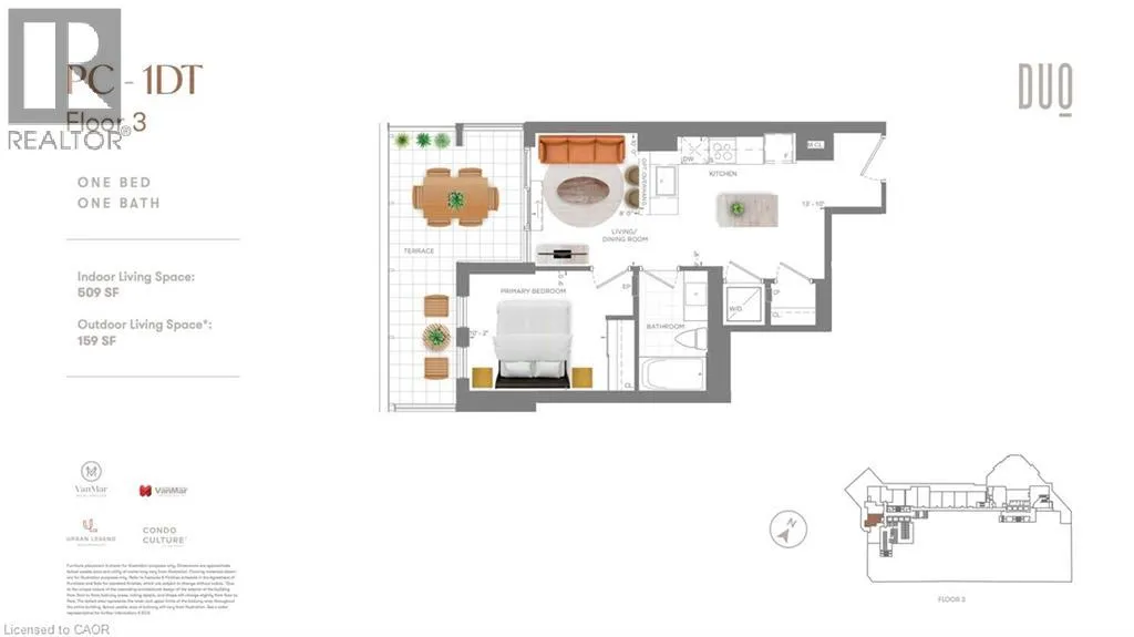 Off King St and Wellington St Brand new unit from VanMar Developments. Stylish 1 bed suite at DUO Tower C, Station Park. 500 sf interior + private balcony. Open living/dining, modern kitchen w/ quartz counters & stainless steel appliances. Primary bedroom with walk-in closet & ensuite access. In-suite laundry. Enjoy Station Parks premium amenities: Peloton studio, bowling, aqua spa & hot tub, fitness, SkyDeck outdoor gym & yoga deck, sauna & much more. Steps to transit, Google & Innovation District. (id:27476)