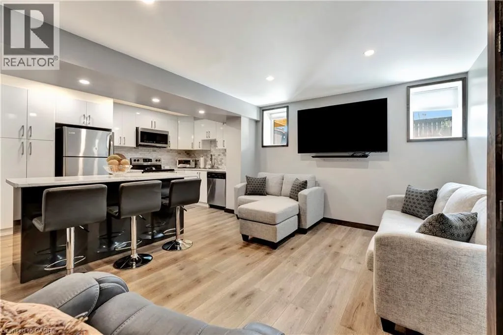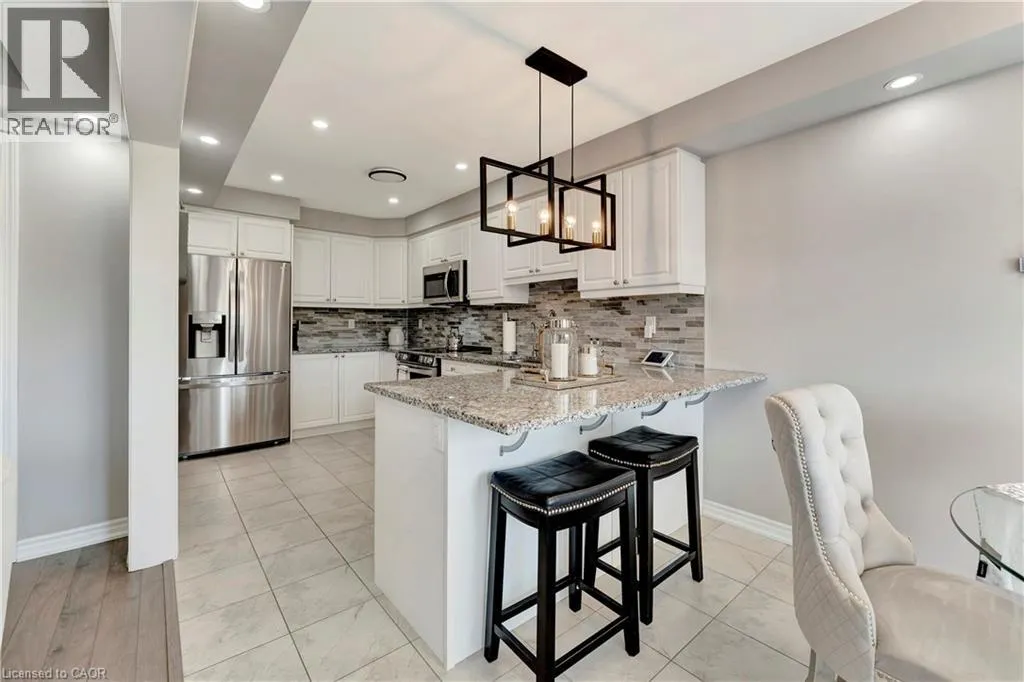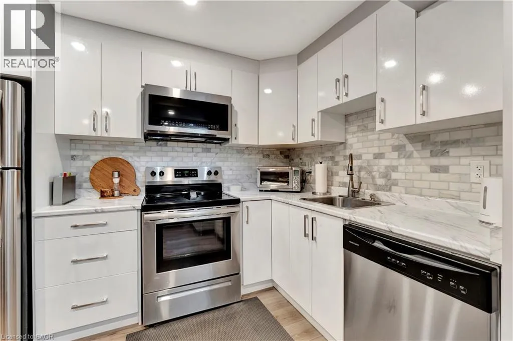 Blair Creek Dr. to Watermill St. Upgraded from top to bottom! From the moment you arrive, youâll notice its impressive curb appeal, highlighted by a stone driveway and brand-new front door that set the tone for whatâs inside. Step into a beautifully updated main floor featuring a gleaming white eat-in kitchen, complete with brand-new stainless steel appliances, quartz countertops, designer pendant lighting, and more. The living room is anchored by a timeless gas fireplace and bathed in natural light from every angle. Perfect for entertaining, the main level offers space for a full dining suite, while the fully finished lower level provides incredible versatility with a second kitchenette/wet barâideal for a rec room, studio, or private guest quarters. Upstairs, three spacious bedrooms await, including a serene primary suite with a walk-in closet and luxurious 4-piece ensuite. A convenient upper-level laundry room, second full bathroom, and linen closet add everyday practicality. Outside, enjoy a hardscaped rear deck and patio designed for low-maintenance outdoor living. Backing onto scenic trails and with a family-friendly park right across the street, this home blends high-end finishes, functional design, and unbeatable value! Top rated schools and highway access close by! (id:27476)