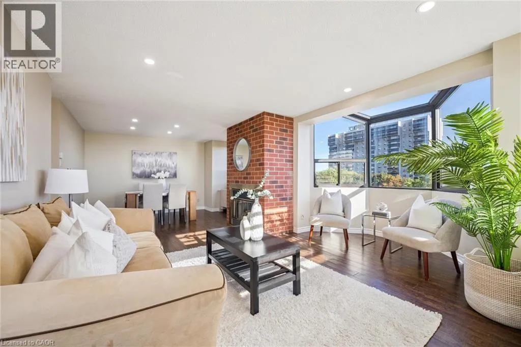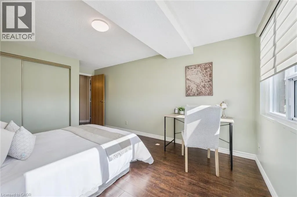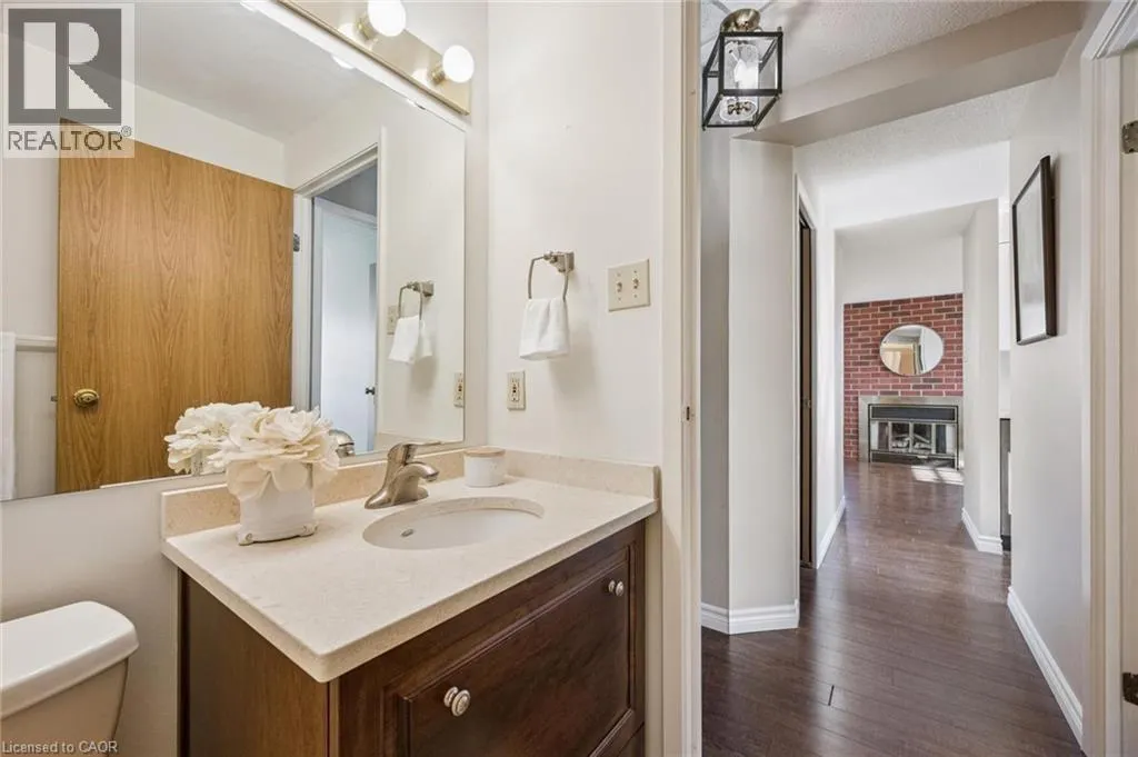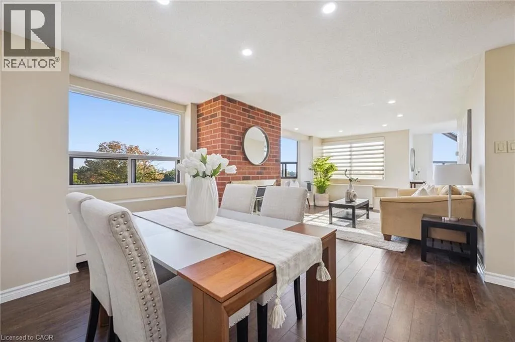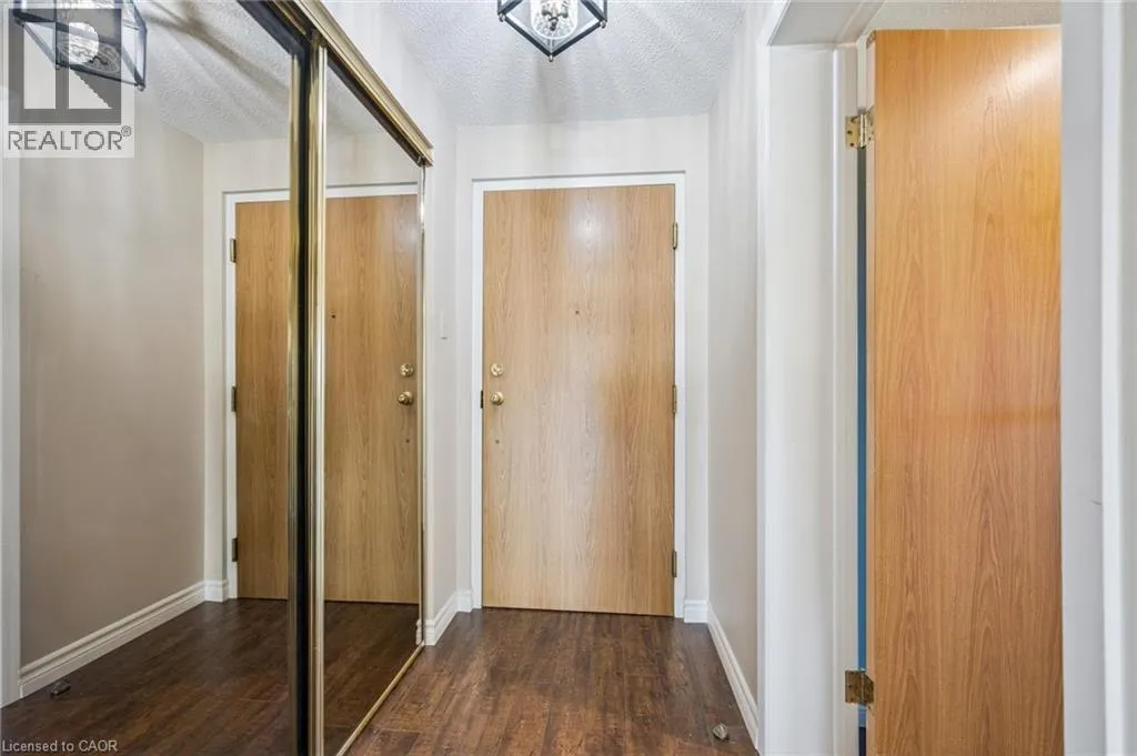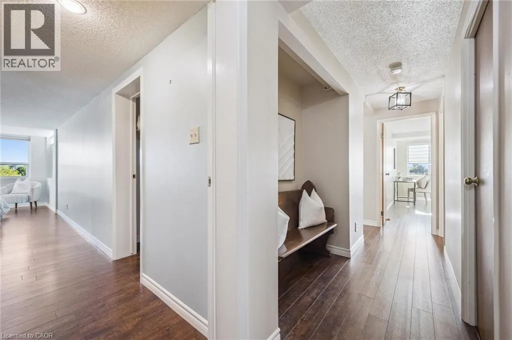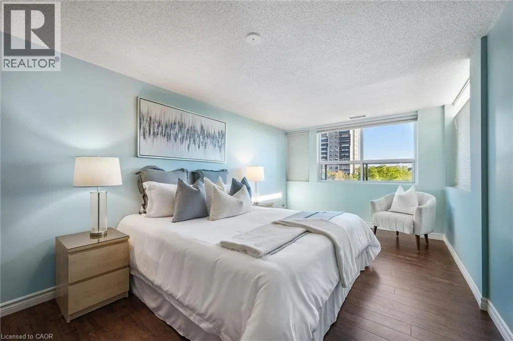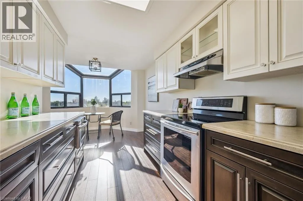 North on QUEEN ST, turn right on ELLEN ST. Left on MANSION ST. Welcome to The Renaissance, a highly sought-after building perfectly located across from Centre in the Square in Downtown Kitchener! This fantastic 2-bedroom, 2-bathroom corner unit is filled with natural light and offers an ideal blend of comfort and convenience. The oversized primary suite features a walk-in closet with in-suite laundry, and an updated ensuite bath, complete with built-in bench in the large shower. The updated kitchen boasts plenty of cabinetry, stainless steel appliances, and a cozy eat-in area framed by windows. You'll love the bonus coffee/wine bar tucked into the hallway with included mini fridge! A generous living and dining space with laminate floors and large windows creates a warm and inviting atmosphere. The second bedroom, full bathroom, handy utility/storage room and great entryway complete the space. Residents of The Renaissance enjoy lovely amenities, including a library, games room, party room, fitness centre, and sauna. Enjoy being just steps from downtown Kitchenerâs lively shops, restaurants, and cafés, with the Kitchener Public Library, the Kitchener Market, parks, trails, the theatre and public transit all close at hand. Ideal for those seeking affordable urban living, this condo is a fantastic choice for first-time buyers, downsizers, or investors alike. An opportunity not to be missed! (id:27476)