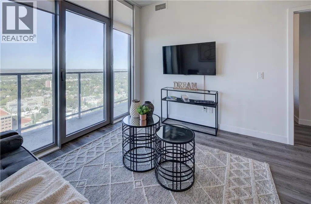 Duke & Frederick St Experience upscale urban living in this modern 1-bedroom + den, 1 bathroom condo located in the heart of downtown Kitchener. Perched on the 32nd floor, this home offers breathtaking views of the city through floor-to-ceiling windows in both the bedroom and living. Enjoy a sleek, contemporary kitchen with quartz countertops, two-toned cabinetry and stainless steel appliances. This condo also has a versatile den perfect for a home office or a guest space, while the open-concept layout maximizes natural light to the unit. Within walking distance to Google, UW School of Pharmacy, Conestoga College DTK Campus, D2L, Communitech, restaurants, coffee shops, bars and so much more. Book your showing today! (id:27476)