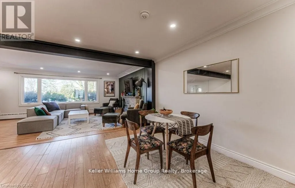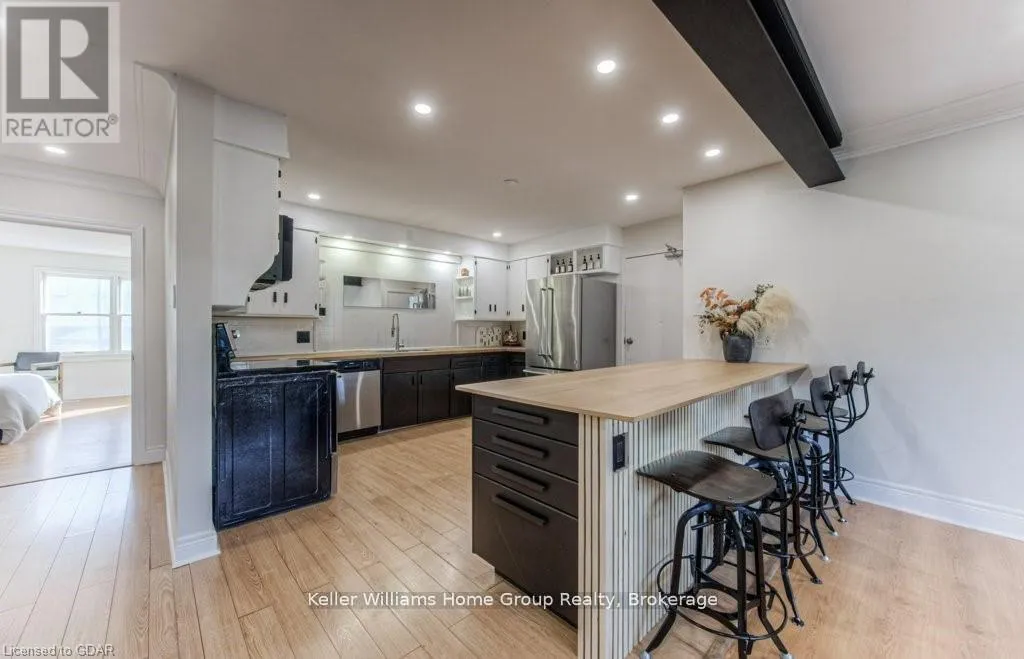 Between Westmount Road & Belmont Avenue on Queen's Boulevard to 1085 Queen's Blvd. Welcome to your new home! This charming house boasts a host of updates, including a captivating feature wall with a wood-burning fireplace upstairs. The main floor master bedroom is spacious, and upstairs you'll enjoy Nest controlled temperature for comfort. Indulge your culinary desires in the newly-updated kitchen, complete with butcher-block countertop, chef-style faucet, and stainless-steel KitchenAid appliances. With bike lanes and bus stops at your doorstep, commuting is a breeze. Explore nearby Lakeside Park, Victoria Park, and Downtown Kitchener's vibrant scene. Don't miss out on this fantastic opportunity! (id:27476)