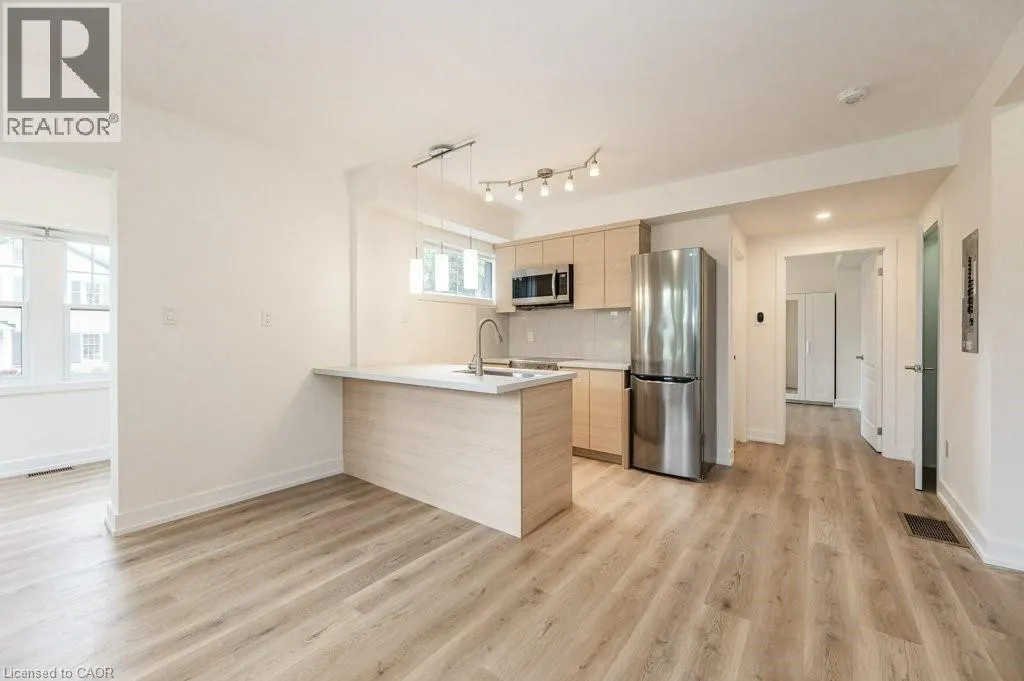 Corner lot. Fronting on Margaret Ave, Driveway on Maynard Ave. Available December 1. Stunningly renovated 2-bedroom plus sunroom apartment in a charming century triplex in Kitchenerâs sought-after Heritage Olde Berlin Town. This bright, energy-efficient ground-floor unit features insulated exterior walls, new windows with rolling blinds, and modern wood-look vinyl flooring throughout. The open-concept kitchen boasts a stone countertop, island, and stainless steel appliances including fridge, ceramic-top stove, microwave with rangehood, and dishwasher. The bathroom has a sleek glass shower, and in-suite front-load washer and dryer are included. Enjoy exclusive use of the front porch. One parking spot is included. Tenants pay all utilities via separate gas, water, and electricity meters. Perfectly located on a quiet tree-lined street, just steps from Civic Centre Park, Kitchener Public Library, The Registry Theatre, Centre In The Square, and Kitchener Market. Walk to the Innovation District, Victoria Park, McMaster School of Medicine, UW School of Pharmacy, and the future transit hub connecting GO Train, Via Rail, and ION LRT. Close to tech hubs including Google, Desire2Learn, Communitech, Manulife, plus shops, restaurants, cafes, and City Hall. This is one of three units in a triplexânot the entire house. (id:27476)