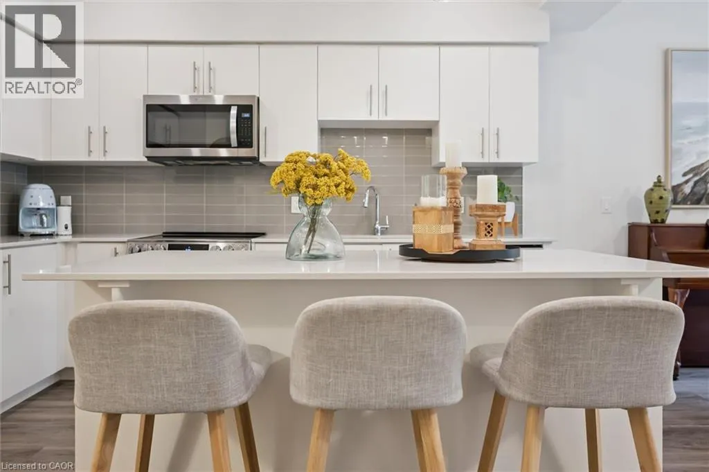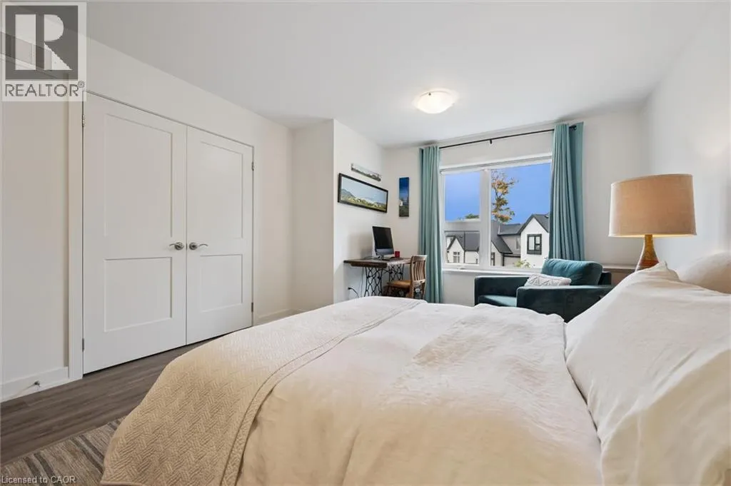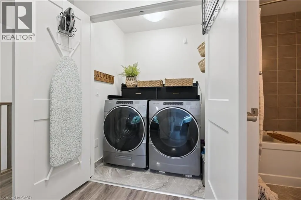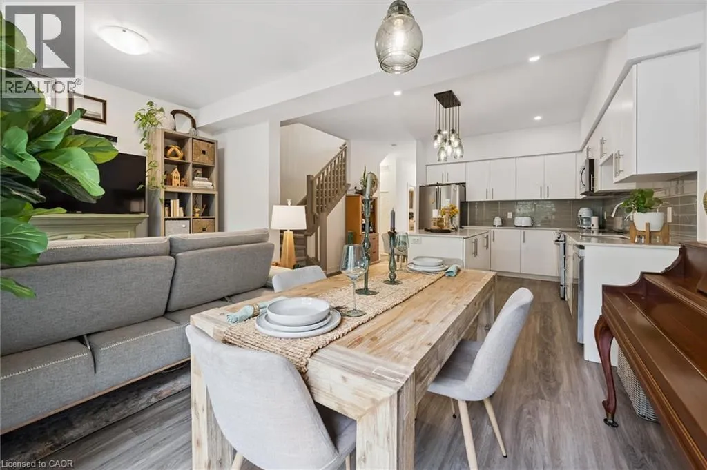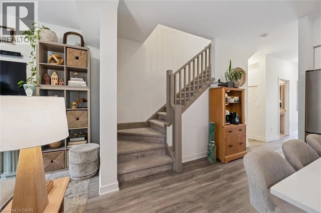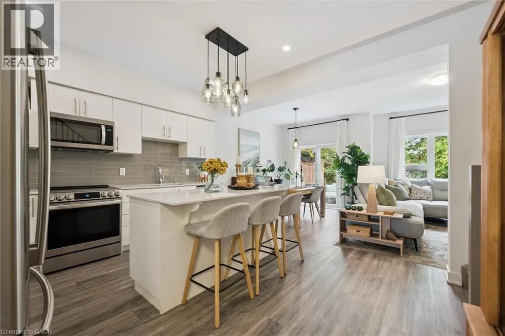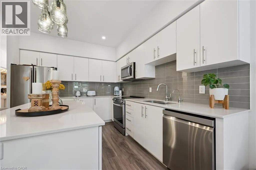 Unit 21 is at the left of the back row of townhouse. Northwest corner Welcome to 110 Fergus Avenue, Unit 21 â a beautifully maintained, owner-occupied townhome in a prime Kitchener location. Built in 2020, this home offers modern finishes, thoughtful upgrades, and a layout perfect for todayâs lifestyle. The open-concept main floor features a bright kitchen with quartz countertops, a large island, and new stainless steel appliances, flowing seamlessly into the dining area with sliding doors to a private backyard with no rear neighbours. You'll also notice the 9-foot ceilings throughout and convenient 2-piece bathroom off of the entrance. Upstairs, youâll find three spacious bedrooms and two full bathrooms. The primary suite boasts a walk-in closet with a window and a private ensuite. Laundry is conveniently located on this level, with a new washer and dryer. The unfinished basement offers high ceilings and endless potential to create additional living space. Additional highlights include an attached single-car garage with a private driveway for a second vehicle, visitor parking nearby, all in a well maintained and friendly condo complex. Featuring builder upgrades such as solid wood stair railings and quartz countertops in both the kitchen and bathrooms. This home is ideally located close to schools, shopping, and amenities â everything you need is just minutes away. Donât miss your chance to make this modern, move-in ready property yours! (id:27476)