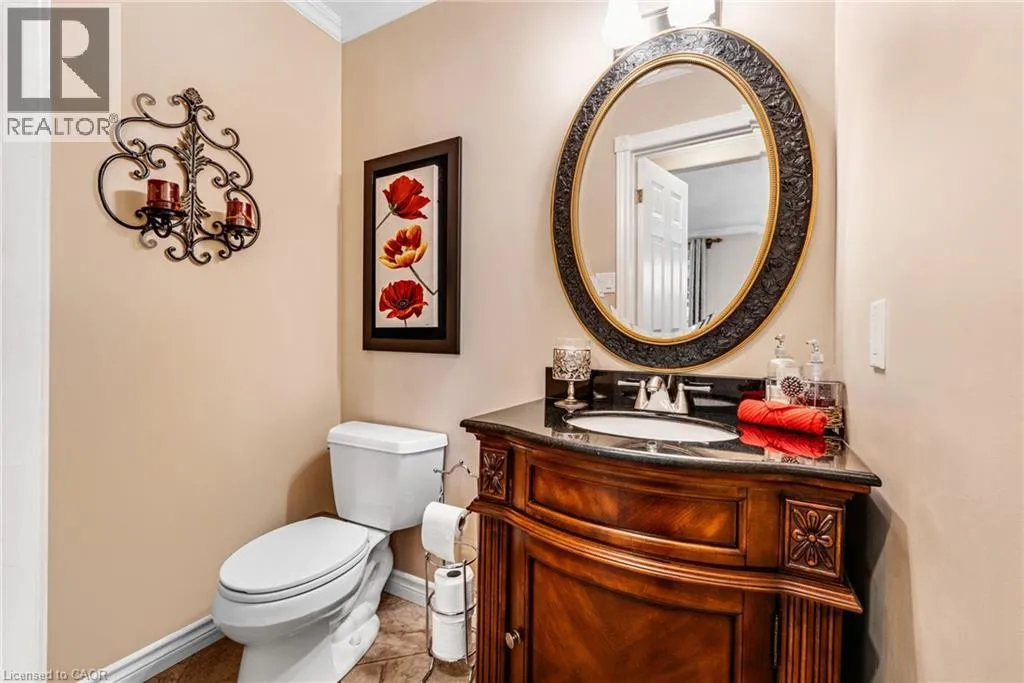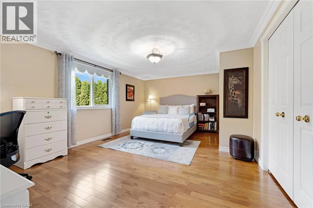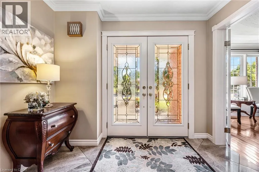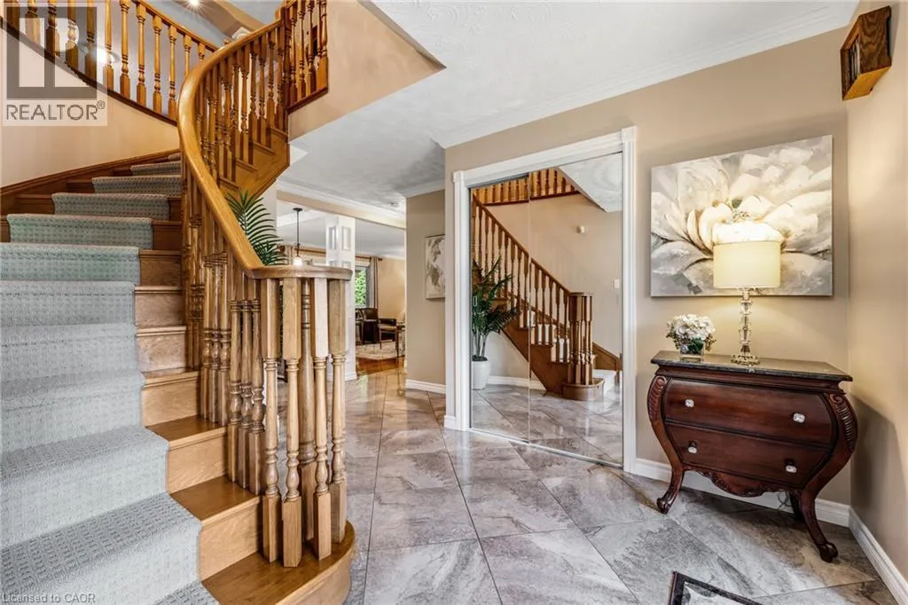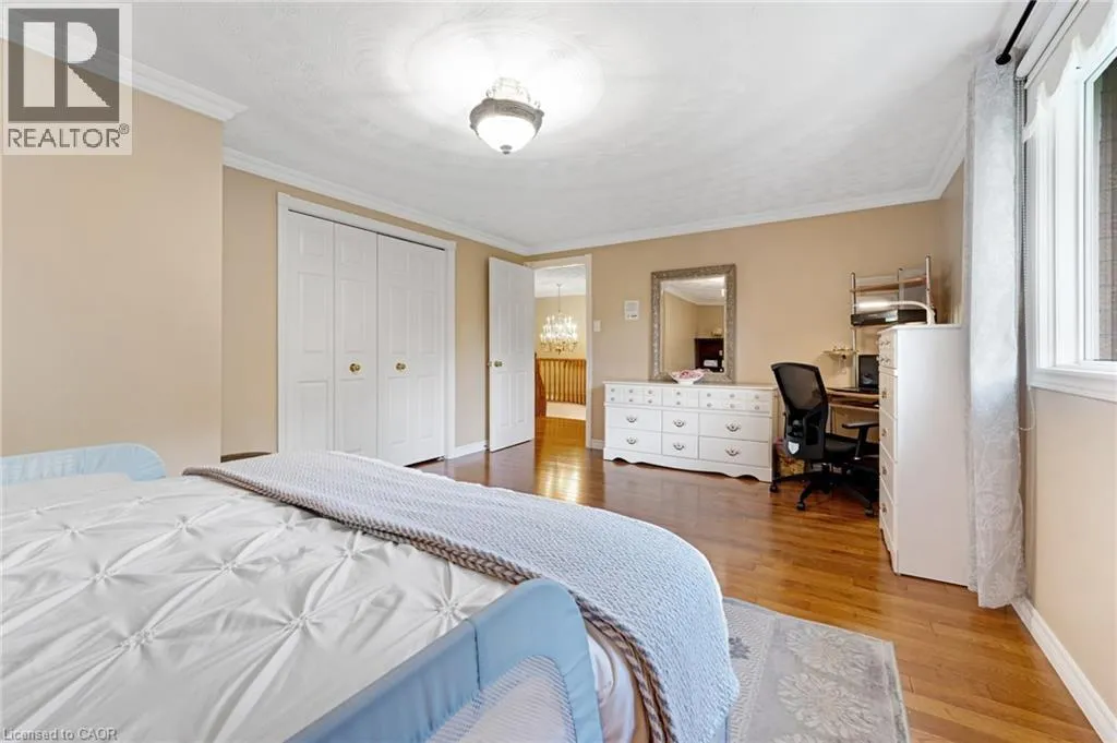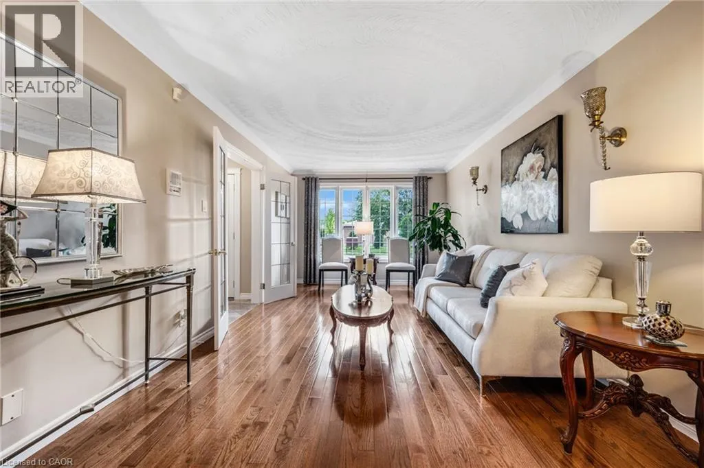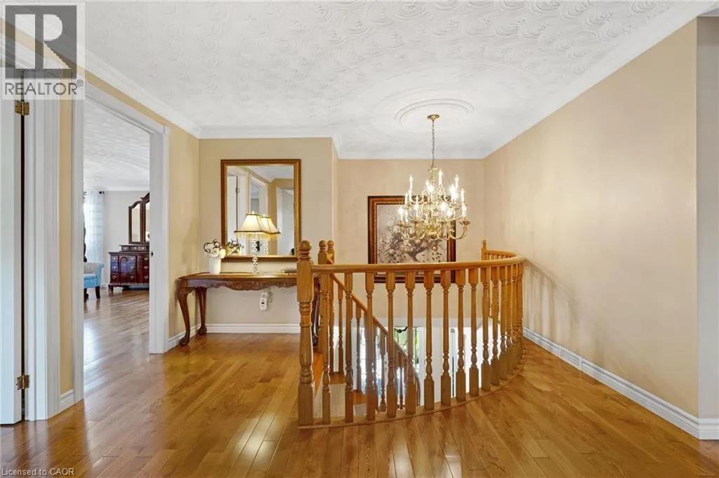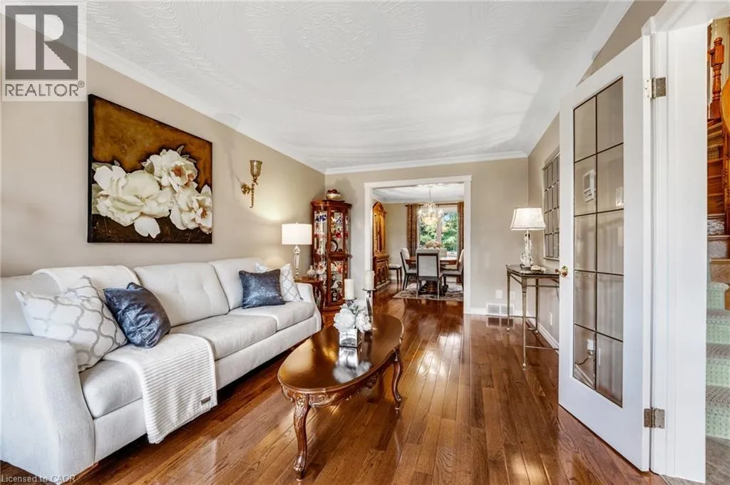 Lackner to Oldfield to Michener Set on a quiet crescent in the sought-after Idlewood neighbourhood, this elegant two-storey brick home offers more than 2,600 sq ft above grade plus a finished walk-out basement for a total of over 3,800 sq ft of living space. A double-door entry opens to a tiled foyer with a curved oak staircase and detailed trim work. Formal living and dining rooms feature hardwood flooring, crown moulding and wainscoting. French doors from the dining room lead to a large deck, ideal for indoor - outdoor entertaining. The kitchen is appointed with rich cabinetry, granite counters, stainless steel appliances and a large island, with a breakfast area that overlooks the backyard. The bright and sunny family room offers a gas fireplace for relaxed gatherings. A powder room and main-floor laundry with cabinetry complete this level. Upstairs, three spacious bedrooms provide comfortable retreats. The primary suite includes a five-piece ensuite bath. A loft-style family room offers space for reading, hobbies or quiet movie nights. The finished basement extends your living options with a recreation room, bar, bonus room and a three-piece bath. The walkout design connects directly to the backyard, making it perfect for entertaining or play. An additional entrance from the garage to the basement adds convenience, while the fully excavated garage offers rare and abundant storage space. Outdoors, mature trees and a generous deck create a private setting. This Idlewood residence blends classic details with modern conveniences, offering space for both everyday living and gracious entertaining in one of Kitchener' s most desirable communities. (id:27476)