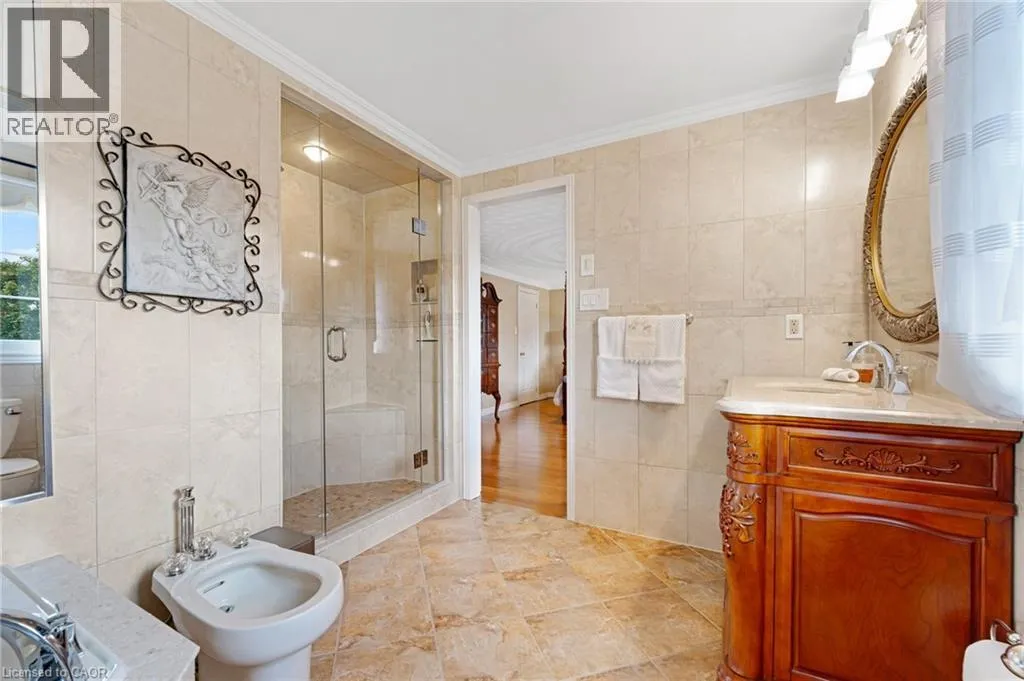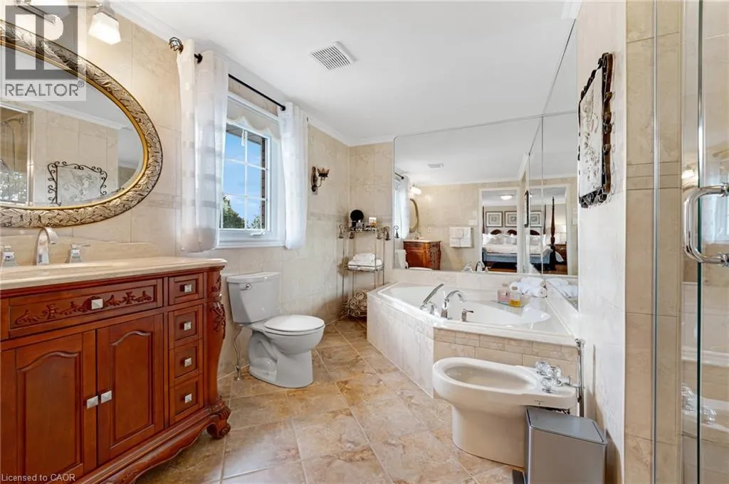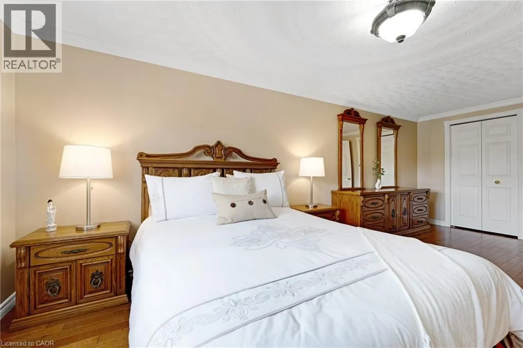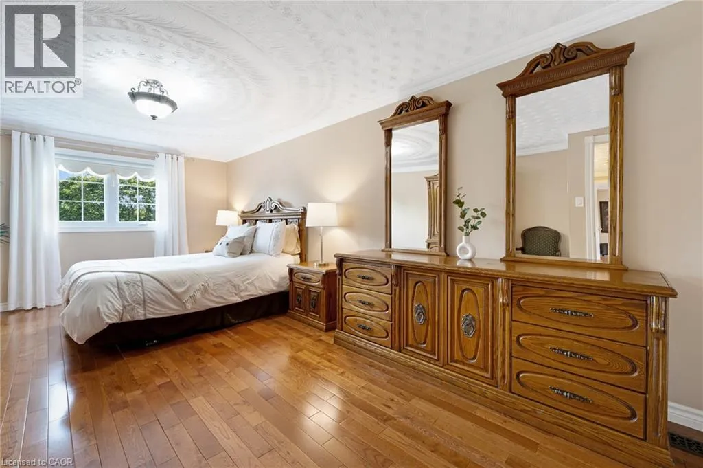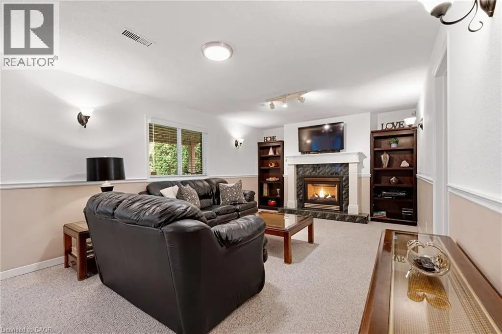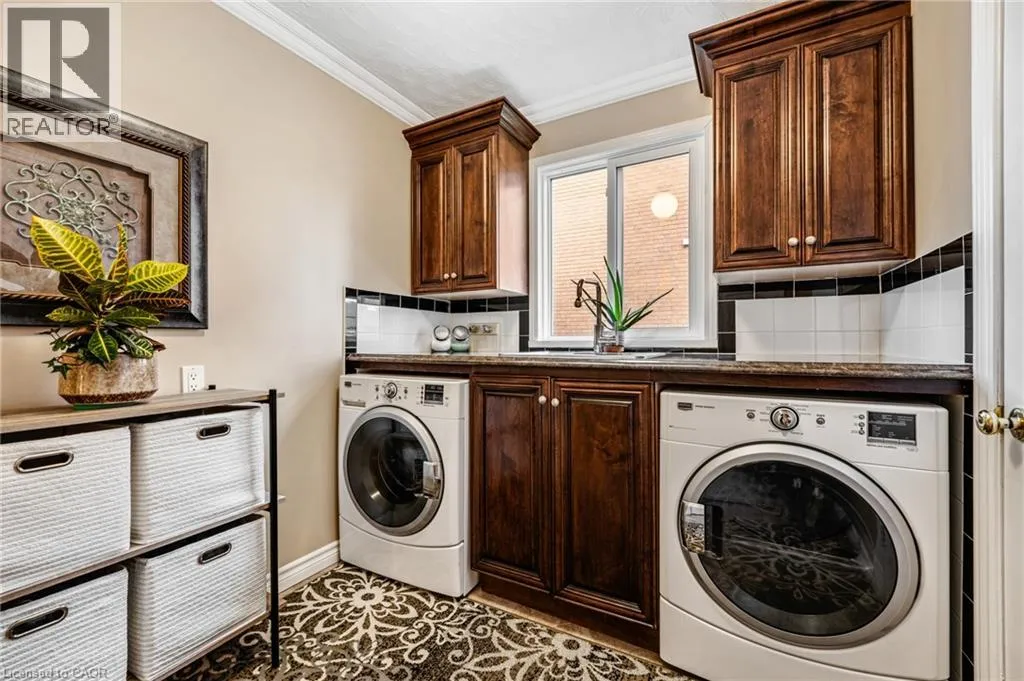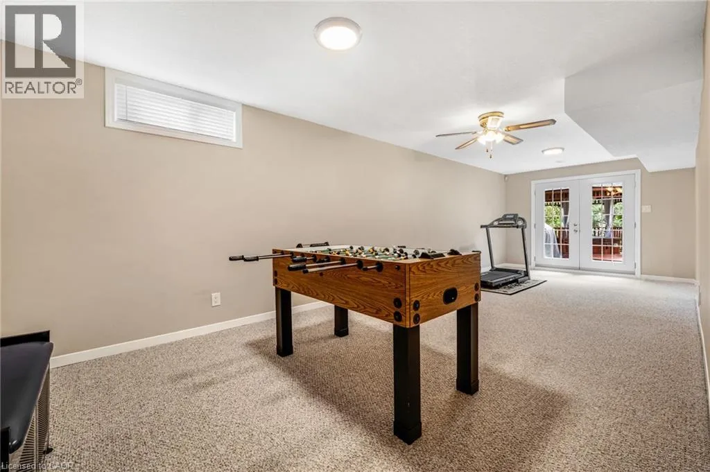 Lackner to Oldfield to Michener Set on a quiet crescent in the sought-after Idlewood neighbourhood, this elegant two-storey brick home offers more than 2,600 sq ft above grade plus a finished walk-out basement for a total of over 3,800 sq ft of living space. A double-door entry opens to a tiled foyer with a curved oak staircase and detailed trim work. Formal living and dining rooms feature hardwood flooring, crown moulding and wainscoting. French doors from the dining room lead to a large deck, ideal for indoor - outdoor entertaining. The kitchen is appointed with rich cabinetry, granite counters, stainless steel appliances and a large island, with a breakfast area that overlooks the backyard. The bright and sunny family room offers a gas fireplace for relaxed gatherings. A powder room and main-floor laundry with cabinetry complete this level. Upstairs, three spacious bedrooms provide comfortable retreats. The primary suite includes a five-piece ensuite bath. A loft-style family room offers space for reading, hobbies or quiet movie nights. The finished basement extends your living options with a recreation room, bar, bonus room and a three-piece bath. The walkout design connects directly to the backyard, making it perfect for entertaining or play. An additional entrance from the garage to the basement adds convenience, while the fully excavated garage offers rare and abundant storage space. Outdoors, mature trees and a generous deck create a private setting. This Idlewood residence blends classic details with modern conveniences, offering space for both everyday living and gracious entertaining in one of Kitchener' s most desirable communities. (id:27476)