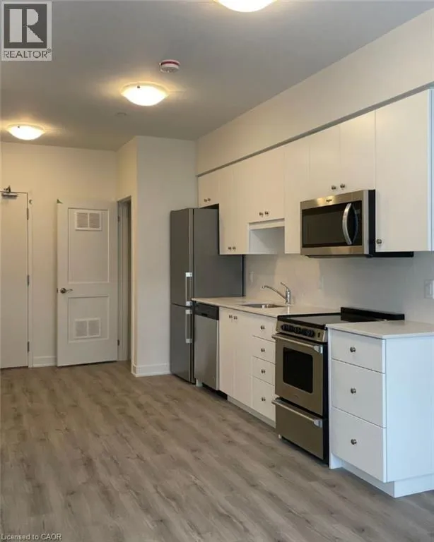 Weber St E & Fergus Ave The Hush Collection homes are located in the centre of Kitchener; tucked away in an established, calm, and beautifully neighbourhood. Nestled minutes from the urban conveniences of shopping, dining, and entertainment. It is located close to hwy 8 and Kitchenerâs Fairview Park mall. This unit is located on the 3rd floor and faces the exterior townhouses in the condo complex. This one bedroom, on bath condo includes in suite laundry. Amenities include an outdoor bbq in the courtyard, a stylish event space available for private events, and ample visitor parking! Enjoy large, oversized windows for a bright sun-filled space, quality wood grain and water resistant vinyl flooring, modern granite countertops, tile backsplash, and appliances from 2021. Pets must be registered and approved with the property management company. Tenant Pays: Water Metergy, Electricity- Metergy, Water Heater Rental- Enercare (id:27476)