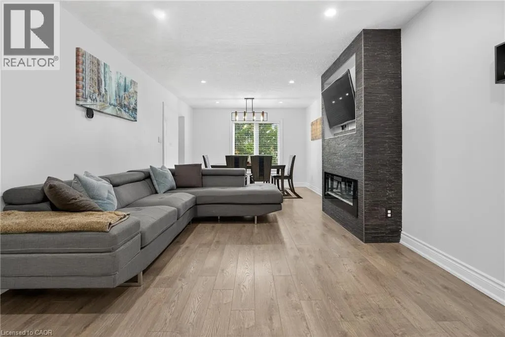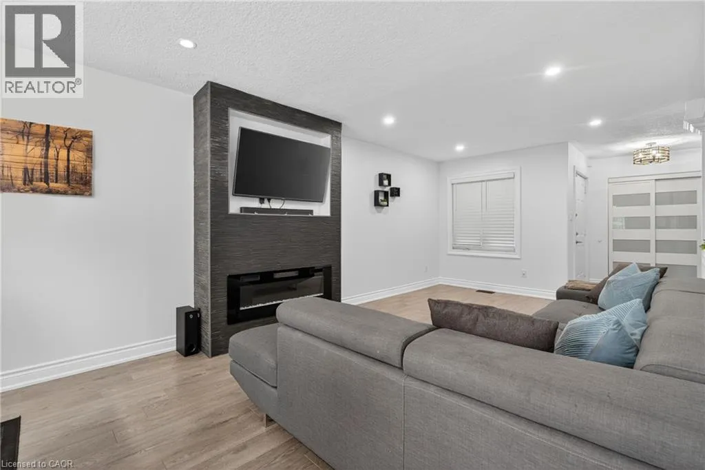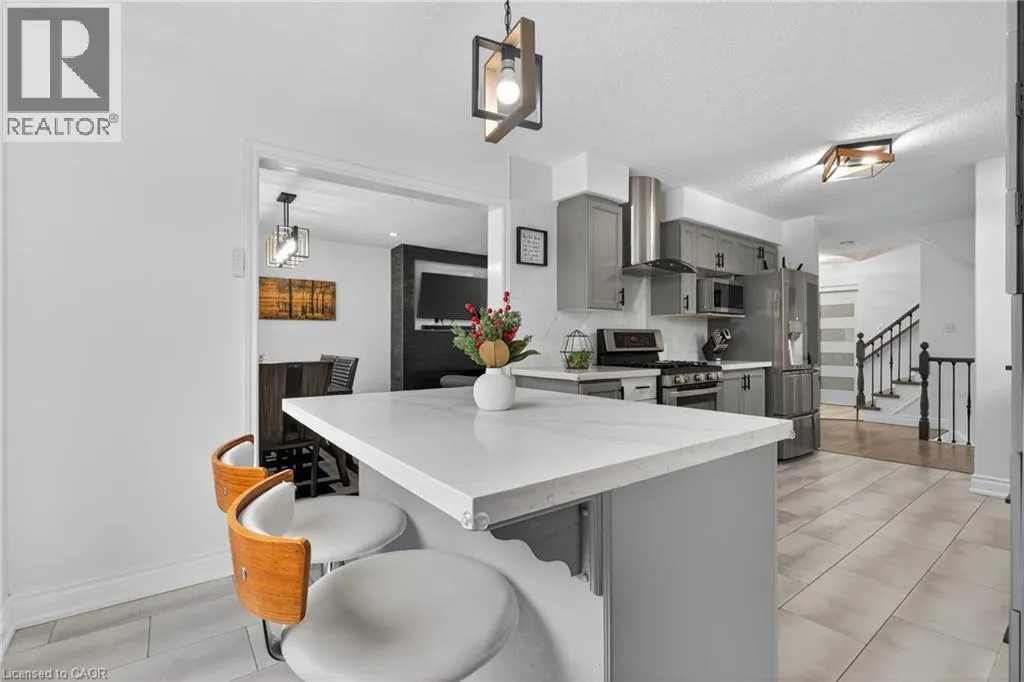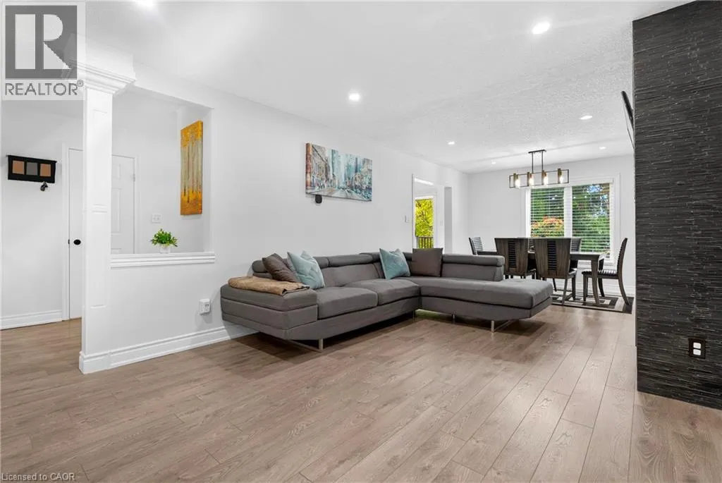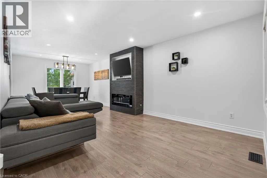 Huron Rd/Strasburg Rd Welcome to 19 Marl Meadow Drive, Kitchener! Nestled in the sought-after Pioneer Park neighbourhood, this beautifully maintained detached home is ideal for first-time home buyers, growing families or investors alike. With a finished lookout basement, this home provides extended living space and endless possibilities. From the moment you arrive, youâll appreciate the charming curb appeal with a 1.5-car garage, parking for 2 additional vehicles on the driveway. Step inside through the inviting front porch into a bright, carpet-free home, featuring premium splashproof laminate flooring and washable paint throughout. The open-concept main floor features the cozy living room, highlighted by a fireplace and stunning brick accent wall, enhanced by pot lights. The modern kitchen (renovated in 2022) showcases quartz countertops, porcelain backsplash tiles, SS Appliances and huge breakfast island. Adjacent is the Dinning area perfect for family meals. A 2pc powder room with a floating vanity completes the main level. Upstairs, there is a spacious family room with soaring cathedral ceilings: a versatile area that can easily be used as a 4th bedroom, home office or entertainment zone. The primary bedroom features a walk-in closet, a luxurious 4pc ensuite renovated in 2022, complete with dual sinks and a glass-enclosed shower. Two additional bedrooms are generously sized and share a 4pc main bathroom with a shower/tub combo. Basement offers a large recreation room, 2pc bathroom and plenty of storage. Step outside to fully finished backyard, complete with a raised deck, two gas line hookups for BBQs or fire tables and ample green space for kids to play. Recent updates include: All new windows (2022) with transferable warranty, New heat pump, air conditioner (2023). Located in a prime family-friendly neighbourhood, this home is minutes away from shopping plazas, Top-notch Schools, highways, parks and trails. This is a home youâll be proud to call your own, Book your showing today. (id:27476)