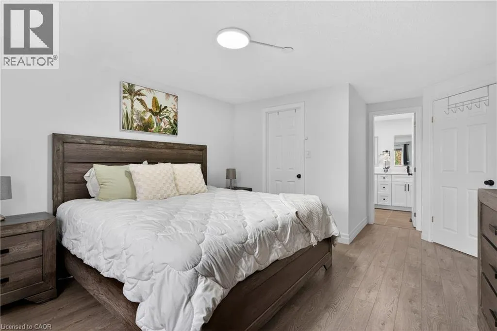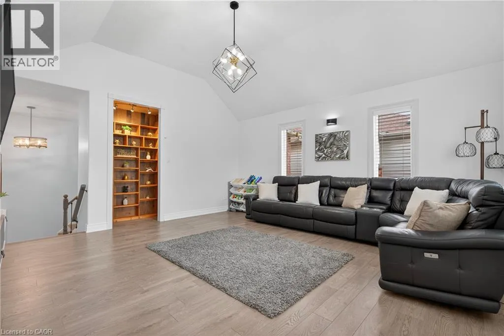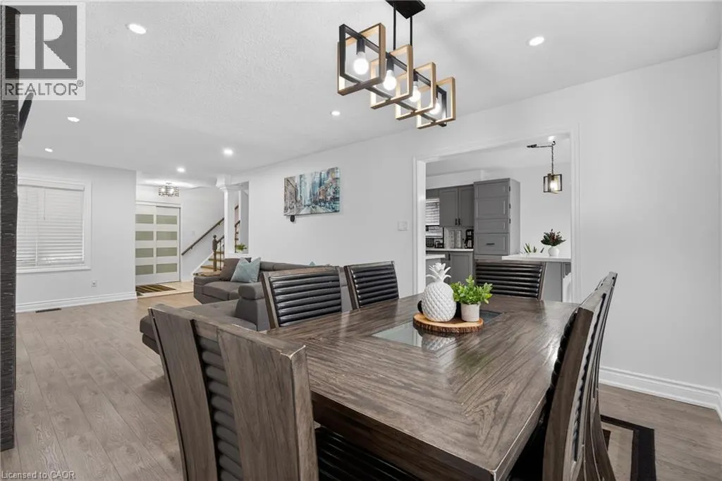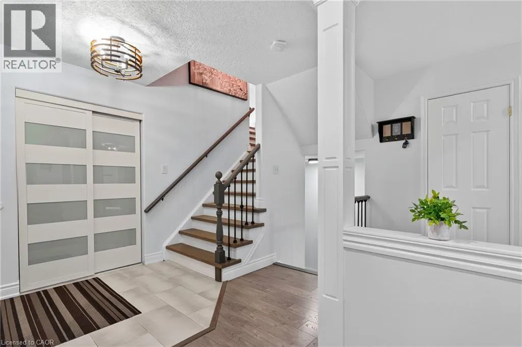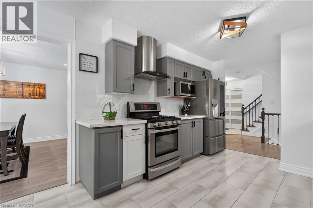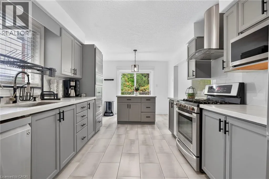 Huron Rd/Strasburg Rd Welcome to 19 Marl Meadow Drive, Kitchener! Nestled in the sought-after Pioneer Park neighbourhood, this beautifully maintained detached home is ideal for first-time home buyers, growing families or investors alike. With a finished lookout basement, this home provides extended living space and endless possibilities. From the moment you arrive, youâll appreciate the charming curb appeal with a 1.5-car garage, parking for 2 additional vehicles on the driveway. Step inside through the inviting front porch into a bright, carpet-free home, featuring premium splashproof laminate flooring and washable paint throughout. The open-concept main floor features the cozy living room, highlighted by a fireplace and stunning brick accent wall, enhanced by pot lights. The modern kitchen (renovated in 2022) showcases quartz countertops, porcelain backsplash tiles, SS Appliances and huge breakfast island. Adjacent is the Dinning area perfect for family meals. A 2pc powder room with a floating vanity completes the main level. Upstairs, there is a spacious family room with soaring cathedral ceilings: a versatile area that can easily be used as a 4th bedroom, home office or entertainment zone. The primary bedroom features a walk-in closet, a luxurious 4pc ensuite renovated in 2022, complete with dual sinks and a glass-enclosed shower. Two additional bedrooms are generously sized and share a 4pc main bathroom with a shower/tub combo. Basement offers a large recreation room, 2pc bathroom and plenty of storage. Step outside to fully finished backyard, complete with a raised deck, two gas line hookups for BBQs or fire tables and ample green space for kids to play. Recent updates include: All new windows (2022) with transferable warranty, New heat pump, air conditioner (2023). Located in a prime family-friendly neighbourhood, this home is minutes away from shopping plazas, Top-notch Schools, highways, parks and trails. This is a home youâll be proud to call your own, Book your showing today. (id:27476)